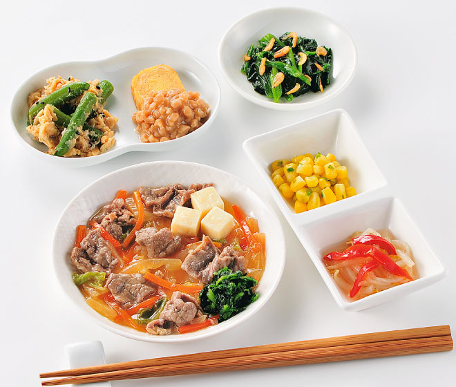 ヘルシー食と同じく全ての商品で塩分を2.0g未満に調整しながら、内容量をおかずのみの商品で300g以上、ごはん付きで400g以上に調整。エネルギーをおかずのみの商品で350kcal程度、ごはん付きで600kcal程度に調整してあります。糖尿病・脂質異常症・高血圧・痛風の方向け、メタボ対策、ダイエットにおすすめです。