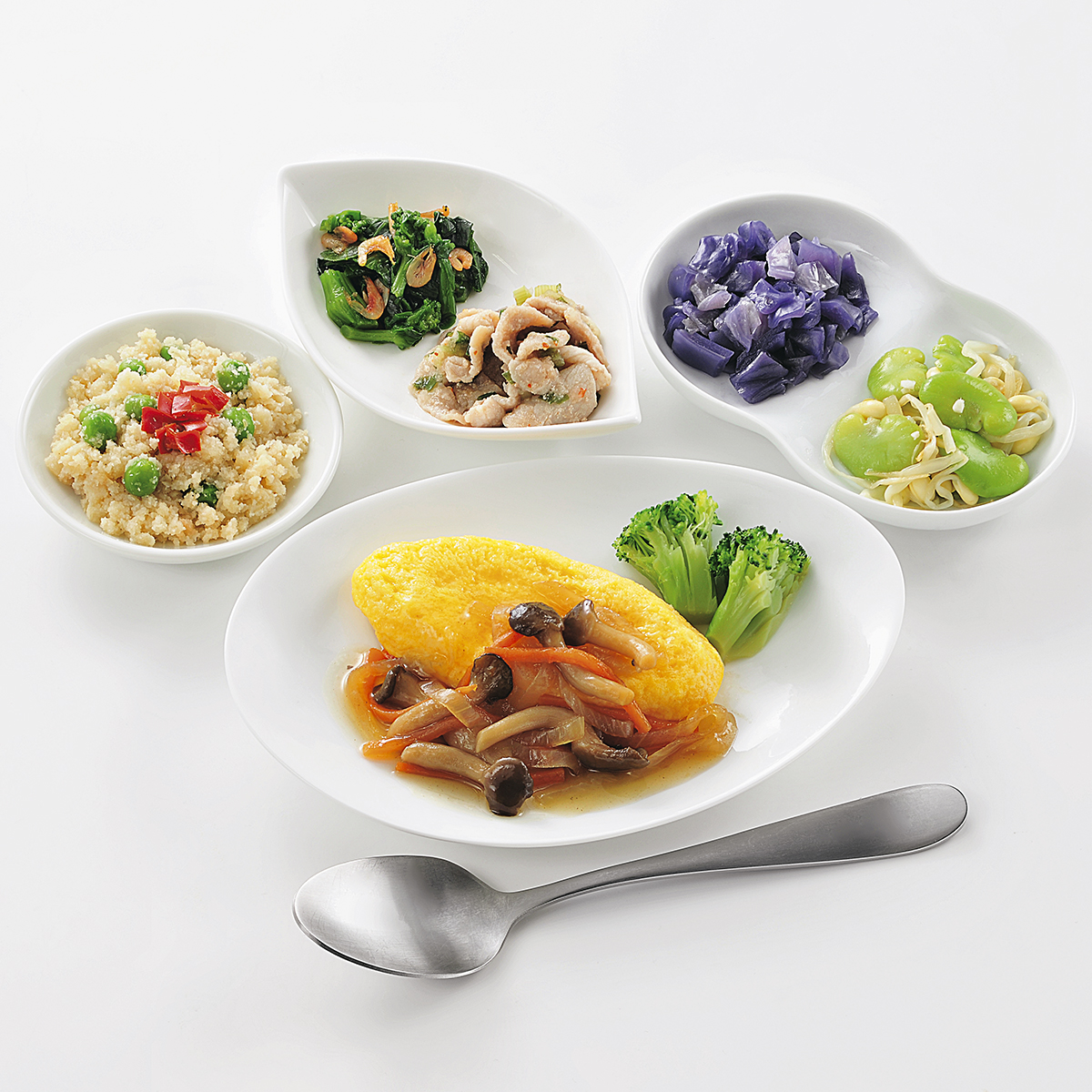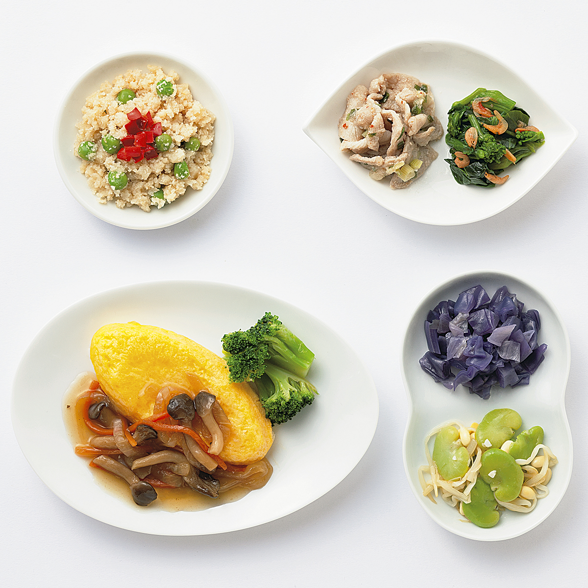 | 原材料名 | オムレツ(国内製造)、ブロッコリー、豚肉、菜の花、キャベツ、そら豆、ぶなしめじ、玉ねぎ、大豆もやし、紫キャベツ、グリンピース、たけのこ水煮、大根、発酵調味料、人参、乾燥おから、赤ピーマン、濃口醤油、なたね油、ねぎ、砂糖、淡口醤油、ごま油、食塩、清酒、顆粒和風だし、にんにく、乾燥小えび、果実調味料、トウバンジャン、唐辛子/増粘剤(加工でん粉)、調味料(アミノ酸等)、pH調整剤、酸味料、着色料(紅麹)、マンニット、(一部にえび・小麦・卵・ごま・大豆・豚肉を含む) | ||