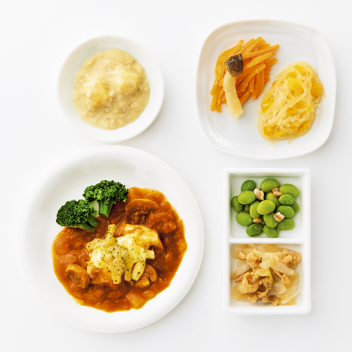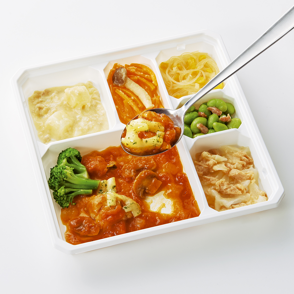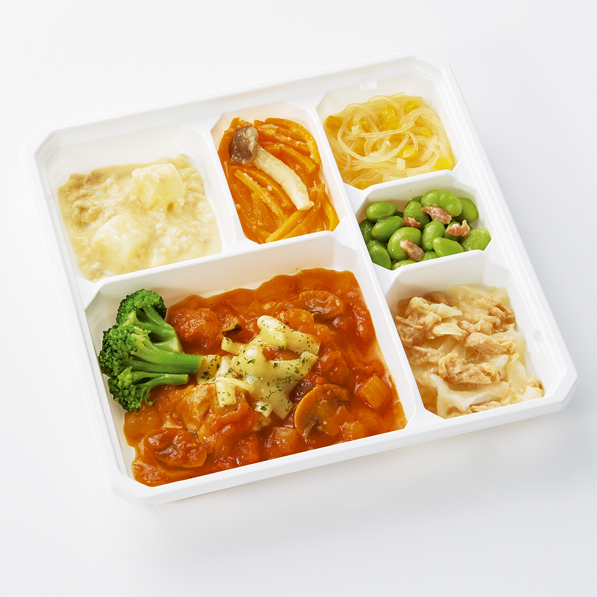 | 原材料名 | 鶏肉(タイ)、ブロッコリー、キャベツ、トマト・ピューレー漬、じゃがいも、人参、枝豆、牛乳、玉ねぎ、ぶなしめじ、マッシュルーム、ケチャップ、ツナフレーク、豚肉、ホワイトソース、春雨、チーズ、なたね油、黄ピーマン、デミグラスソース、みそ、砂糖、ねぎ、焼ベーコン、かぼちゃあん、顆粒洋風だし、赤ワイン、濃口醤油、果実調味料、おろしにんにく、食塩、ごま油、レモン果汁、発酵調味料、おろし生姜、顆粒中華風だし、パセリ、こしょう/増粘剤(加工でん粉、増粘多糖類)、調味料(アミノ酸等)、pH調整剤、着色料(カラメル、カロチン)、セルロース、ソルビット、グリシン、酸味料、くん液、香辛料、リン酸塩(Na)、酸化防止剤(エリソルビン酸Na)、香料、ショ糖エステル、発色剤(亜硝酸Na)、(一部に小麦・卵・乳成分・牛肉・ごま・大豆・鶏肉・豚肉・ゼラチンを含む) | ||