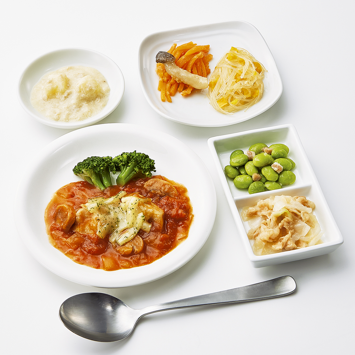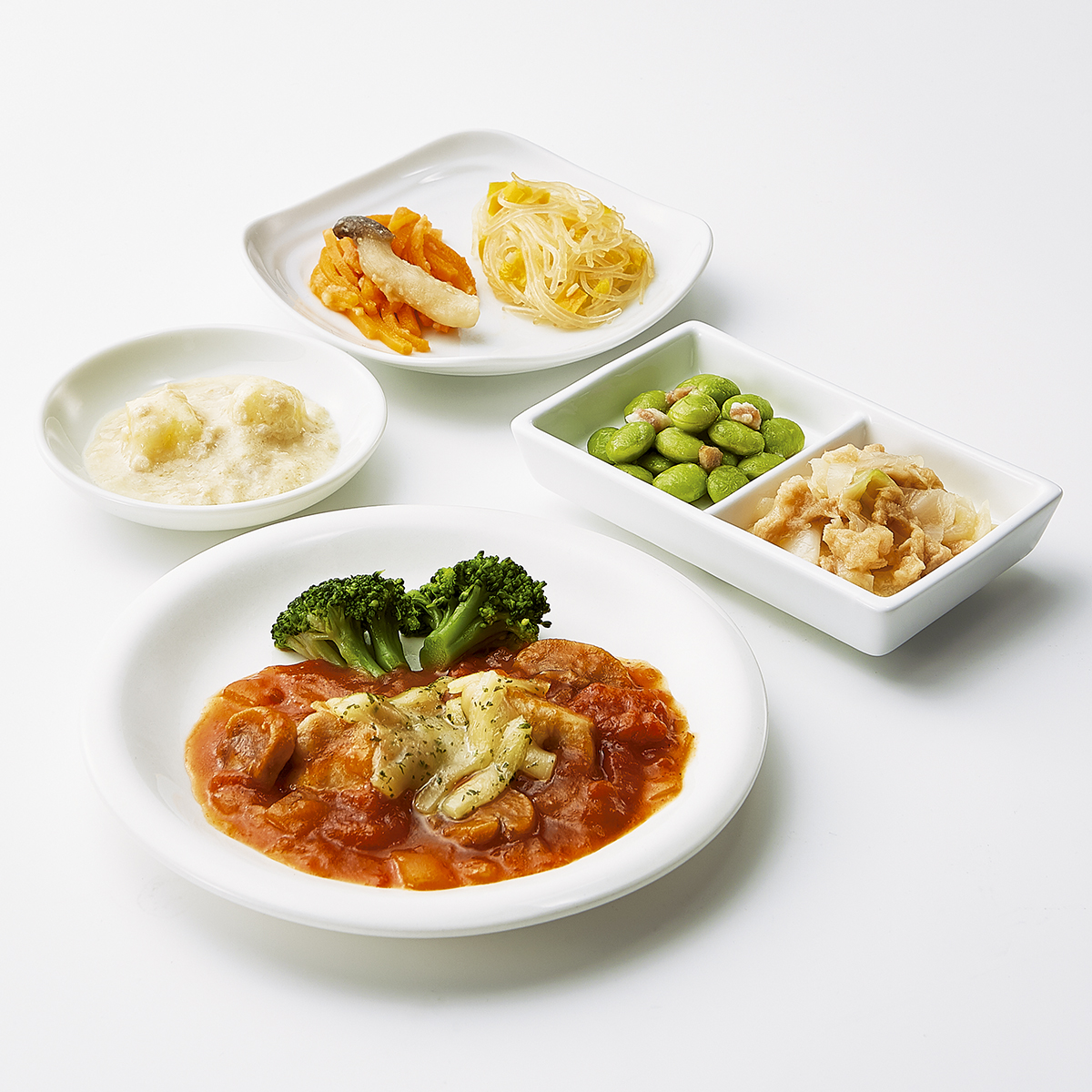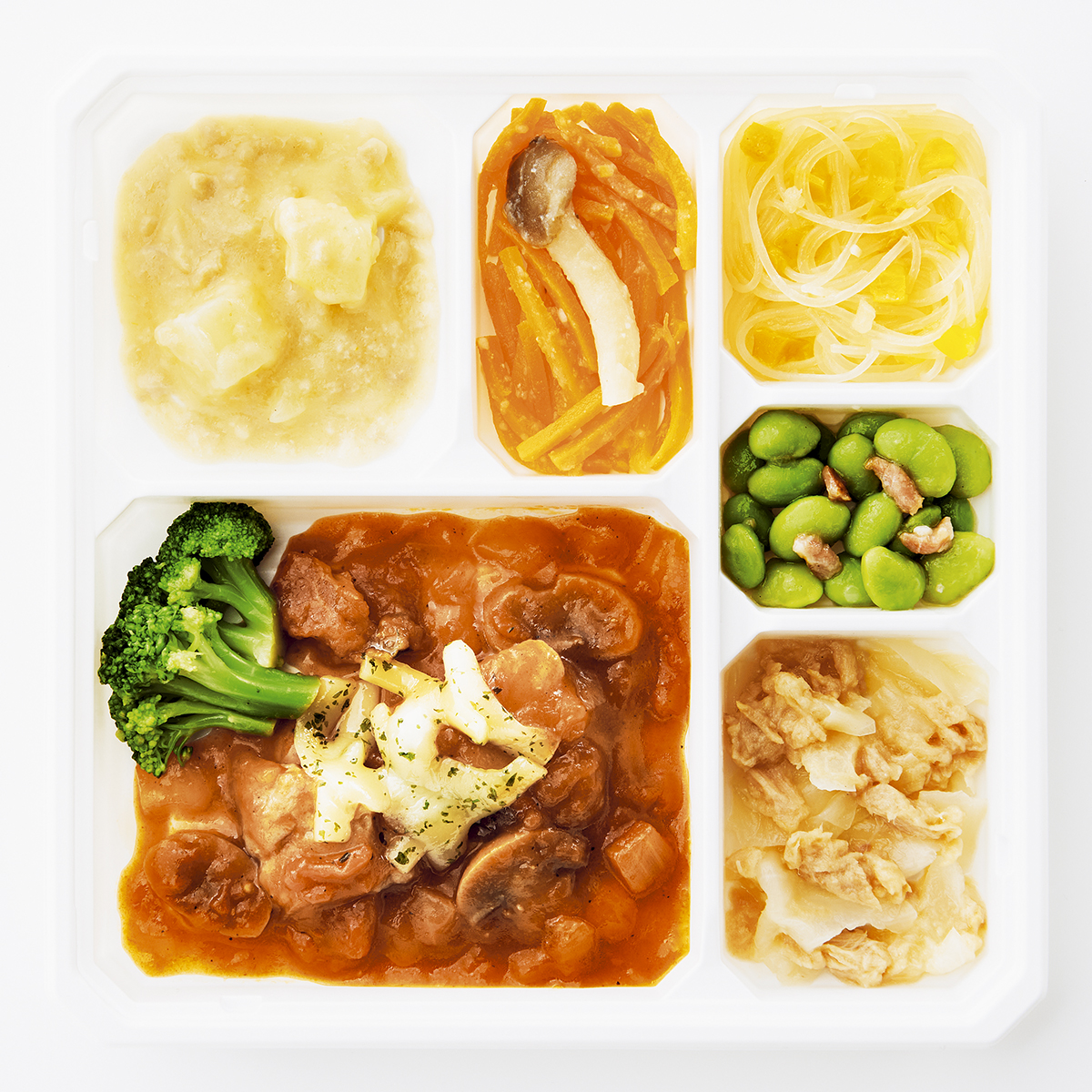 | 原材料名 | 鶏肉(タイ)、ブロッコリー、キャベツ、トマト・ピューレー漬、じゃがいも、人参、枝豆、牛乳、玉ねぎ、ぶなしめじ、マッシュルーム、ケチャップ、ツナフレーク、豚肉、ホワイトソース、春雨、チーズ、なたね油、黄ピーマン、デミグラスソース、みそ、砂糖、ねぎ、焼ベーコン、かぼちゃあん、顆粒洋風だし、赤ワイン、濃口醤油、果実調味料、おろしにんにく、食塩、ごま油、レモン果汁、発酵調味料、おろし生姜、顆粒中華風だし、パセリ、こしょう/増粘剤(加工でん粉、増粘多糖類)、調味料(アミノ酸等)、pH調整剤、着色料(カラメル、カロチン)、セルロース、ソルビット、グリシン、酸味料、くん液、香辛料、リン酸塩(Na)、酸化防止剤(エリソルビン酸Na)、香料、ショ糖エステル、発色剤(亜硝酸Na)、(一部に小麦・卵・乳成分・牛肉・ごま・大豆・鶏肉・豚肉・ゼラチンを含む) | ||