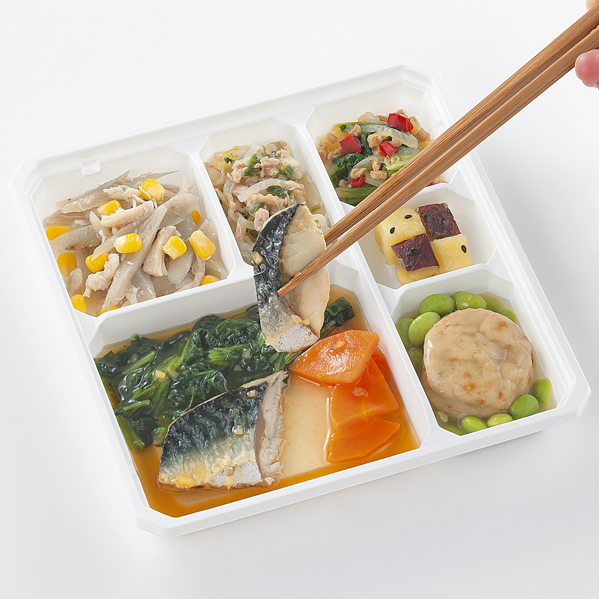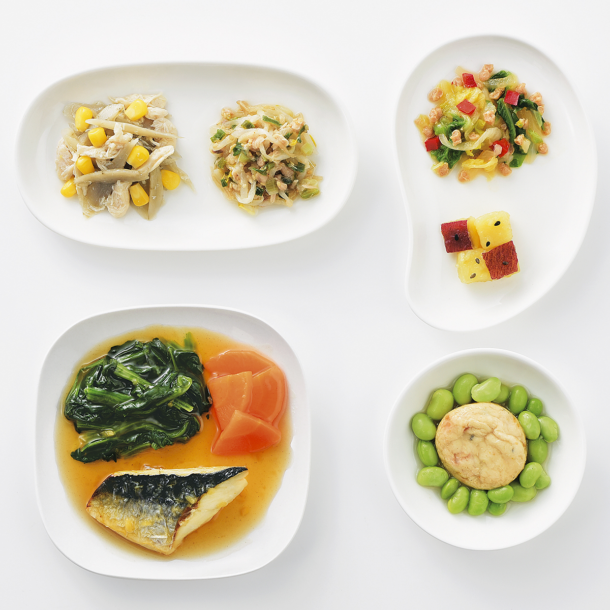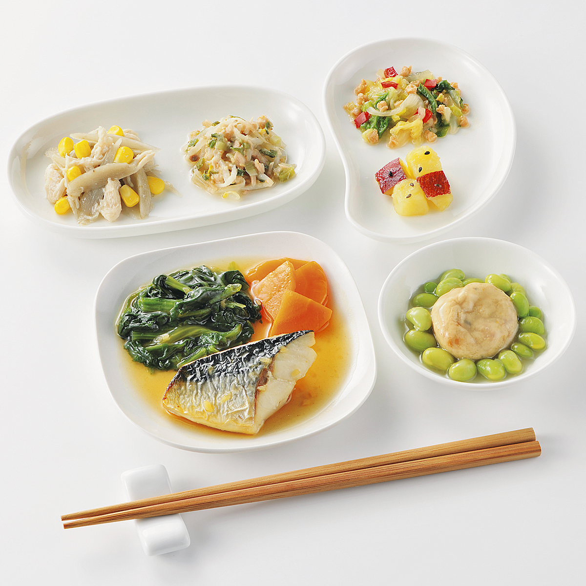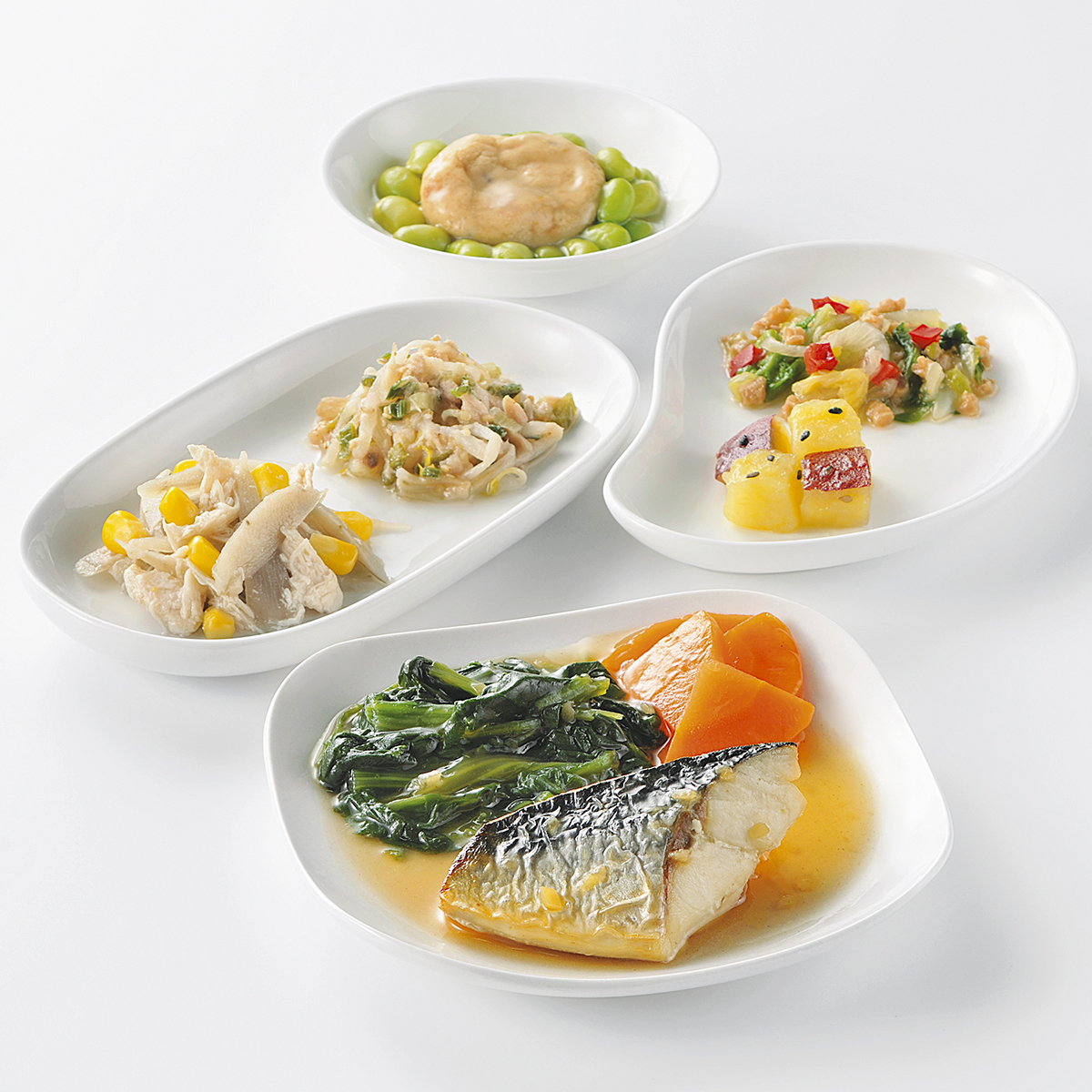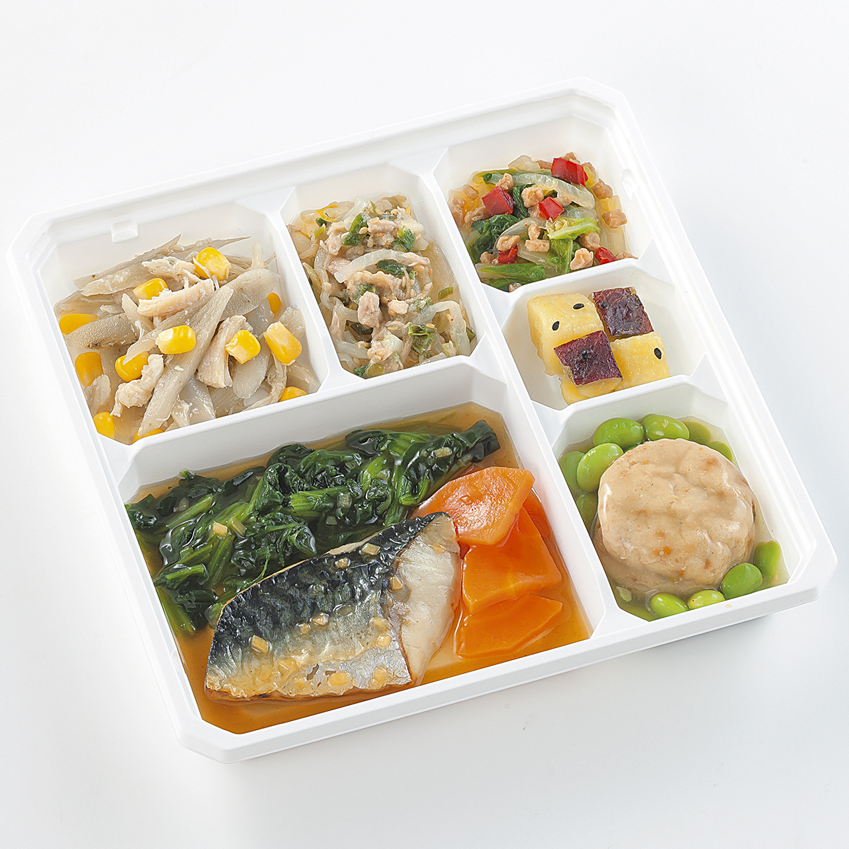 | 原材料名 | さば、ほうれん草、もやし、ごぼう、さつまいも、白菜、人参、がんもどき、枝豆、蒸し鶏ほぐし、玉ねぎ、ツナフレーク、コーン、上白糖、濃口醤油、ねぎ、発酵調味料、赤ピーマン、本みりん、清酒、顆粒和風だし、粒状大豆たん白、ごま油、しょうが、淡口醤油、煎り白ごま、和風調味液、なたね油、果実調味料、食塩、三温糖、煎り黒ごま、唐辛子/増粘剤(加工デンプン、増粘多糖類)、調味料(アミノ酸等)、pH調整剤、ポリリン酸Na、酸化防止剤(V.C)、酸味料、着色料(カラメル、紅麹)、(一部に小麦・ごま・さば・大豆・鶏肉・魚醤(魚介類)を含む) | ||