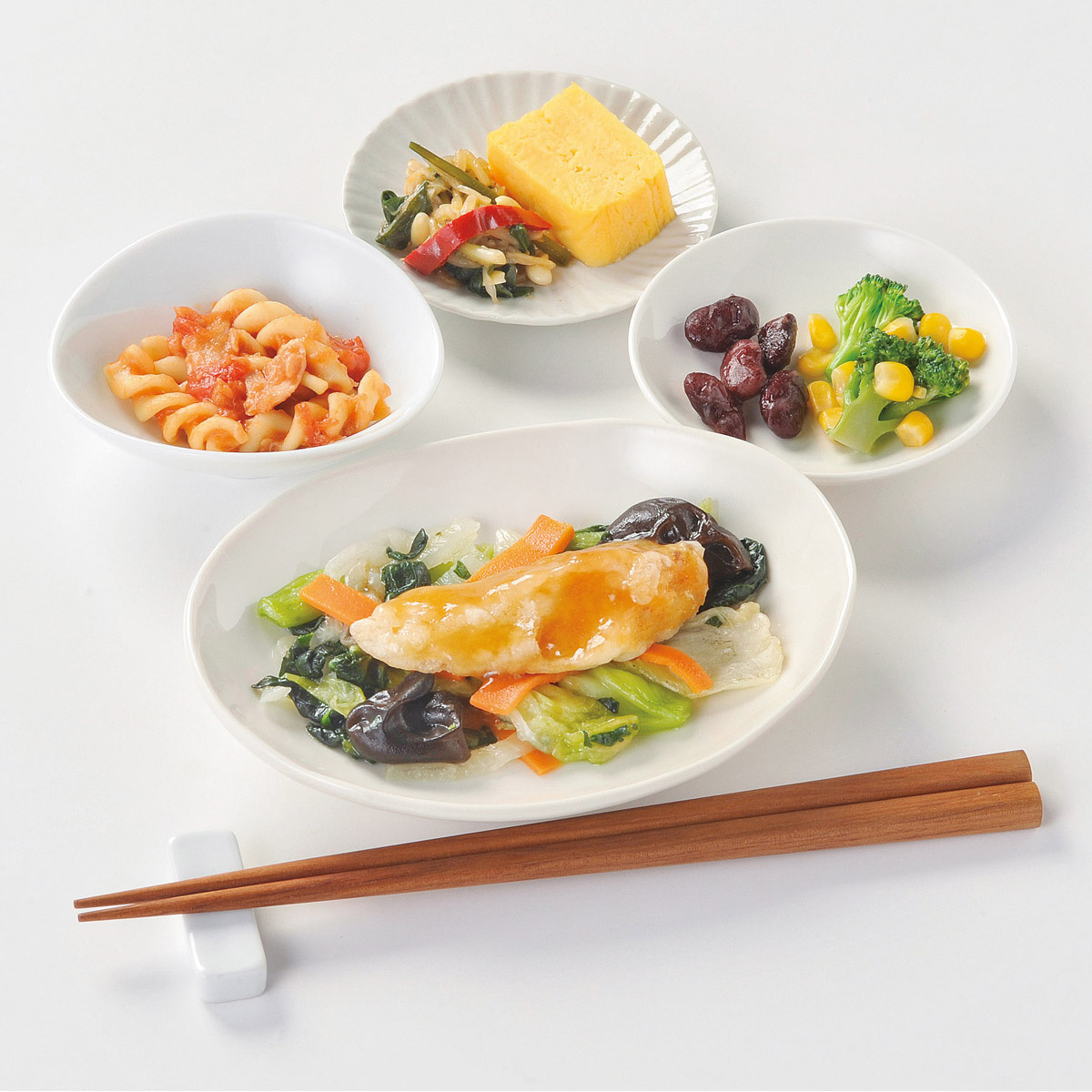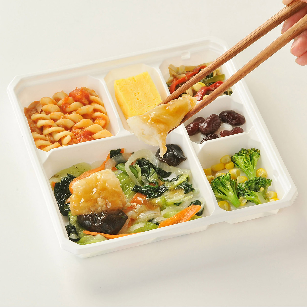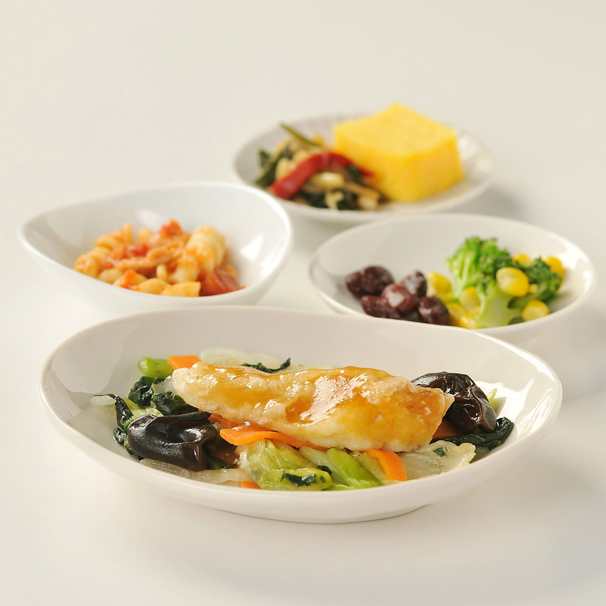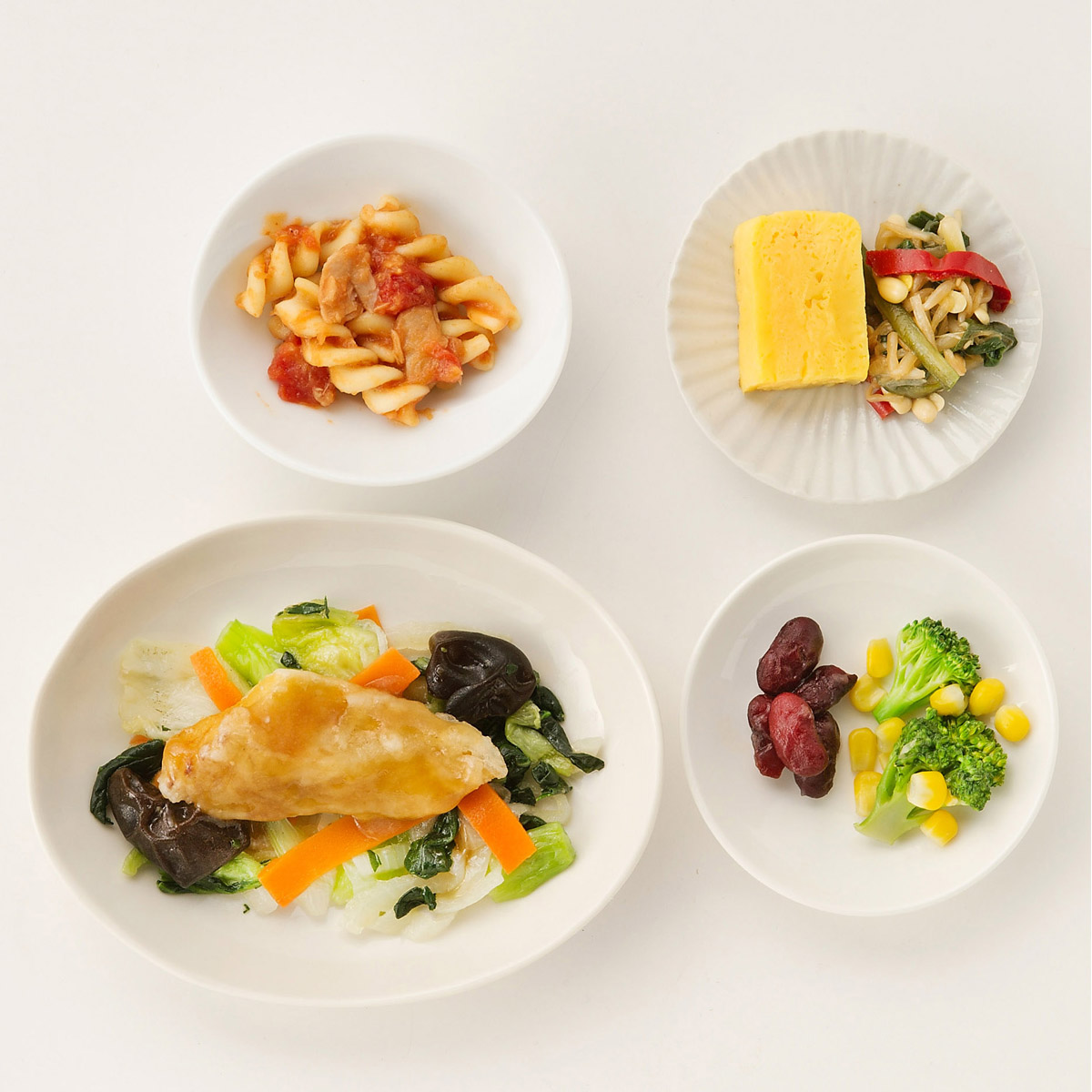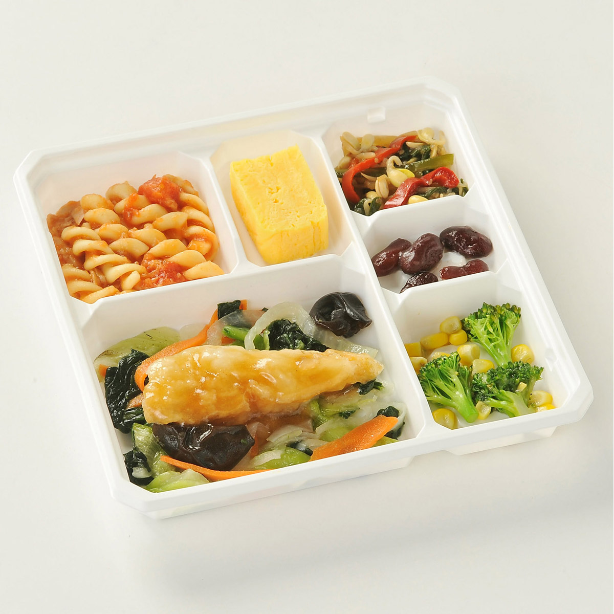 | 原材料名 | カレイ、卵焼、チンゲン菜、ブロッコリー、もやし、玉ねぎ、なたね油、赤インゲン豆、人参、赤ピーマン、マカロニ、トマト・トマトジュース漬、にら、コーン、ツナフレーク、ケチャップ、上白糖、減塩醤油、ねぎ、大豆油、顆粒中華風だし、おろししょうが、オイスターソース、濃口醤油、はちみつ、ごま油、中華スープの素、三温糖、乾燥きくらげ、発酵調味料、煎り白ごま、食塩、顆粒洋風だし、淡口醤油、おろしにんにく、本みりん、白こしょう/加工デンプン、増粘剤(加工デンプン、増粘多糖類)、ソルビット、グリシン、調味料(アミノ酸等)、pH調整剤、酸味料、酒精、(一部に小麦・卵・乳成分・牛肉・ごま・大豆・鶏肉・豚肉・ゼラチンを含む) | ||