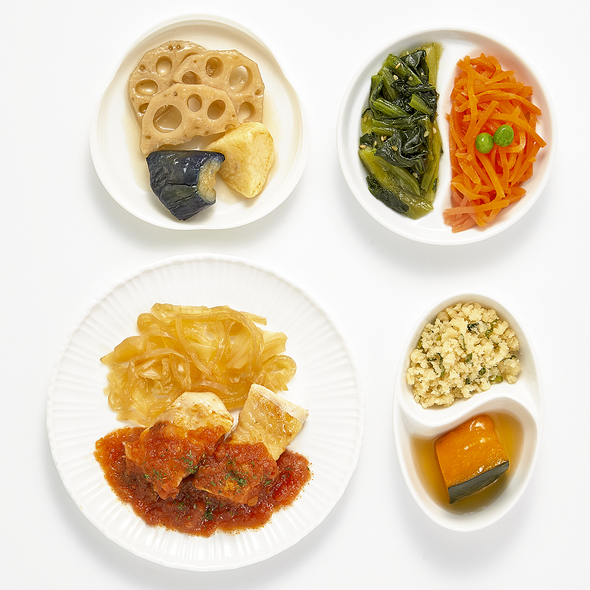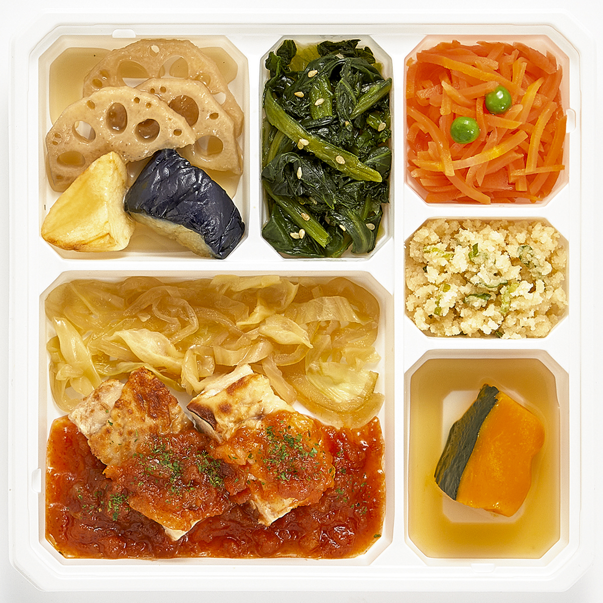 | 原材料名 | 鶏肉(ブラジル産)、人参(日本産)、小松菜(中国産)、玉ねぎ、南瓜、水煮れんこん、揚げなす、トマトソース、キャベツ、じゃがいも、ケチャップ、みりん風調味料、発酵調味料、砂糖、おから、醤油、ねぎ、調合ごま油、グリーンピース、植物油、醤油だし、粉末調味料、オイスターソース、食塩、パセリ、ごま、にんにく/増粘剤(加工でん粉、増粘多糖類)、調味料(アミノ酸等)、pH調整剤、ミョウバン、酒精、酸化防止剤(V.E、V.C、チャ抽出物)、塩化Ca、乳酸Ca、漂白剤(亜硫酸塩)、酸味料、香料、(一部に小麦・乳成分・オレンジ・牛肉・ごま・さば・ゼラチン・大豆・鶏肉・豚肉を含む) | ||