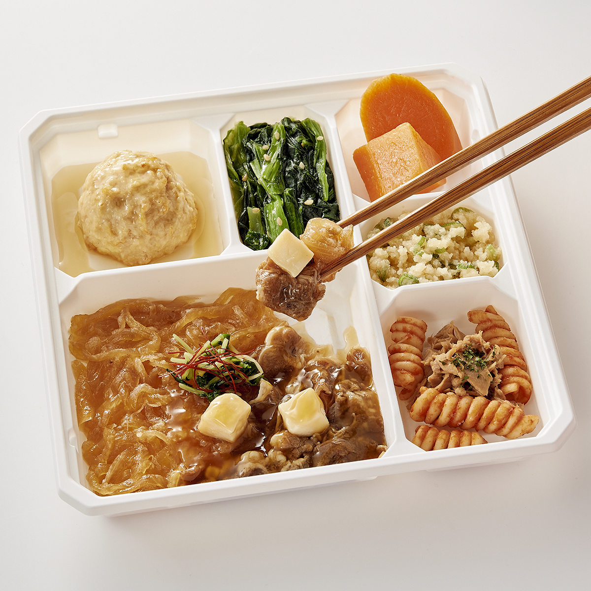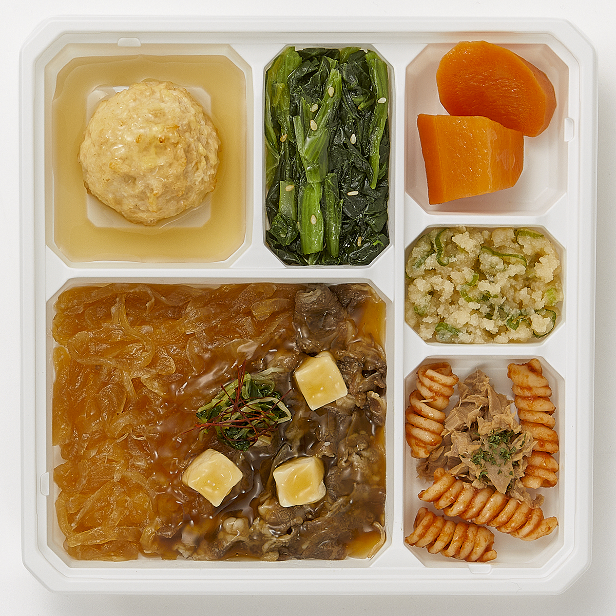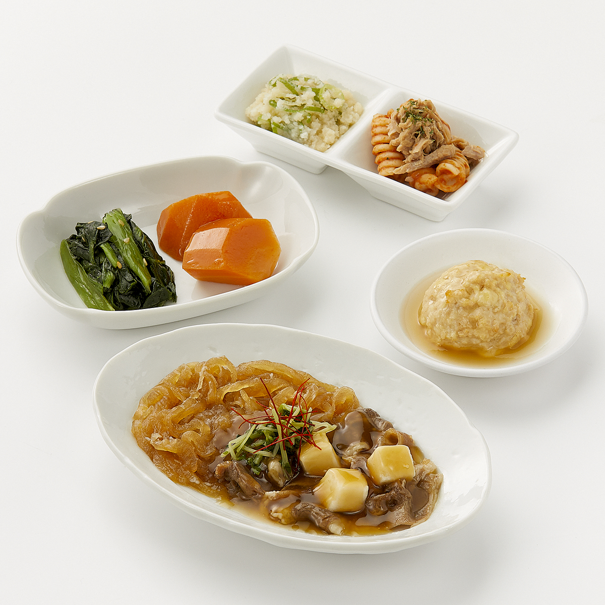 | 原材料名 | 玉ねぎ(日本産)、小松菜(中国産)、豆腐、牛肉(アメリカ産)、人参、鶏ひき肉、マカロニ、大豆加工品、ケチャップ、ツナフレーク、発酵調味料、醤油、砂糖、みりん風調味料、豆苗、おから、ねぎ、植物油、醤油だし、調合ごま油、天ぷら粉、しょうが、唐辛子、パセリ、粉末調味料、食塩、ごま、塩こしょう/糊料(加工でん粉)、調味料(アミノ酸等)、凝固剤、膨脹剤、乳酸Ca、酸化防止剤(V.C)、pH調整剤、酸味料、乳化剤、着色料(カロチノイド)、香料、酒精、(一部に小麦・卵・乳成分・牛肉・ごま・さば・ゼラチン・大豆・鶏肉・豚肉を含む) | ||