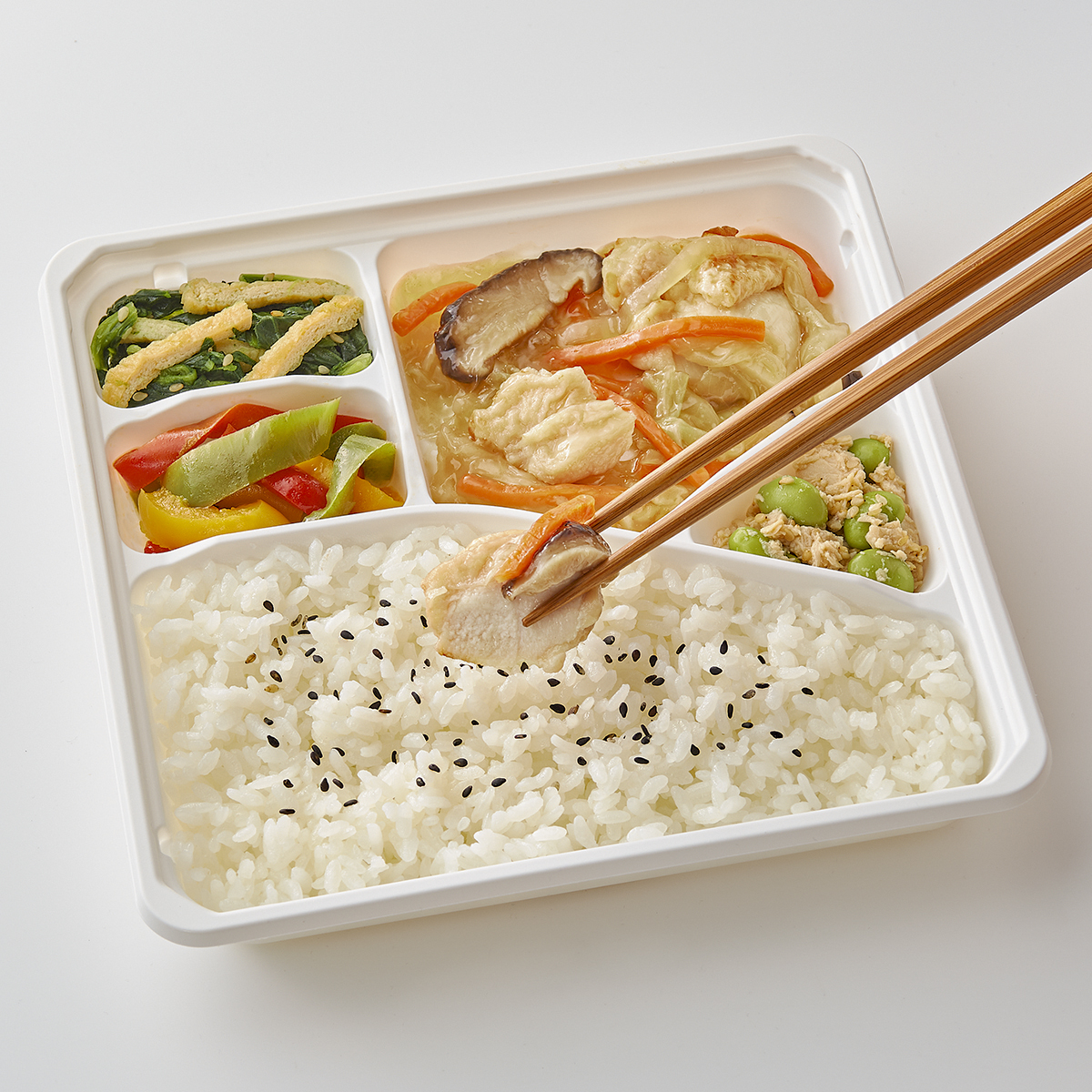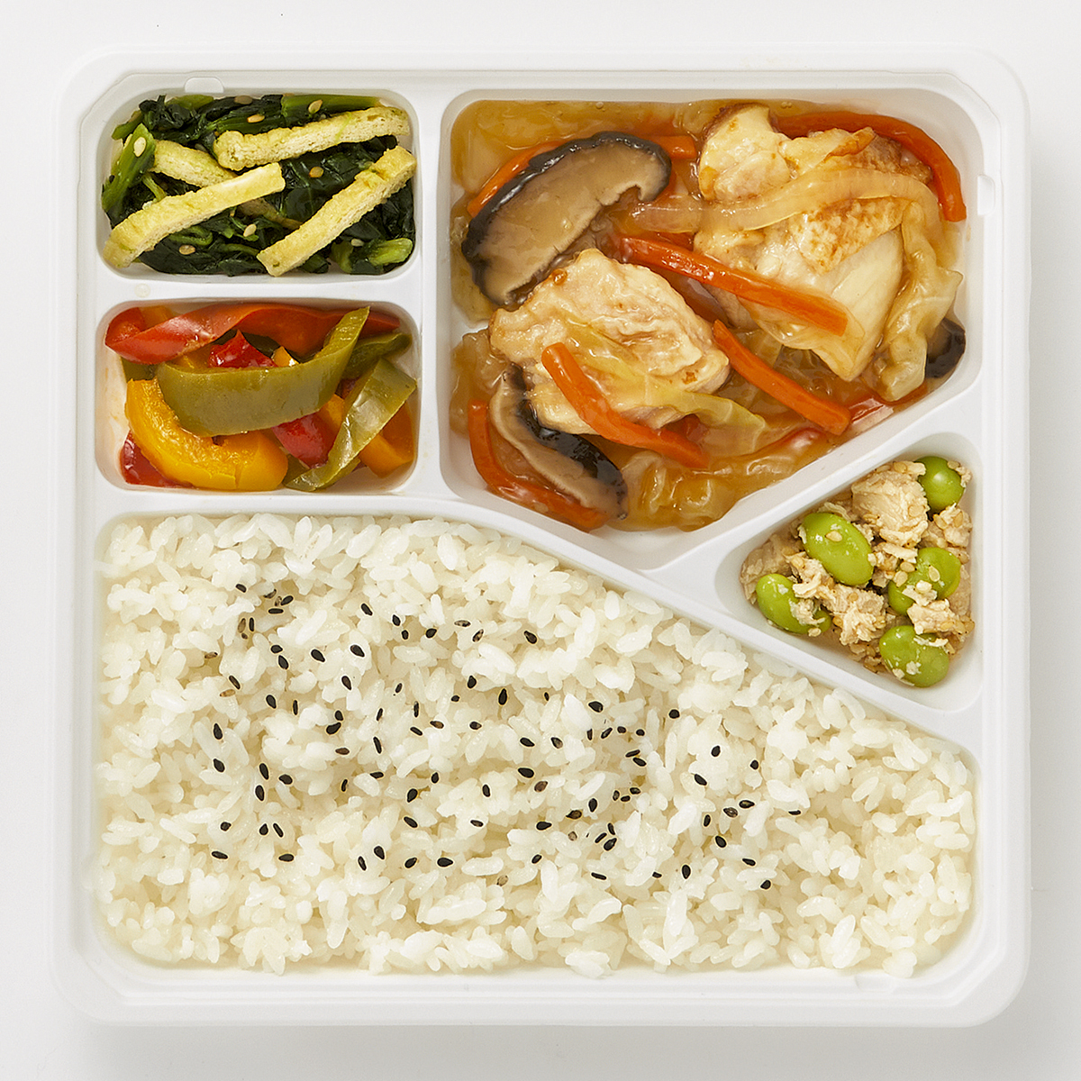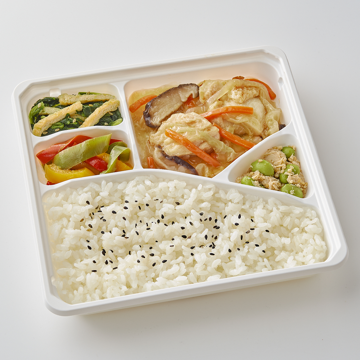 | 原材料名 | 雑穀ごはん(米、米粒麦)、鶏肉、小松菜、ピーマン、蒸し鶏、黄ピーマン、赤ピーマン、キャベツ、玉ねぎ、人参、つゆ、油揚げ、しいたけ、むき枝豆、植物油、清酒風調味料、ポン酢醤油、ごま、おろしにんにく、白だし、醤油、みりん、刻みしょうが、かつお節調味料、黒ごま、ゼラチン、食塩/増粘剤(加工デンプン)、調味料(アミノ酸等)、加工デンプン、pH調整剤、酸味料、酸化防止剤(V.C)、香料、(一部に小麦・ごま・さば・大豆・鶏肉・ゼラチンを含む) | ||