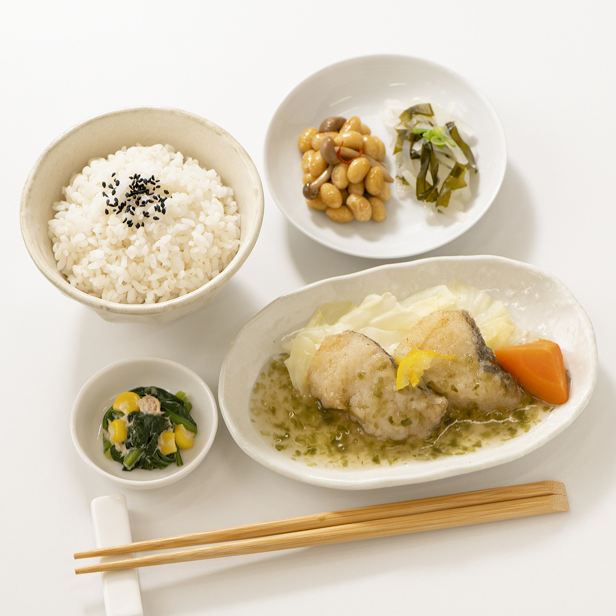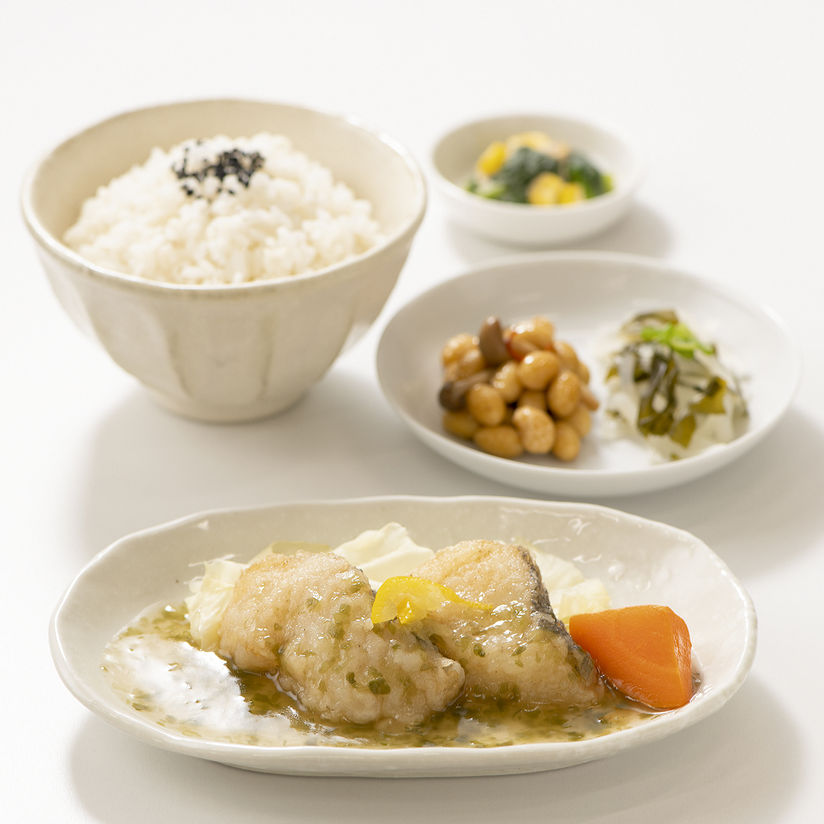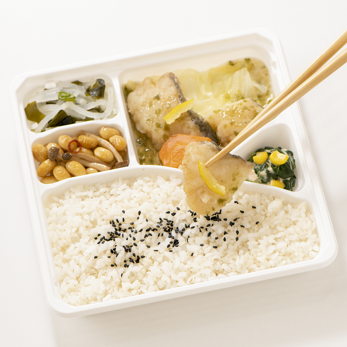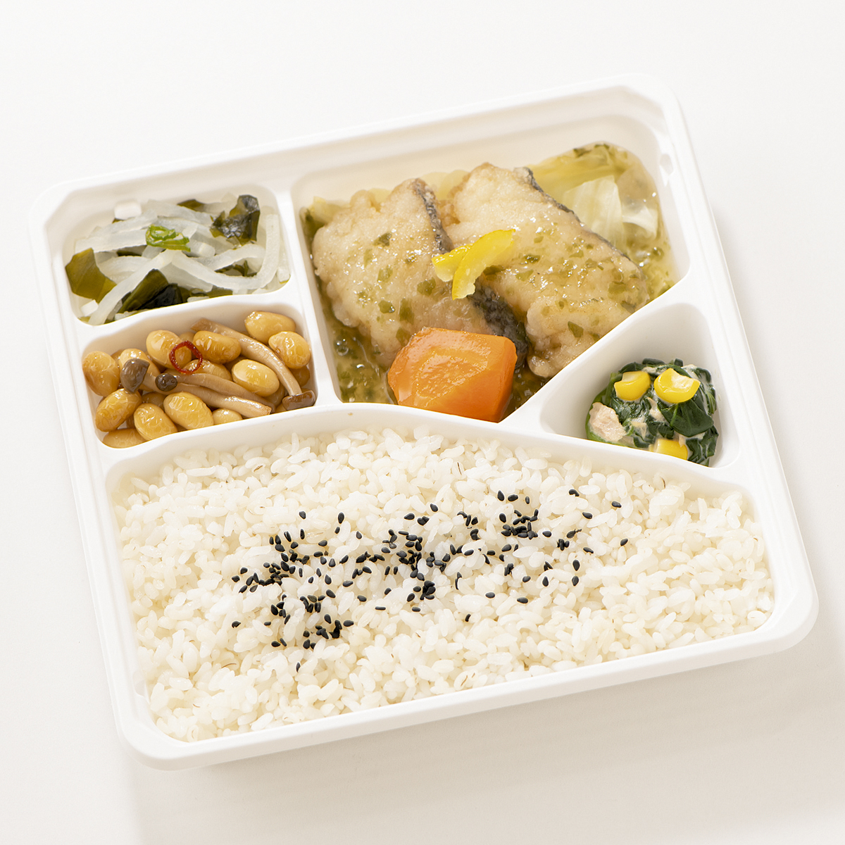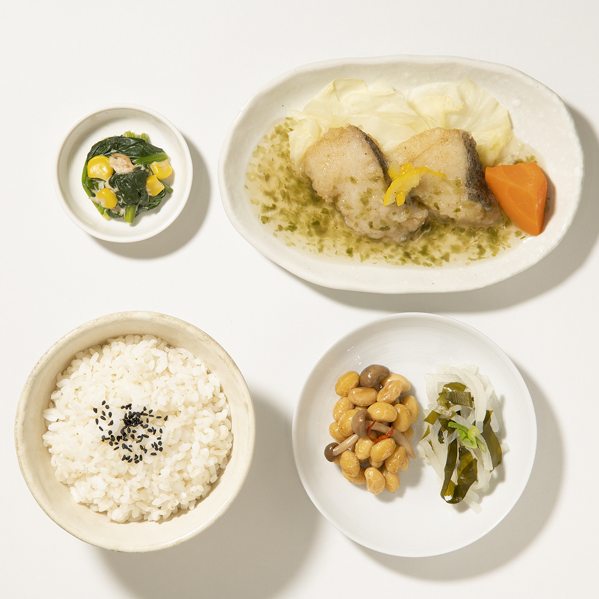 | 原材料名 | 雑穀ごはん(米(国産)、米粒麦(国内製造))、まだら、だいこん、ほうれんそう、キャベツ、にんじん、大豆(ミヤギシロメ)、ぶなしめじ、穀物酢、食用なたね油、マヨネーズ、とうもろこし、わかめ、しょうゆ(本醸造)、砂糖、みりん、まぐろ水煮(フレーク)、長ねぎ、清酒、ゆずの皮、液体鰹だし、液体昆布だし、あおさ加工品、食塩、いりごま、ホワイトペッパー、唐辛子/増粘剤(加工でん粉、キサンタンガム)、調味料(アミノ酸等)、pH調整剤、乳化剤、酒精、香辛料抽出物、(一部に小麦・卵・ごま・大豆・ゼラチンを含む) | ||