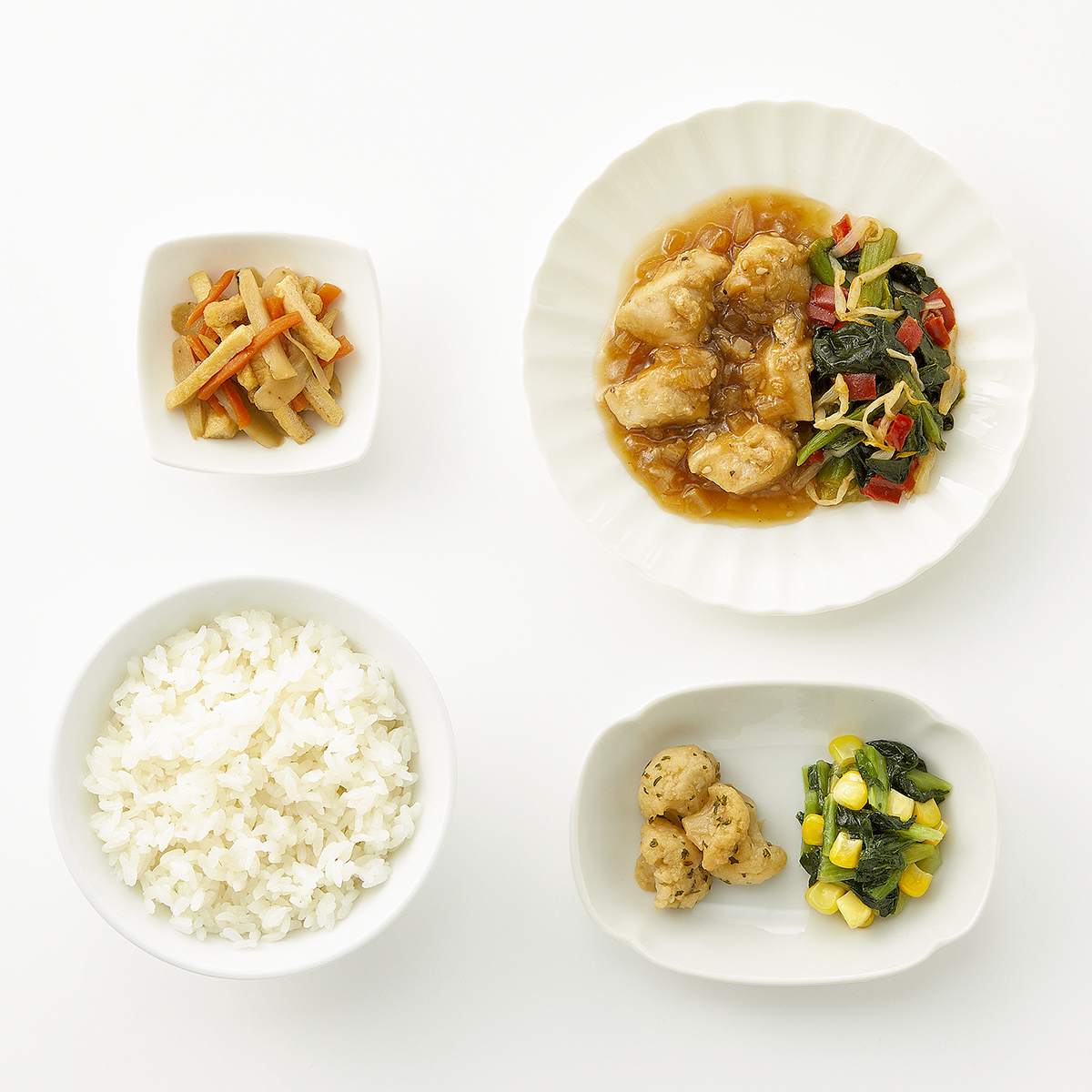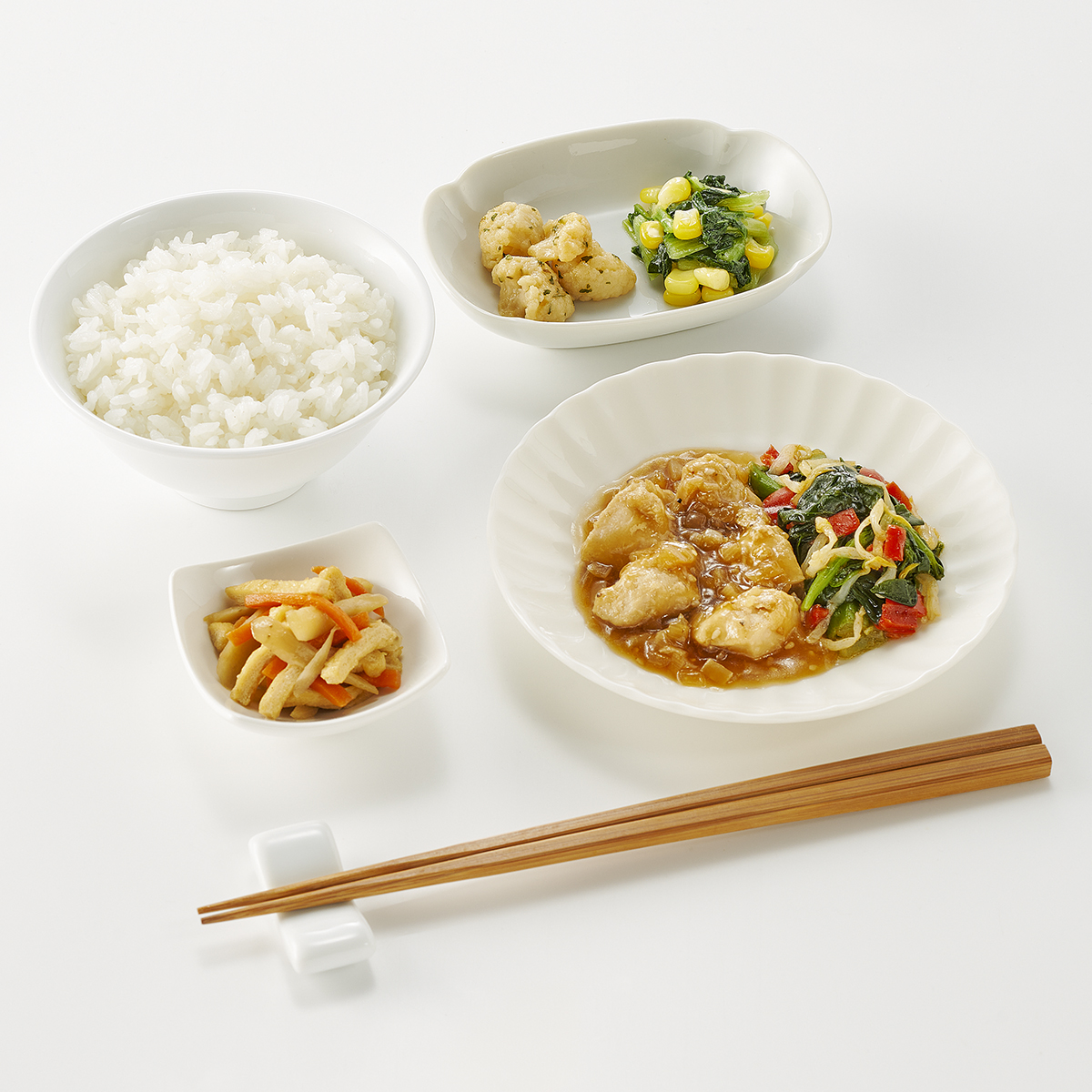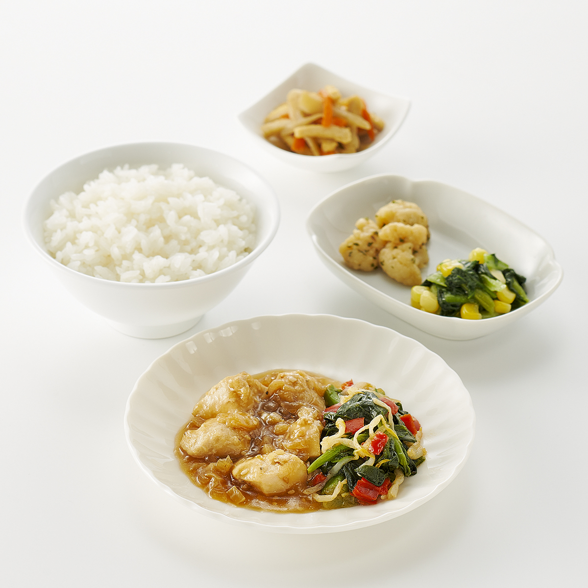 | 原材料名 | 米、鶏肉、小松菜、菜の花、カリフラワー、緑豆もやし、ポン酢醤油、ごぼう、植物油、油揚げ、赤ピーマン、人参、コーン、醤油、玉ねぎ、ねぎ、白だし、バターソース、みりん、おろしにんにく、ごま油、食塩、ごま、砂糖、黒こしょう、パセリ/加工デンプン、増粘剤(加工デンプン、増粘多糖類)、調味料(アミノ酸等)、酸味料、香料、pH調整剤、乳化剤、クチナシ色素、(一部に小麦・乳成分・ごま・大豆・鶏肉を含む) | ||