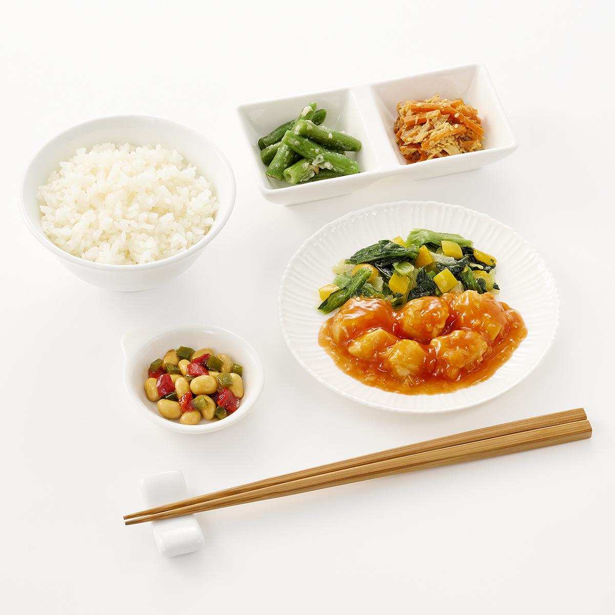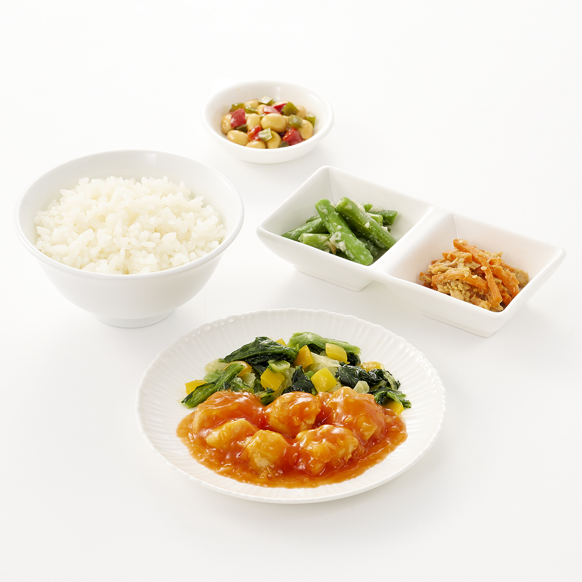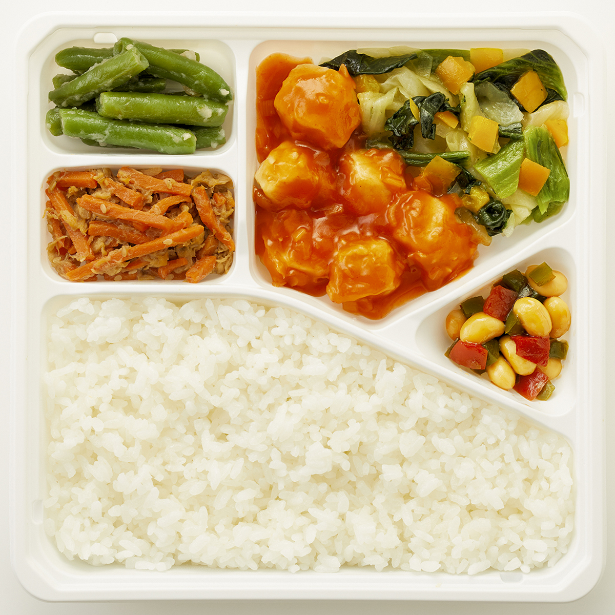 | 原材料名 | 米、鶏肉、いんげん、キャベツ、チンゲン菜、人参、ツナフレーク、植物油、ケチャップ、黄ピーマン、大豆水煮、赤ピーマン、ピーマン、照焼だれ、醤油、ねぎ、清酒風調味料、にんにく加工品、鶏がら調味料、砂糖、ごま、刻みしょうが、オイスターソース、トウバンジャン、こしょう/加工デンプン、増粘剤(加工デンプン、キサンタン)、調味料(アミノ酸等)、pH調整剤、塩化Ca、カロチノイド色素、酸化防止剤(V.C)、(一部に小麦・ごま・さば・大豆・鶏肉・りんごを含む) | ||