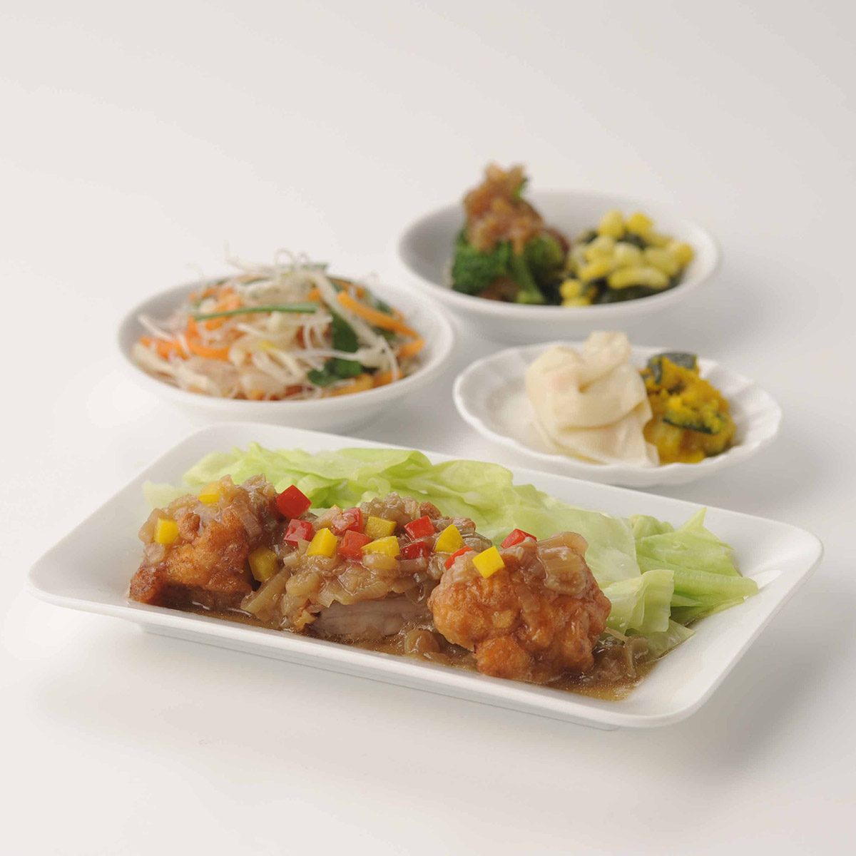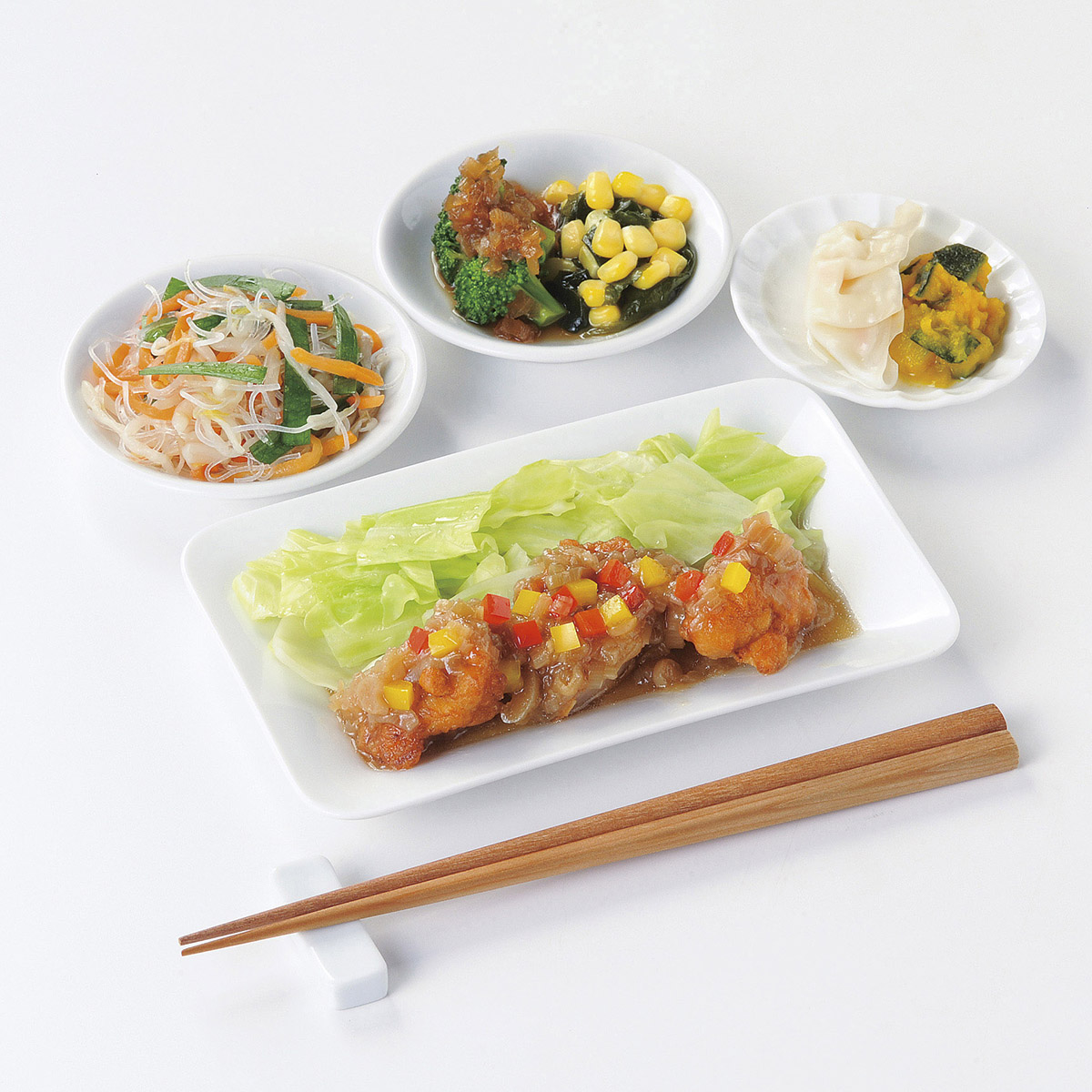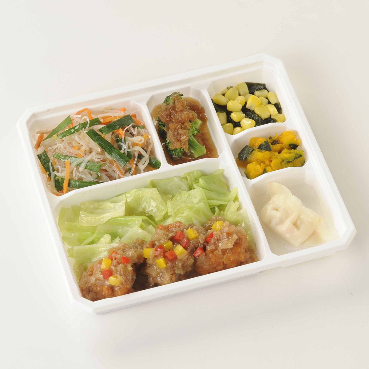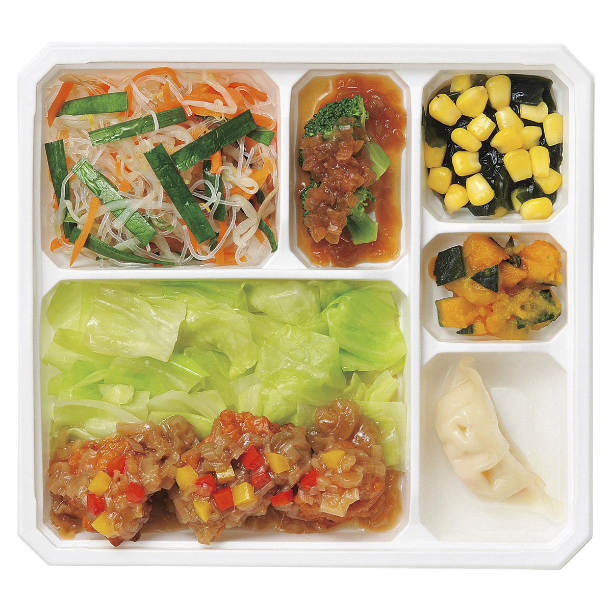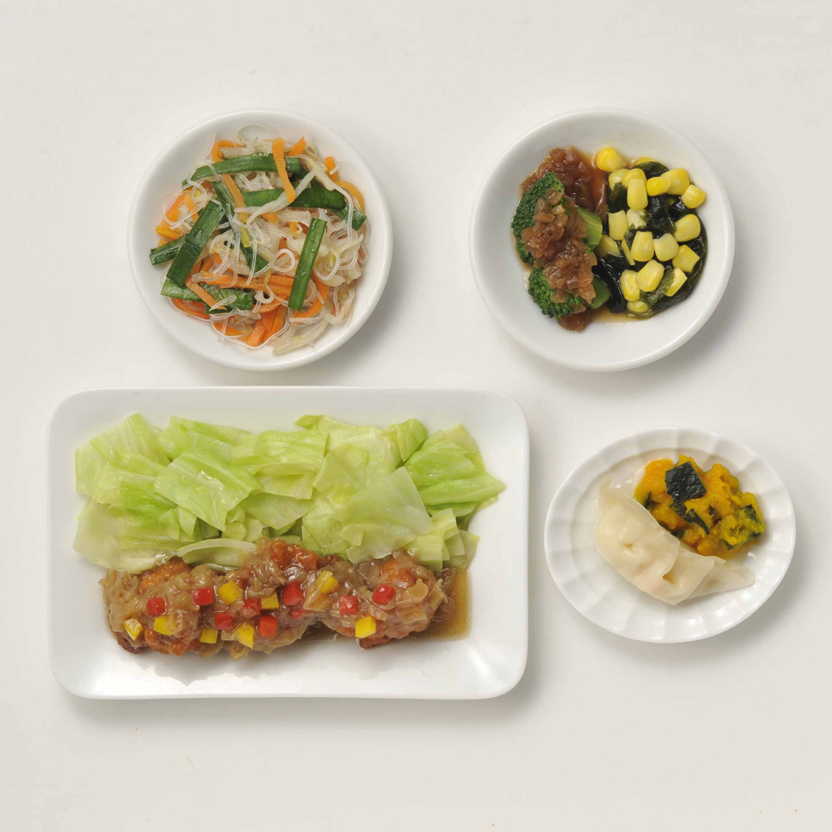 | 原材料名 | キャベツ、鶏肉、もやし、ねぎ、ブロッコリー、餃子(小麦粉、キャベツ、魚肉すり身、玉ねぎ、豚脂、豆腐、卵白、その他)、かぼちゃ、なたね油、人参、玉ねぎ、にら、コーン、唐揚げ粉、上白糖、醸造酢、赤ピーマン、減塩醤油、黄ピーマン、春雨、濃口醤油、オイスターソース、乾燥わかめ、清酒、おろししょうが、ごま油、食塩、ゼラチン、中華スープの素、大豆油、顆粒中華風だし、調合油(なたね油、ごま油)、顆粒洋風だし、白こしょう、黒こしょう/増粘剤(加工デンプン、キサンタン)、加工デンプン、調味料(アミノ酸等)、香辛料、pH調整剤、酸味料、凝固剤、乳化剤、(一部に小麦・卵・乳成分・牛肉・ごま・大豆・鶏肉・豚肉・ゼラチンを含む) | ||