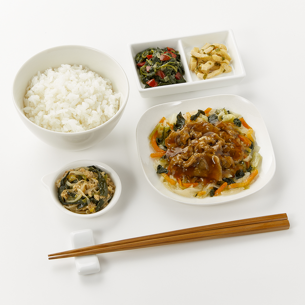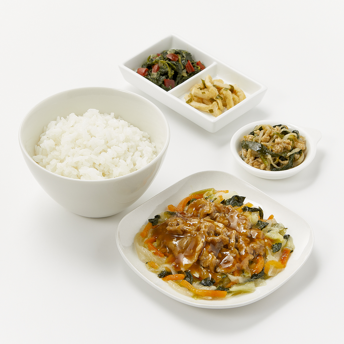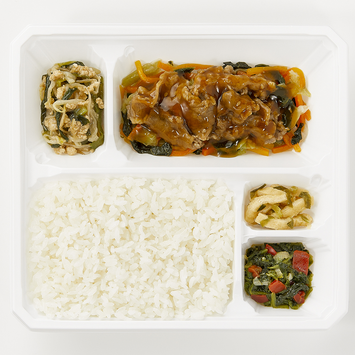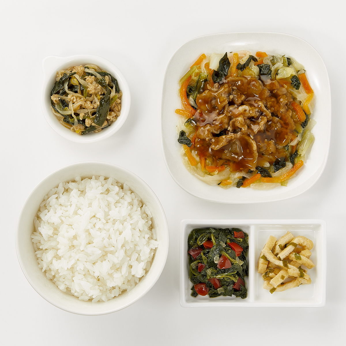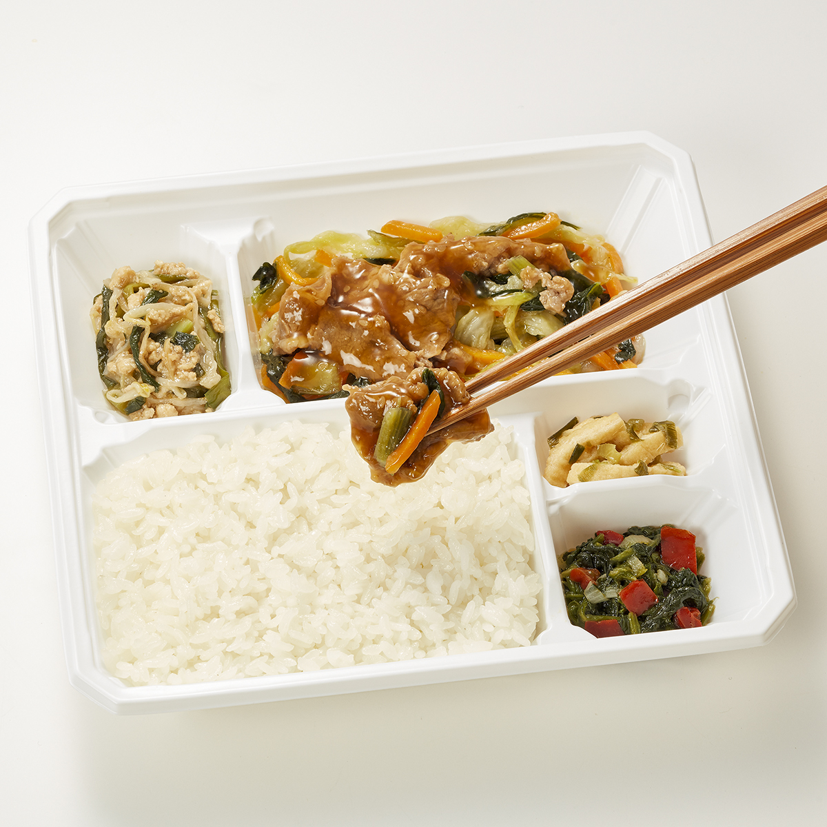| 原材料名 | 米、キャベツ、牛肉、ほうれん草、緑豆もやし、玉ねぎ、小松菜、人参、鶏肉、植物油、醤油、みりん、赤ピーマン、にら、油揚げ、砂糖、ねぎ、味噌だれ、清酒風調味料、ごま油、おろししょうが、つゆ、にんにく加工品、食塩、ごま、醤油加工品、こしょう/加工デンプン、増粘剤(加工デンプン)、調味料(アミノ酸等)、pH調整剤、酸化防止剤(V.C)、酸味料、(一部に小麦・牛肉・ごま・さば・大豆・鶏肉を含む) | ||