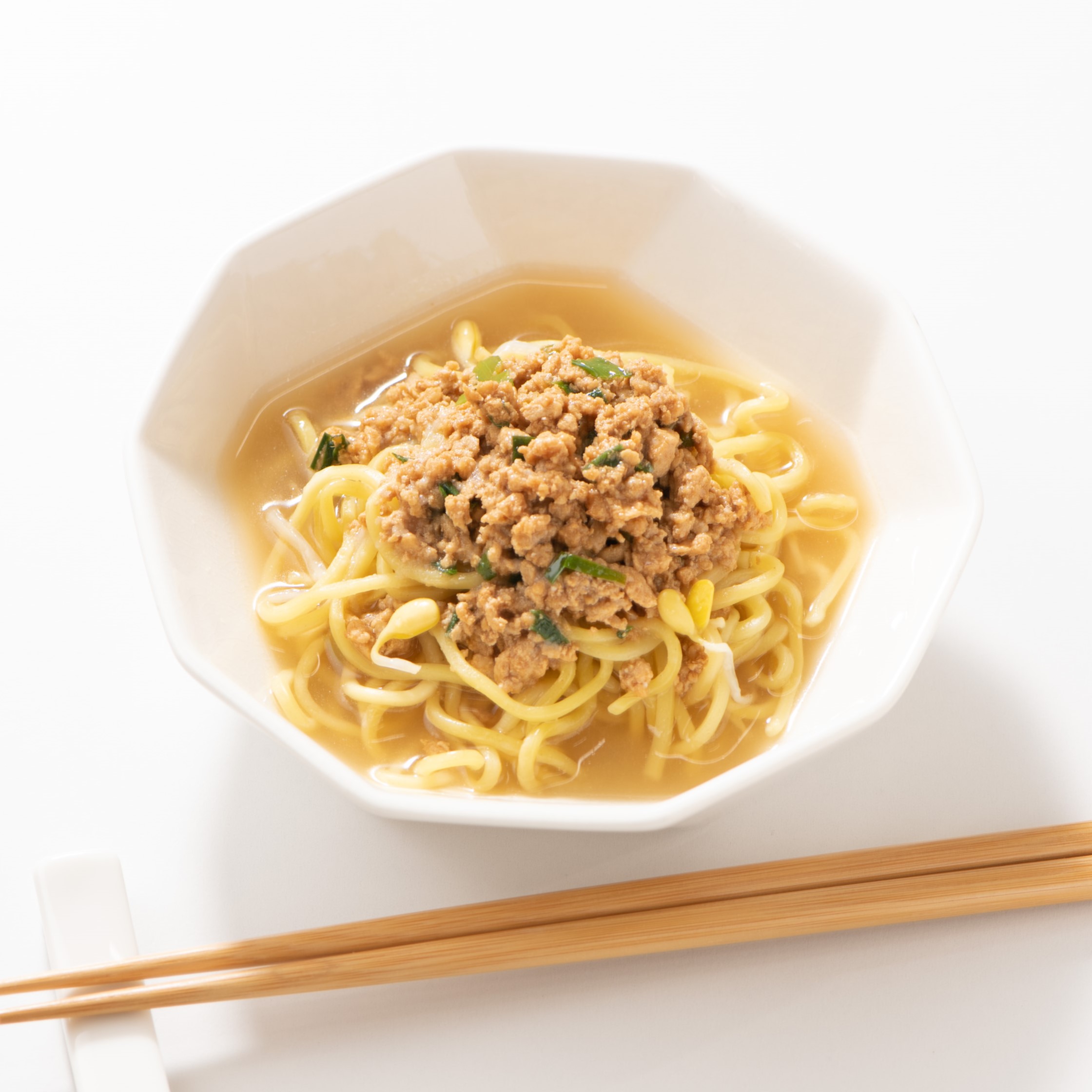 | 原材料名 | 生中華麺(国内製造)、鶏肉、大豆もやし(遺伝子組換えでない)、米みそ、テンメンジャン、にんにく、しょうが、食用調合油(ごま油、大豆油)、チキンスープパウダー、砂糖、こいくちしょうゆ(本醸造)、にら/酒精、増粘剤(加工でん粉)、乳酸Na、かんすい、調味料(アミノ酸等)、加工でん粉、カラメル色素、香料、クチナシ色素、(一部に小麦・ごま・大豆・鶏肉を含む) | ||