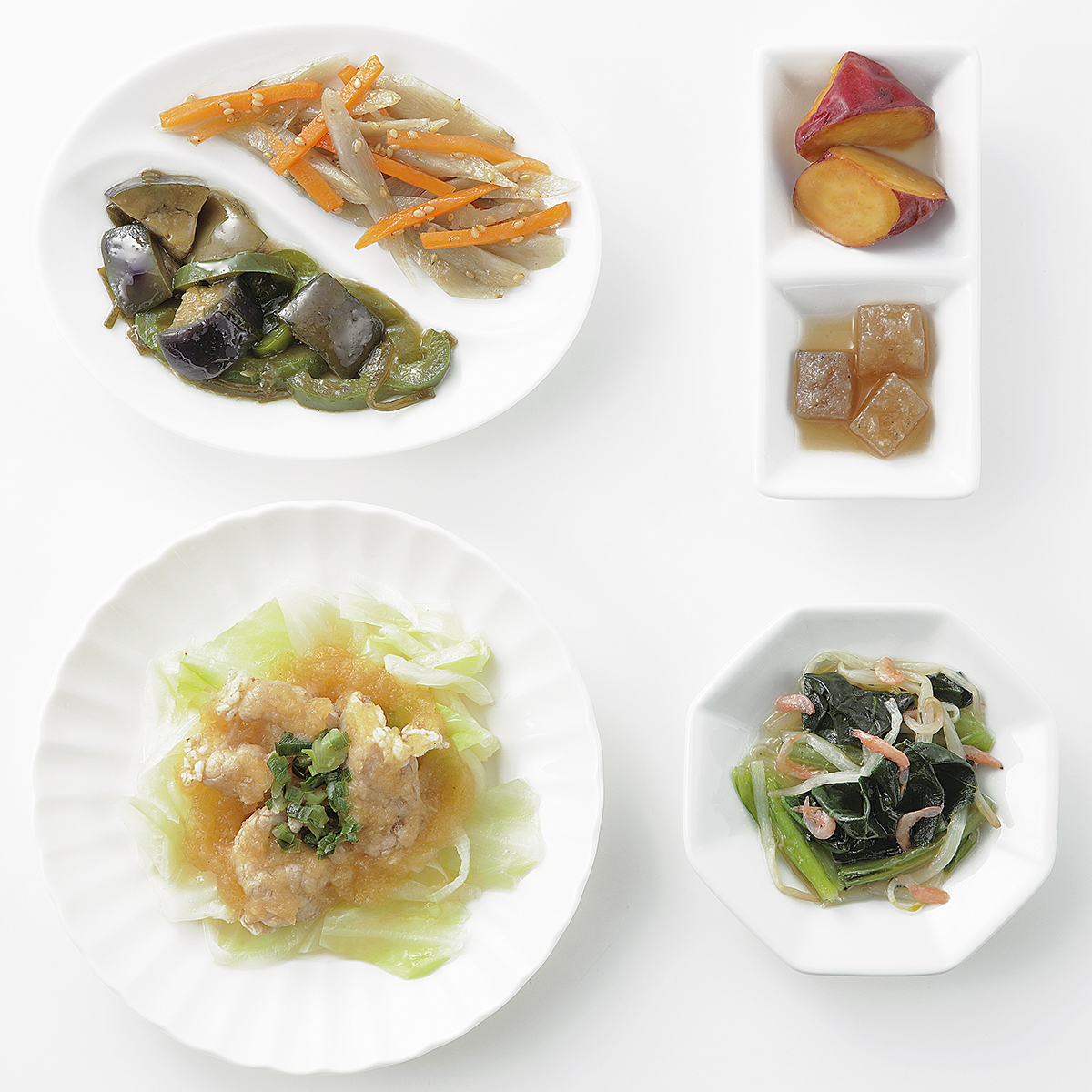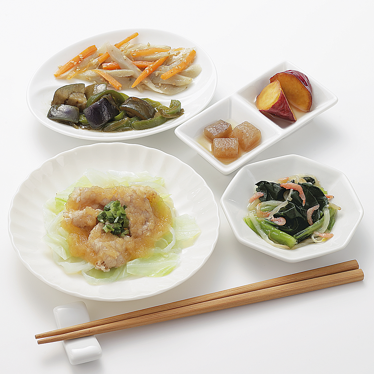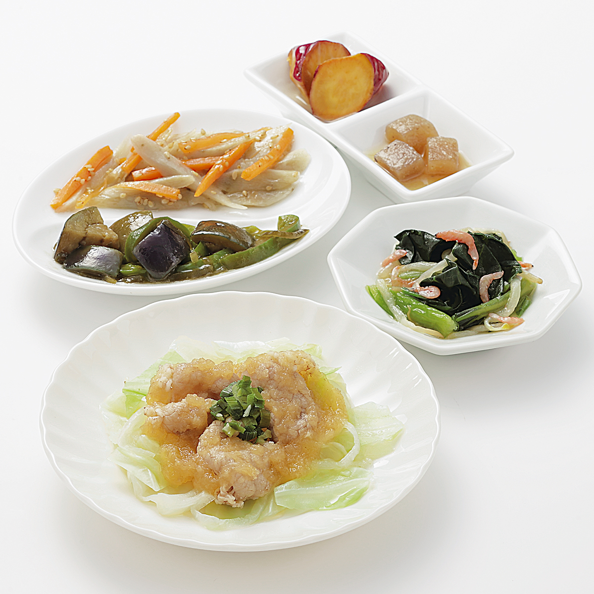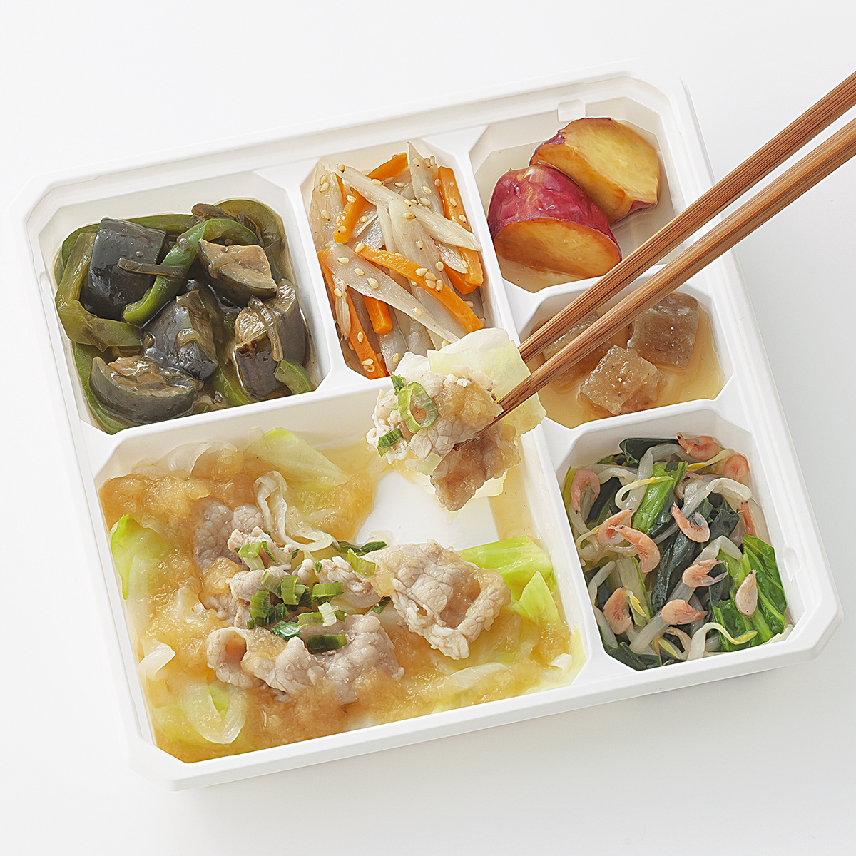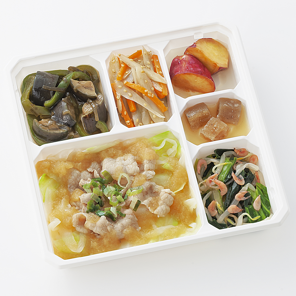 | 原材料名 | キャベツ、大根おろし、牛肉、さつまいも、玉ねぎ、素揚げなす、緑豆もやし、チンゲン菜、こんにゃく、なたね油、ごぼう、緑ピーマン、人参、ぽん酢醤油、ねぎ、三温糖、ごま油、顆粒和風だし、煎り白ごま、昆布佃煮、淡口醤油、味噌、乾燥小えび、清酒、濃口醤油、食塩、果実調味料、発酵調味料、ゆず果汁、白こしょう/糊料(加工デンプン)、調味料(アミノ酸等)、pH調整剤、酸味料、水酸化Ca、香料、着色料(紅麹)、(一部に小麦・えび・牛肉・ごま・大豆を含む) | ||