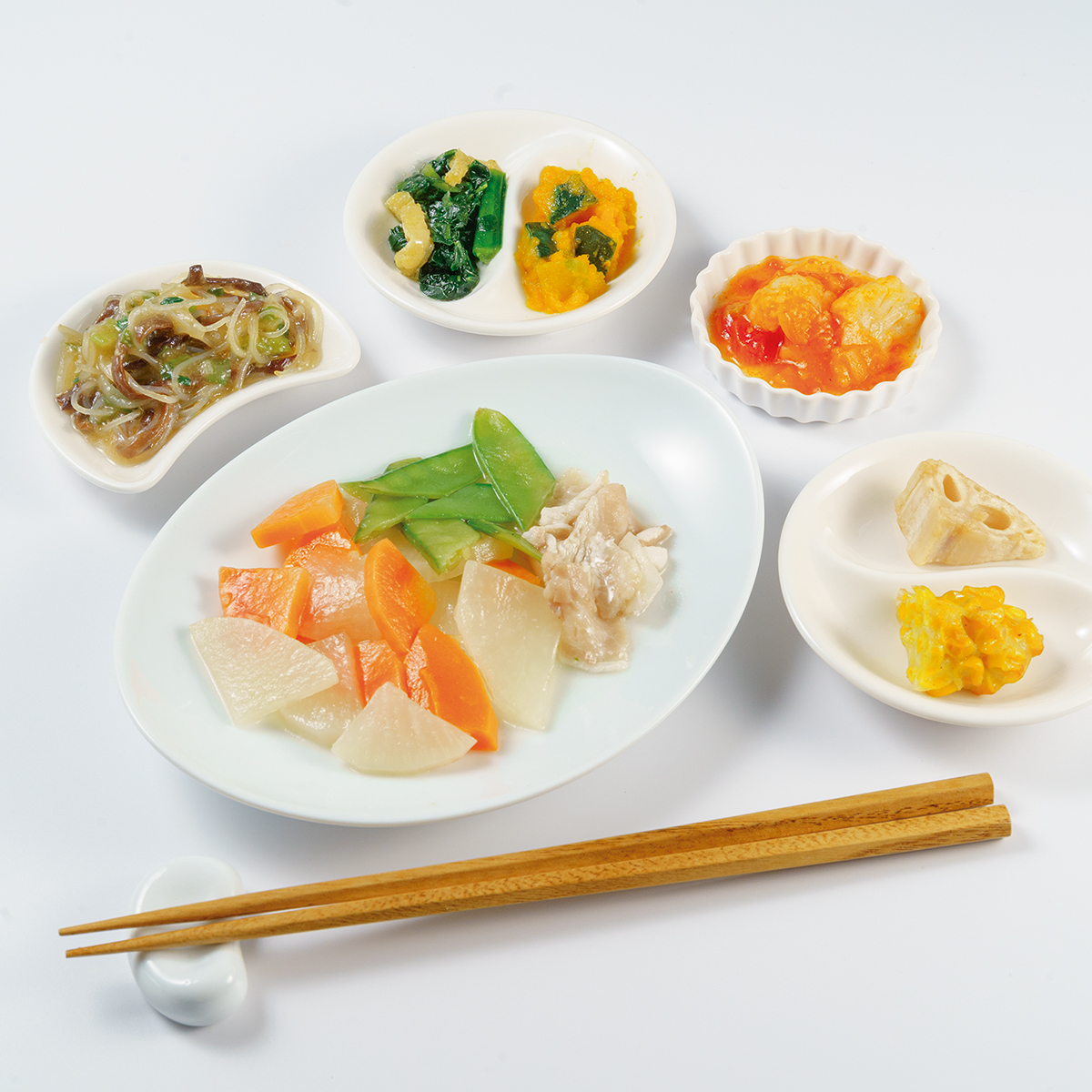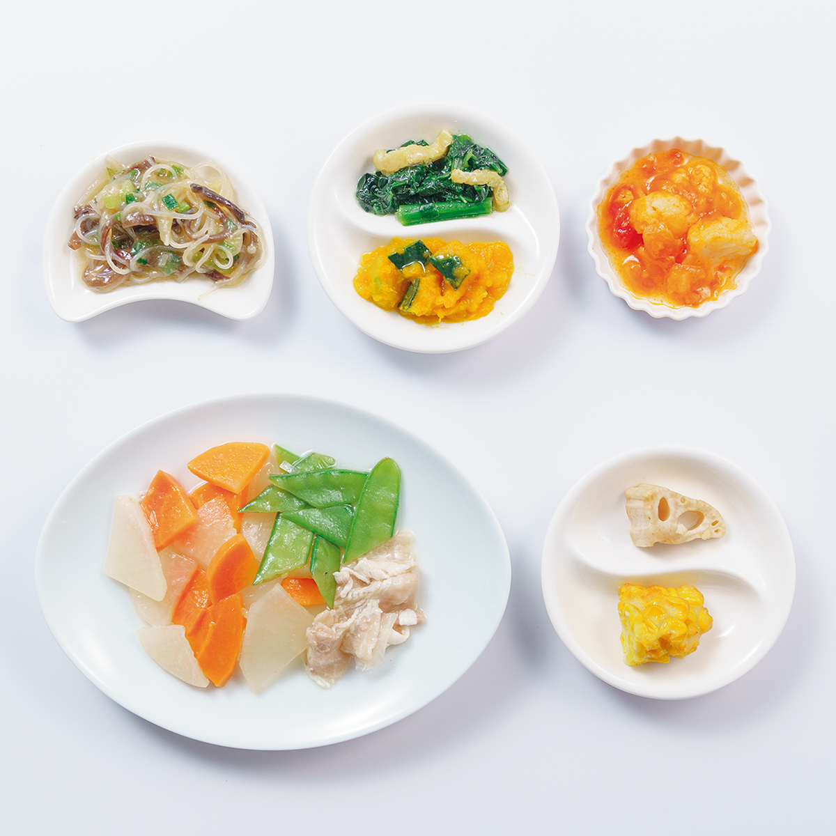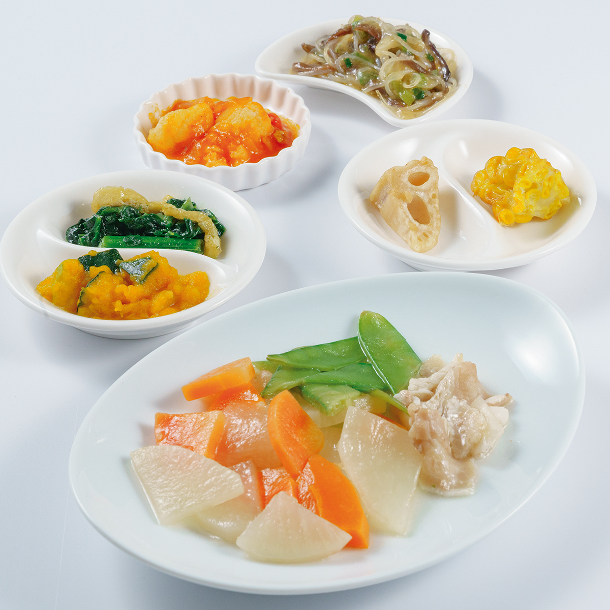 | 原材料名 | 大根(国産)、小松菜、豚肉、人参、れんこん、なたね油、コーン入り魚肉すり身、かぼちゃ、カリフラワー、トマト・ピューレー漬、きぬさや、ねぎ、春雨、和風調味液、油揚げ、淡口醤油、玉ねぎ、発酵調味料、清酒、食塩、濃口醤油、白だし、砂糖、鶏肉、減塩醤油、オイスターソース、おろし生姜、生姜、乾燥きくらげ、みそ、果実調味料、おろしにんにく、顆粒和風だし、トウバンジャン、本みりん、こしょう/増粘剤(加工でん粉、増粘多糖類)、調味料(アミノ酸等)、酒精、pH調整剤、加工でん粉、甘味料(アスパルテーム・L-フェニルアラニン化合物)、着色料(クチナシ)、酸味料、(一部に小麦・卵・乳成分・さば・大豆・鶏肉・豚肉を含む) | ||