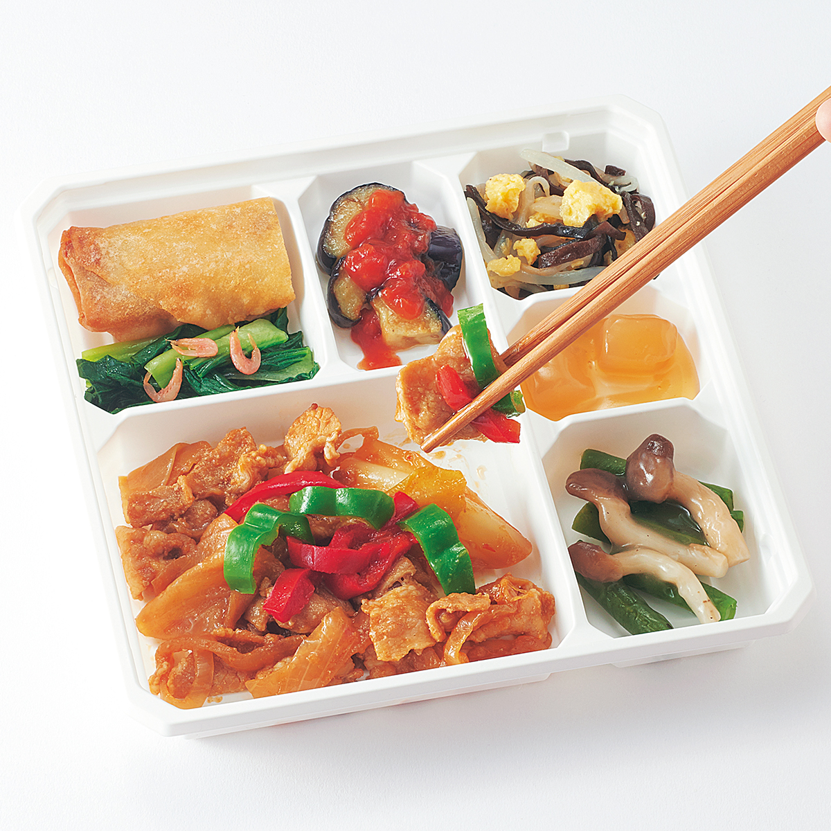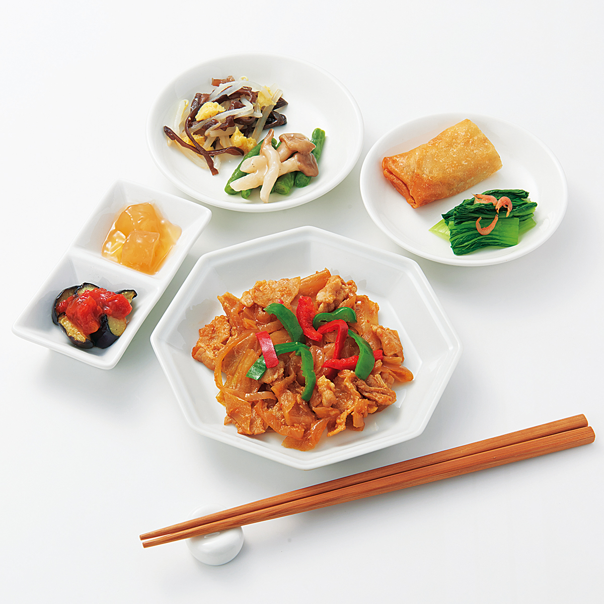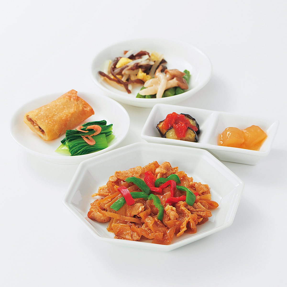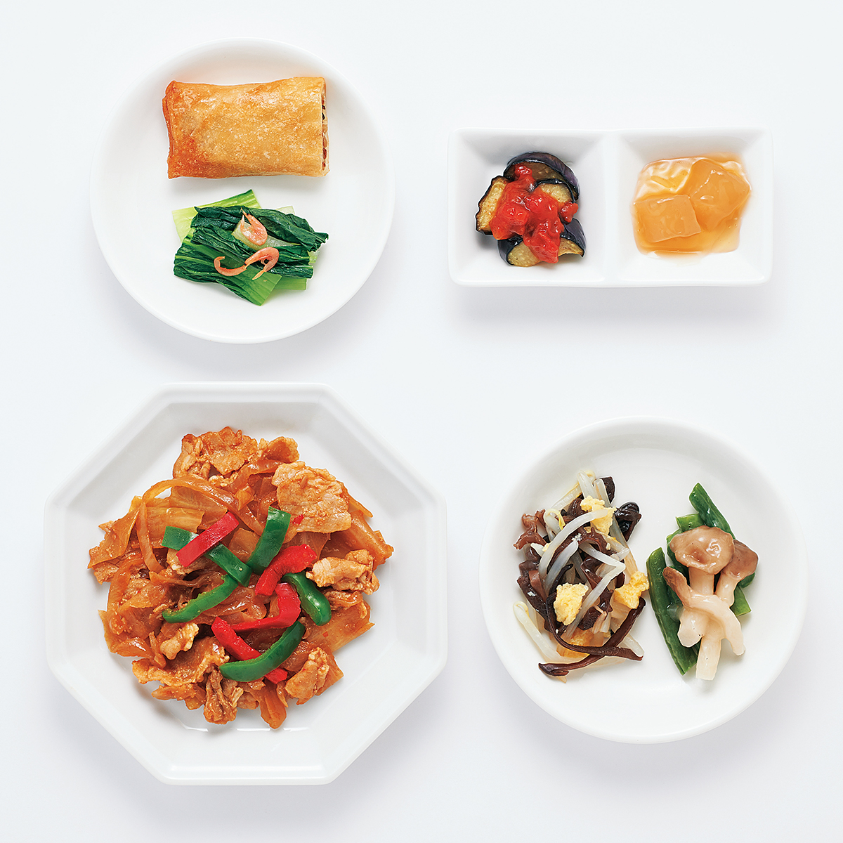 | 原材料名 | 春巻、キャベツ、玉ねぎ、豚肉、緑豆もやし、チンゲン菜、素揚げなす、サヤインゲン、緑ピーマン、こんにゃく、赤ピーマン、なたね油、ひらたけ、砂糖、炒り卵、トマト・ピューレー漬、味噌、ごま油、テンメンジャン、ケチャップ、コチュジャン、乾燥きくらげ、減塩醤油、発酵調味料、濃口醤油、レモンジュース、食塩、にんにく、トマトペースト、白ワイン、しょうが、バターフレーバーオイル、果実調味料、豆板醤、乾燥小えび、顆粒洋風だし、顆粒和風だし、おろしにんにく、顆粒中華風だし、白こしょう、黒こしょう/糊料(加工デンプン、キサンタン)、調味料(アミノ酸等)、ソルビット、加工デンプン、乳化剤、pH調整剤、水酸化Ca、着色料(カラメル、紅麹、カロチノイド)、香料、酸味料、(一部に小麦・卵・乳成分・えび・牛肉・ごま・大豆・鶏肉・豚肉・ゼラチンを含む) | ||