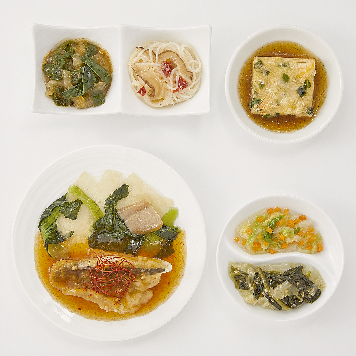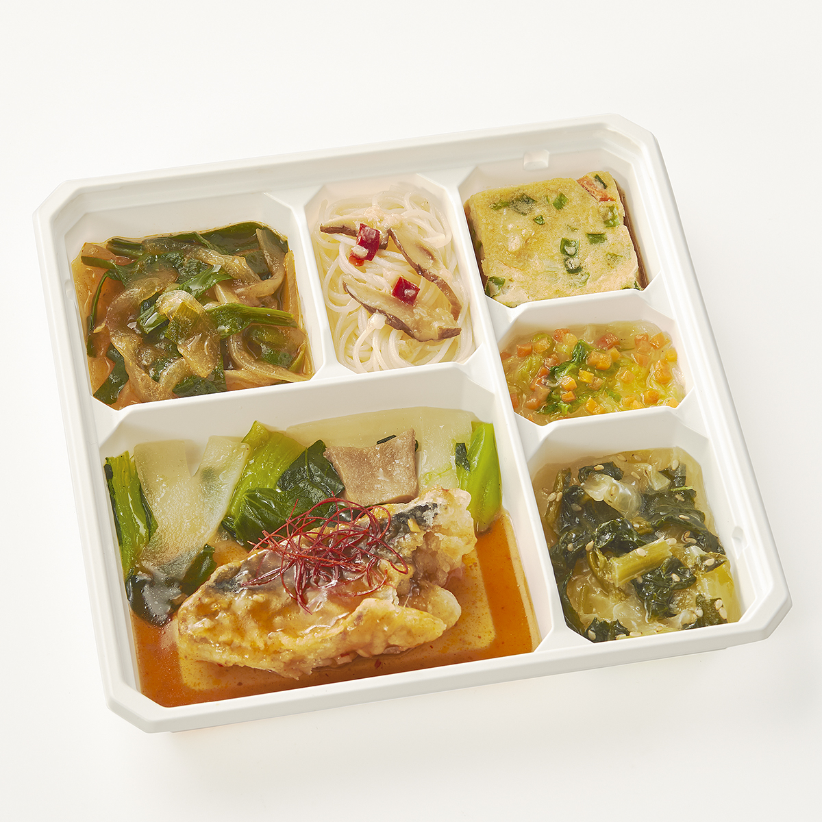 | 原材料名 | さば(アイスランド)、玉ねぎ、チヂミ、白菜、キャベツ、なたね油、にら、チンゲン菜、ほうれん草、大根、エリンギ水煮、減塩醤油、ビーフン、人参、砂糖、キムチ味調味液、赤ピーマン、濃厚ソース、ごま油、コチュジャン、ねぎ、生姜、乾燥しいたけ、醸造酢、食塩、顆粒中華風だし、にんにく、ごま、清酒、おろし生姜、果実調味料、濃口醤油、発酵調味料、トウバンジャン、おろしにんにく、唐辛子、中華スープの素、ゼラチン、こしょう/加工でん粉、糊料(加工でん粉、CMC)、調味料(アミノ酸等)、膨脹剤、pH調整剤、トレハロース、乳化剤、リン酸塩(Na)、着色料(カロチノイド、紅麹)、酸味料、(一部にえび・小麦・卵・乳成分・牛肉・ごま・さば・大豆・鶏肉・豚肉・りんご・ゼラチン・魚醤(魚介類)を含む) | ||