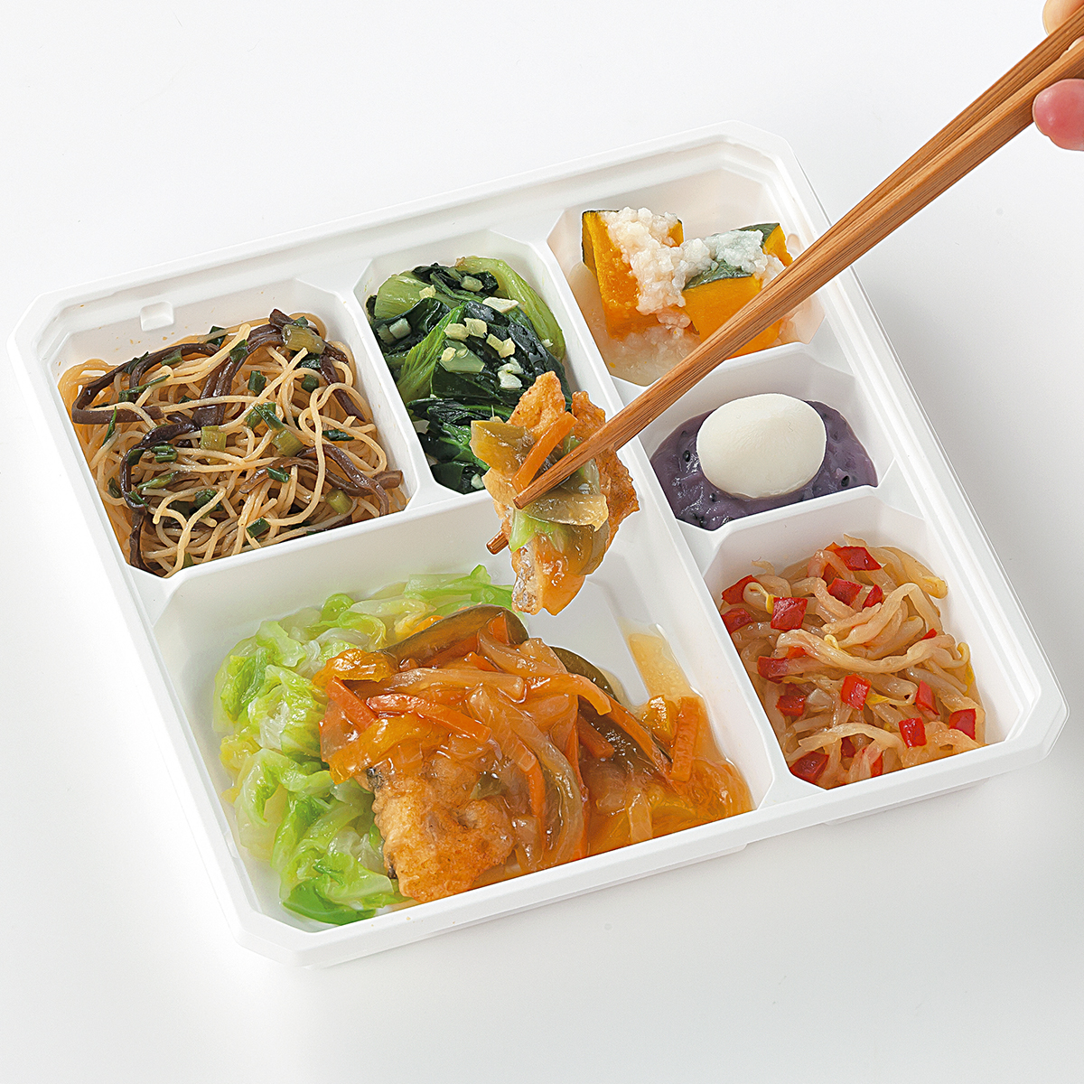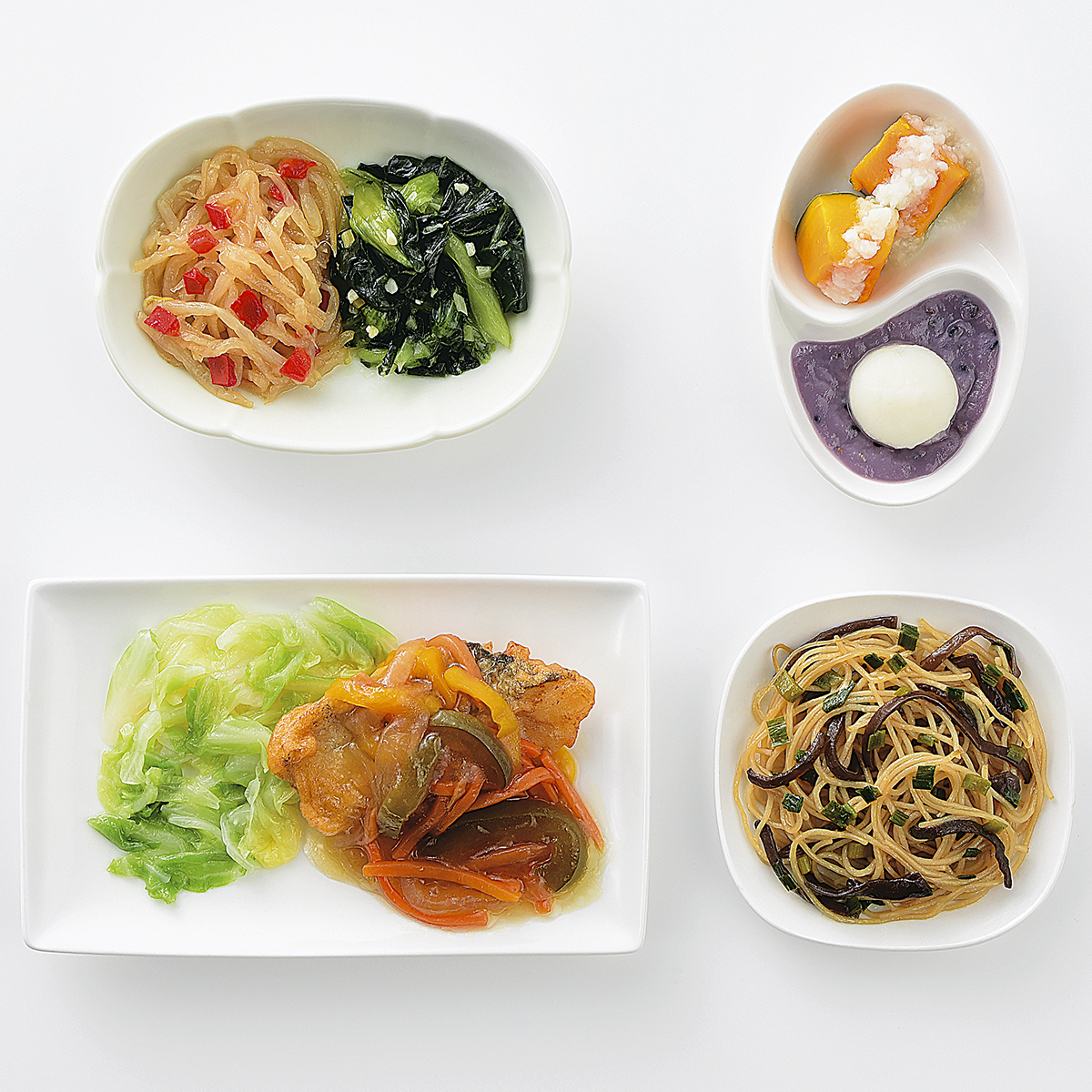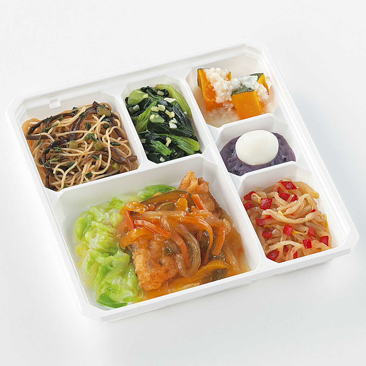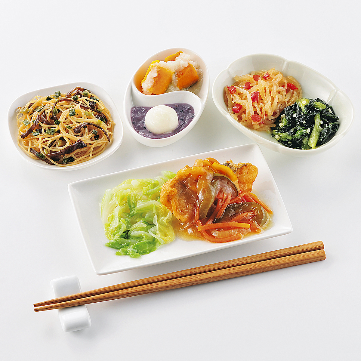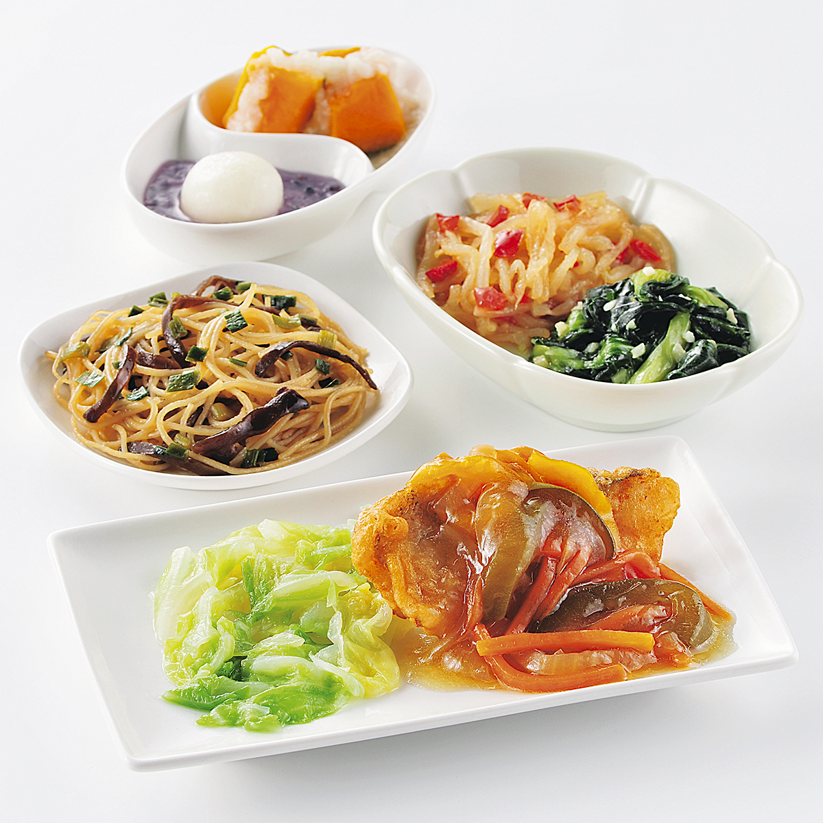 | 原材料名 | スケソウダラ(ロシア)、キャベツ、チンゲン菜、かぼちゃ、もやし、なたね油、団子(米粉、でん粉)、ピーマン、玉ねぎ、ビーフン、濃口醤油、人参、唐揚げ粉、砂糖、黄ピーマン、にら、牛乳、赤ピーマン、米黒酢、ごま油、甘酒、紫いもペースト、生姜、オイスターソース、切干大根、さつまいもフィリング、清酒、減塩醤油、発酵調味料、乾燥きくらげ、白だし、中華スープの素、食塩、顆粒中華風だし、顆粒和風だし、ごま、にんにく、おろしにんにく、植物油脂、こしょう/増粘剤(加工でん粉、増粘多糖類)、調味料(アミノ酸等)、糊料(CMC)、ソルビット、加工でん粉、乳化剤、リン酸塩(Na)、pH調整剤、酸味料、香料、着色料(カロチノイド)、(一部に小麦・卵・乳成分・牛肉・ごま・さば・大豆・鶏肉・豚肉・ゼラチンを含む) | ||