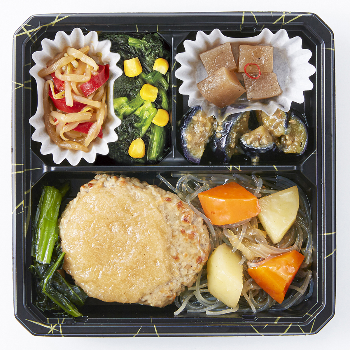 | 原材料名 | ハンバーグ(鶏肉、玉ねぎ、大豆たん白、パン粉、動物油脂、その他)(国内製造)、もやし、こんにゃく、大根、揚げなす、ほうれん草、小松菜、じゃがいも、人参、粉末水あめ、大豆油、春雨、赤ピーマン、玉ねぎ、減塩醤油、コーン、味付ぽん酢、本みりん、清酒、みそ、なたね油、砂糖、顆粒和風だし、濃口醤油、ごま、中華スープの素、発酵調味料、食塩、ごま油、唐辛子/増粘剤(加工でん粉)、糊料(加工でん粉)、調味料(アミノ酸等)、リン酸塩(Na)、酒精、水酸化Ca、酸味料、香料、(一部に小麦・乳成分・牛肉・ごま・大豆・鶏肉・豚肉・ゼラチンを含む) | ||
