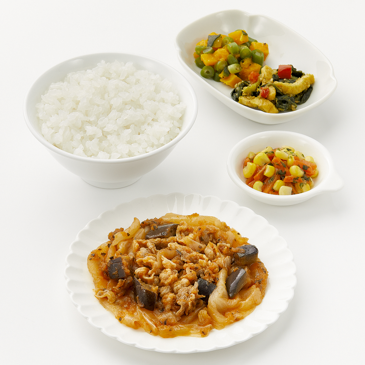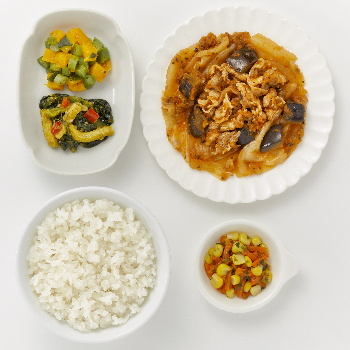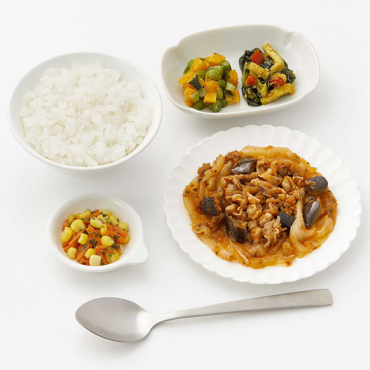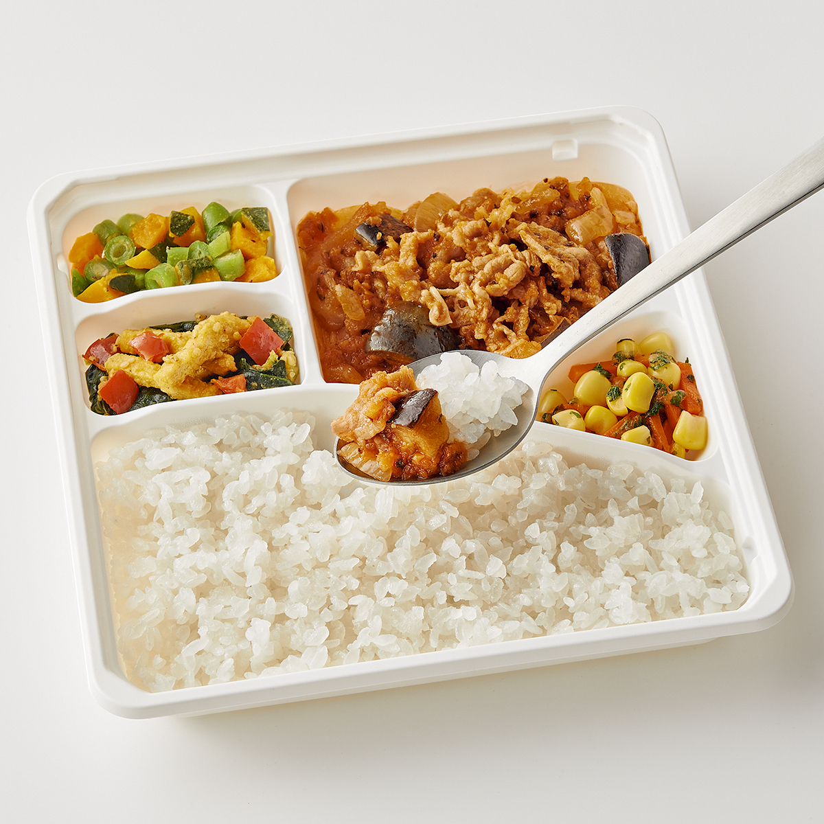 | 原材料名 | 加工米、玉ねぎ、牛肉、キャベツ、いんげん、揚げなす、チンゲン菜、植物油、トマトソース、人参、コーン、かぼちゃ、デミグラスソース、赤ピーマン、油揚げ、バターソース、コンソメ、おろしにんにく、醤油、ごま、バジル、食塩、カレー粉、ゼラチン、パセリ、黒こしょう、こしょう/加工デンプン、糊料(グァー分解物、加工デンプン、増粘多糖類)、調味料(アミノ酸等)、着色料(カラメル、クチナシ)、乳化剤、pH調整剤、酸味料、香料、(一部に小麦・乳成分・牛肉・ごま・大豆・鶏肉・豚肉・ゼラチンを含む) | ||