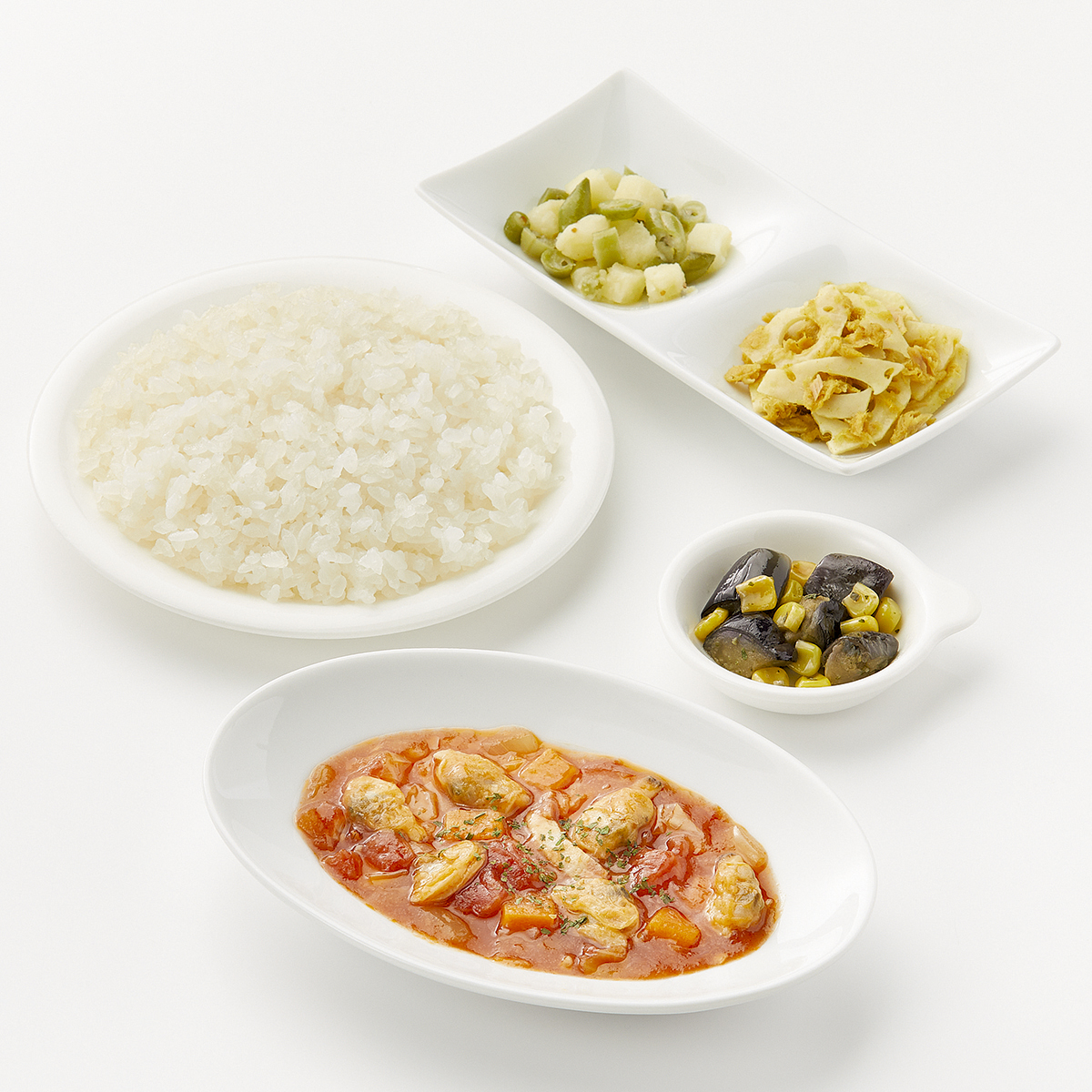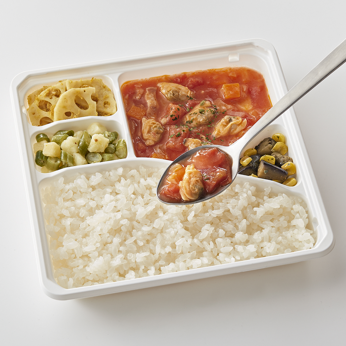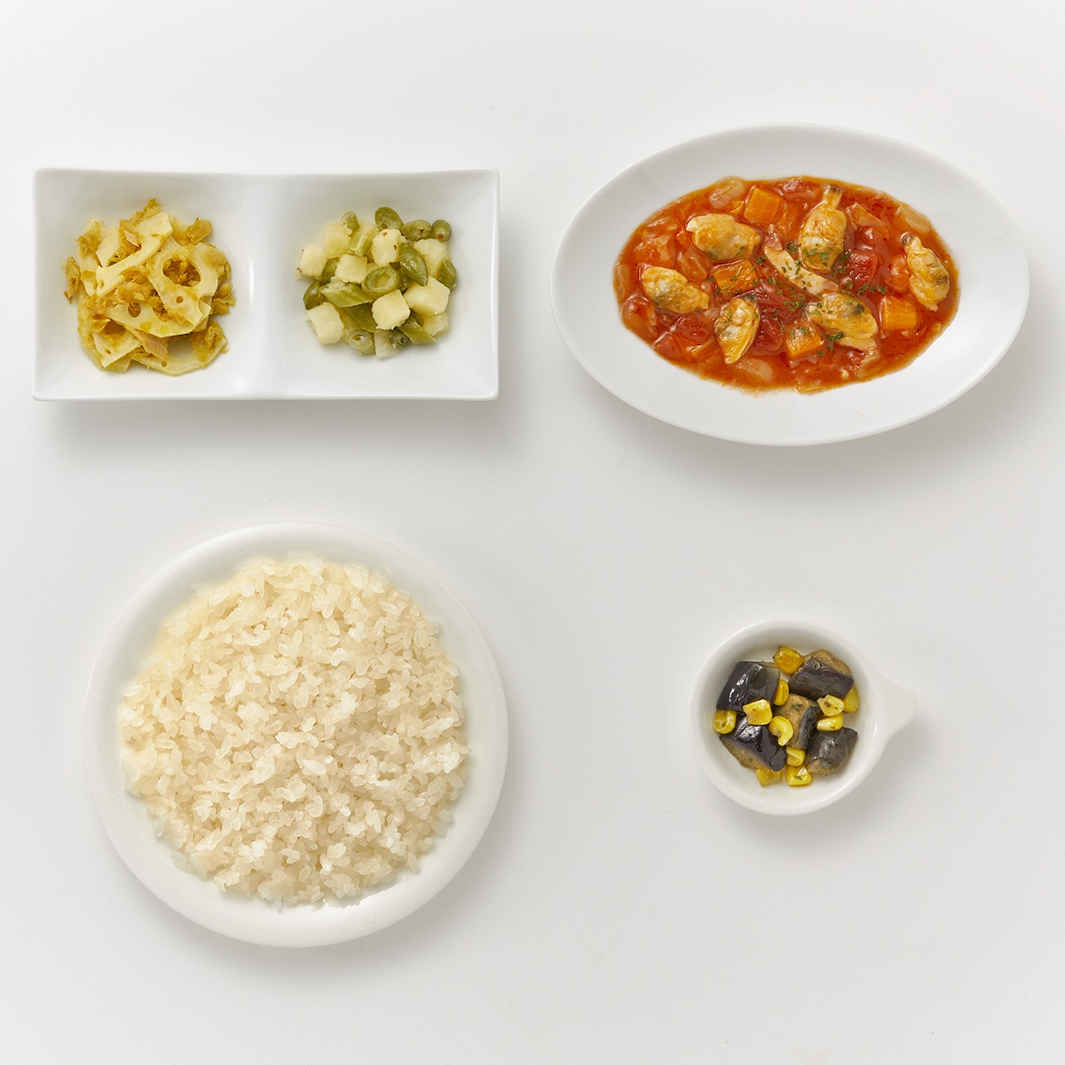 | 原材料名 | 加工米、トマト加工品、れんこん水煮、じゃがいも、揚げなす、植物油、ゆであさり、いんげん、玉ねぎ、キャベツ、ツナフレーク、ベーコン、人参、コーン、コンソメ、バジルペースト、ハニーマスタードソース、あさり風味調味調、バターソース、トマトソース、刻みにんにく、カレー粉、食塩、パセリ/糊料(グァー分解物、加工デンプン、増粘多糖類)、加工デンプン、調味料(アミノ酸等)、pH調整剤、リン酸塩(Na)、酸化防止剤(V.C)、着色料(カラメル、ウコン、コチニール、クチナシ)、ソルビット、酸味料、発色剤(亜硝酸Na)、香料、乳化剤、香辛料抽出物、アンモニウムミョウバン、漂白剤(次亜硫酸Na)、ミョウバン、(一部に小麦・卵・乳成分・牛肉・大豆・鶏肉・豚肉・りんごを含む) | ||