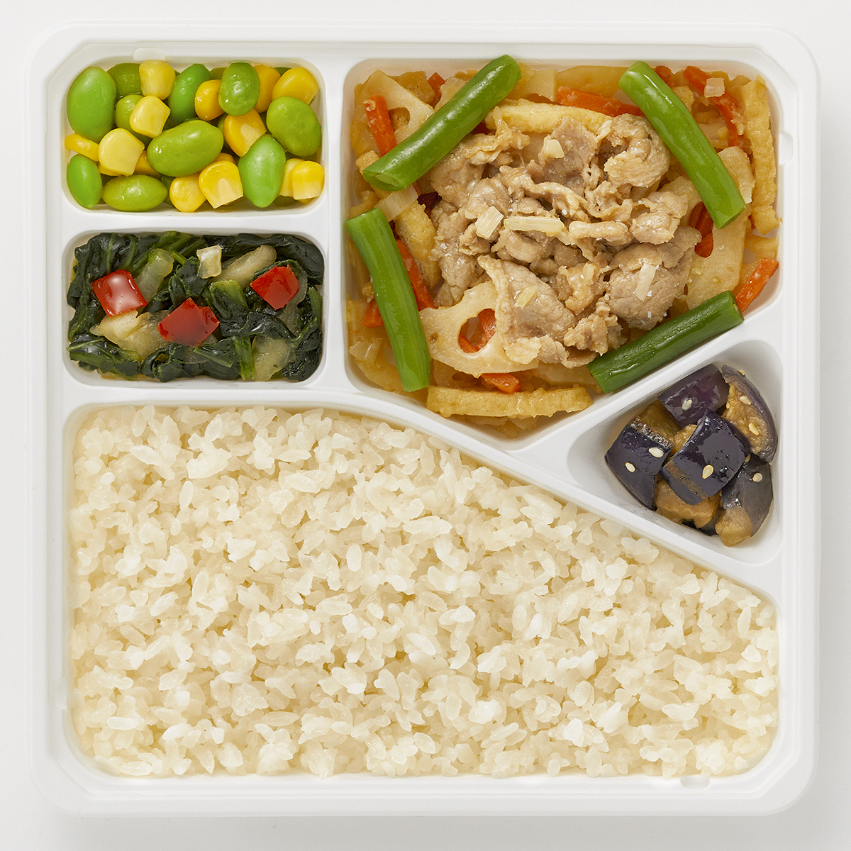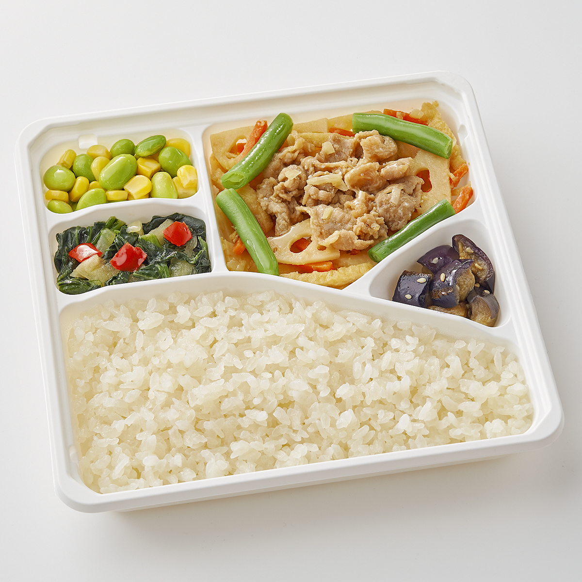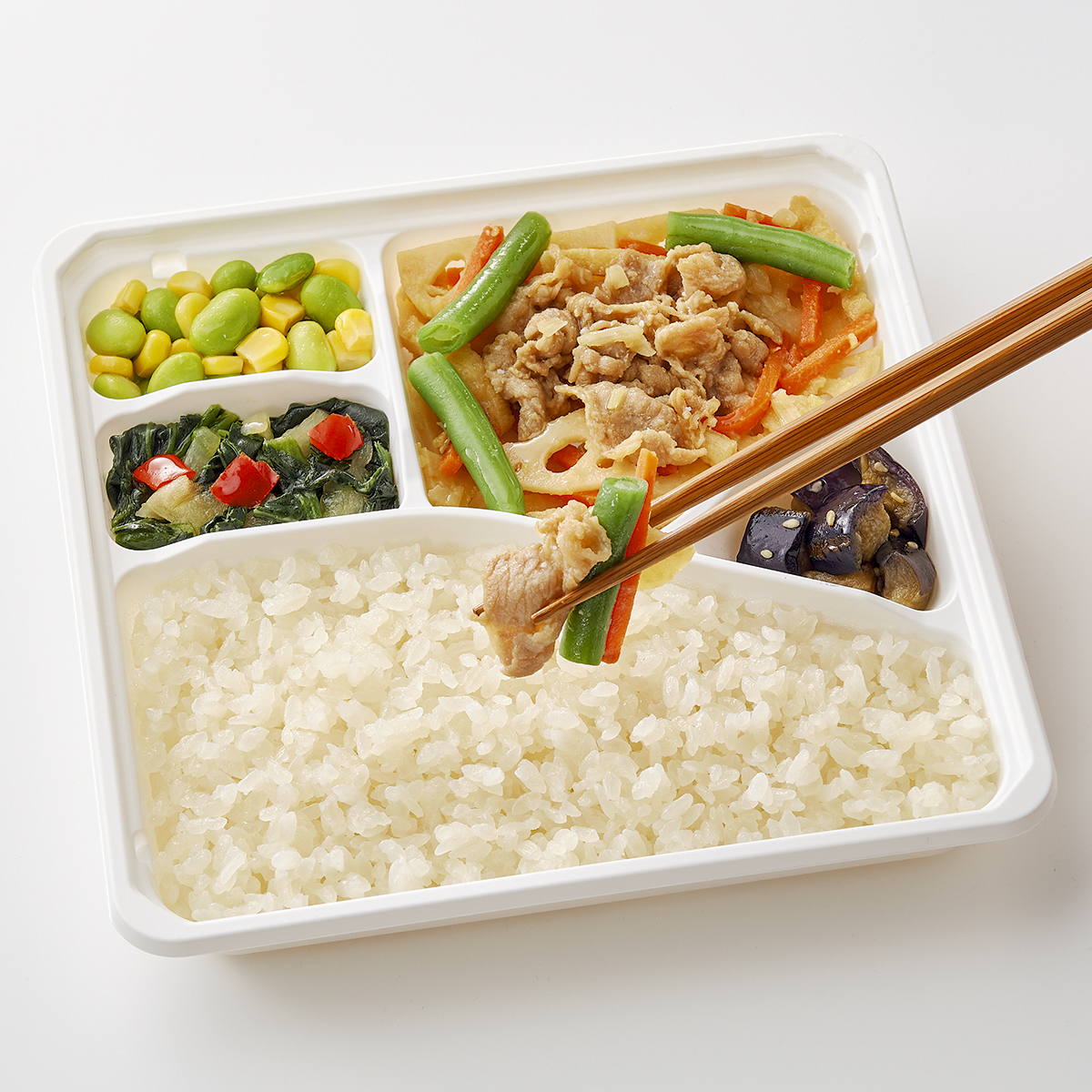 | 原材料名 | 加工米、れんこん水煮、牛肉、味噌だれ、むき枝豆、揚げなす、チンゲン菜、コーン、いんげん、人参、ねぎ、玉ねぎ、植物油、油揚げ、赤ピーマン、刻みしょうが、バターソース、穀物酢、白だし、醤油、ごま油、鶏がら調味料、ごま、醤油加工品/糊料(グァー分解物、加工デンプン、増粘多糖類)、加工デンプン、調味料(アミノ酸等)、酸化防止剤(V.C)、pH調整剤、酒精、メタリン酸Na、香料、酸味料、乳化剤、クチナシ色素、ミョウバン、漂白剤(次亜硫酸Na)、(一部に小麦・乳成分・牛肉・ごま・さば・大豆・鶏肉を含む) | ||