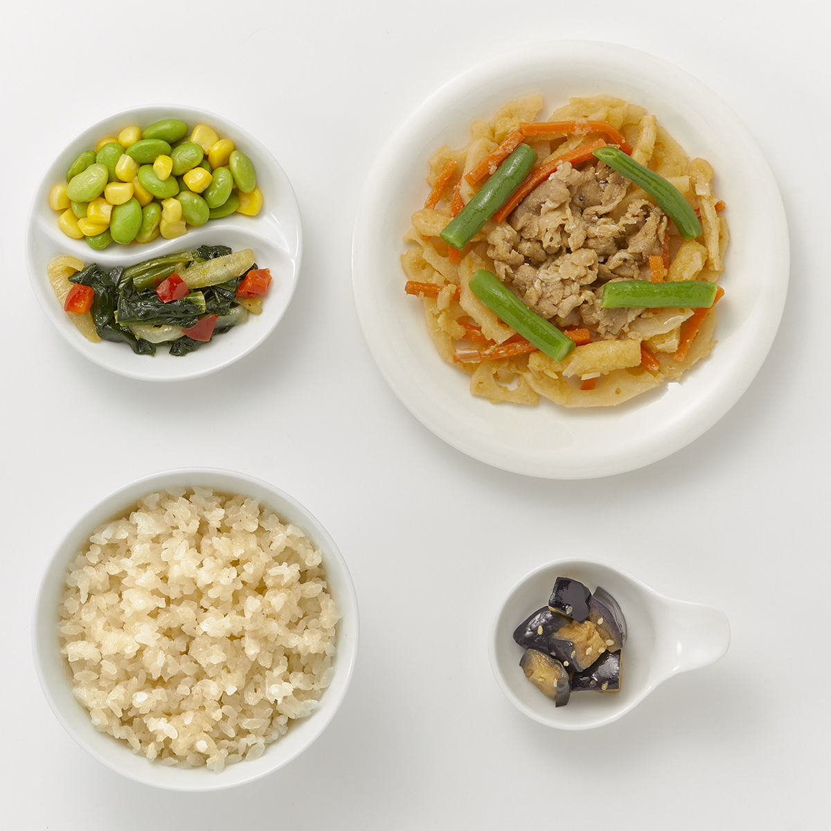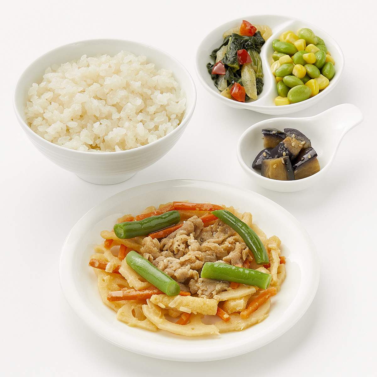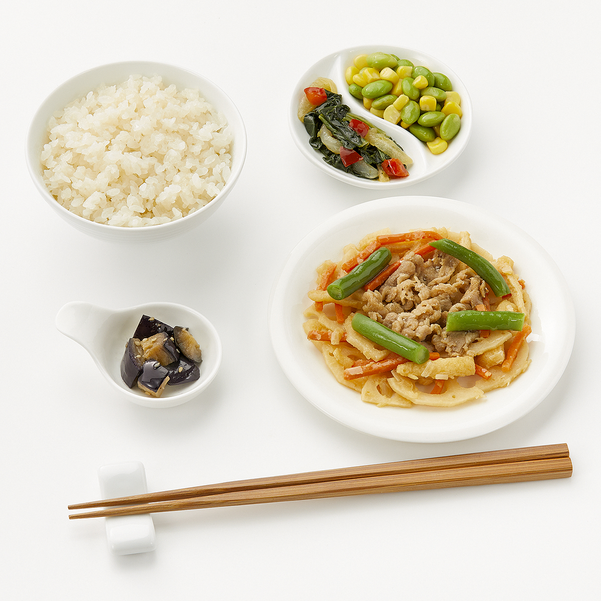 | 原材料名 | 加工米、れんこん水煮、牛肉、味噌だれ、むき枝豆、揚げなす、チンゲン菜、コーン、いんげん、人参、ねぎ、玉ねぎ、植物油、油揚げ、赤ピーマン、刻みしょうが、バターソース、穀物酢、白だし、醤油、ごま油、鶏がら調味料、ごま、醤油加工品/糊料(グァー分解物、加工デンプン、増粘多糖類)、加工デンプン、調味料(アミノ酸等)、酸化防止剤(V.C)、pH調整剤、酒精、メタリン酸Na、香料、酸味料、乳化剤、クチナシ色素、ミョウバン、漂白剤(次亜硫酸Na)、(一部に小麦・乳成分・牛肉・ごま・さば・大豆・鶏肉を含む) | ||