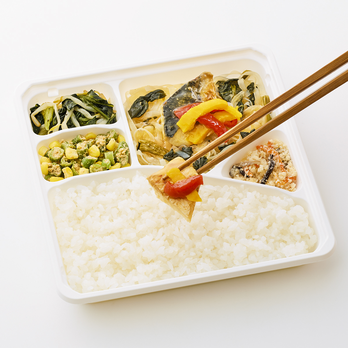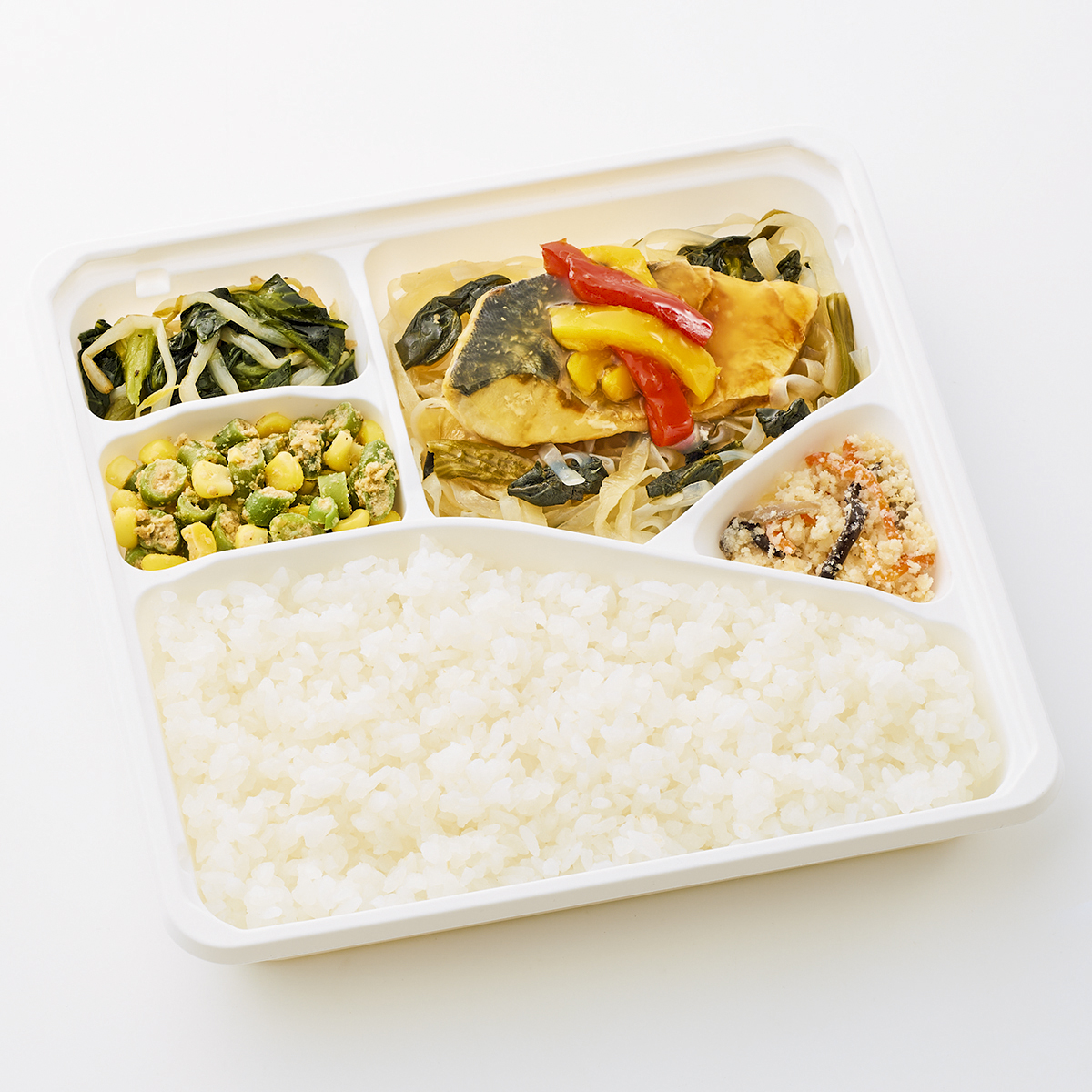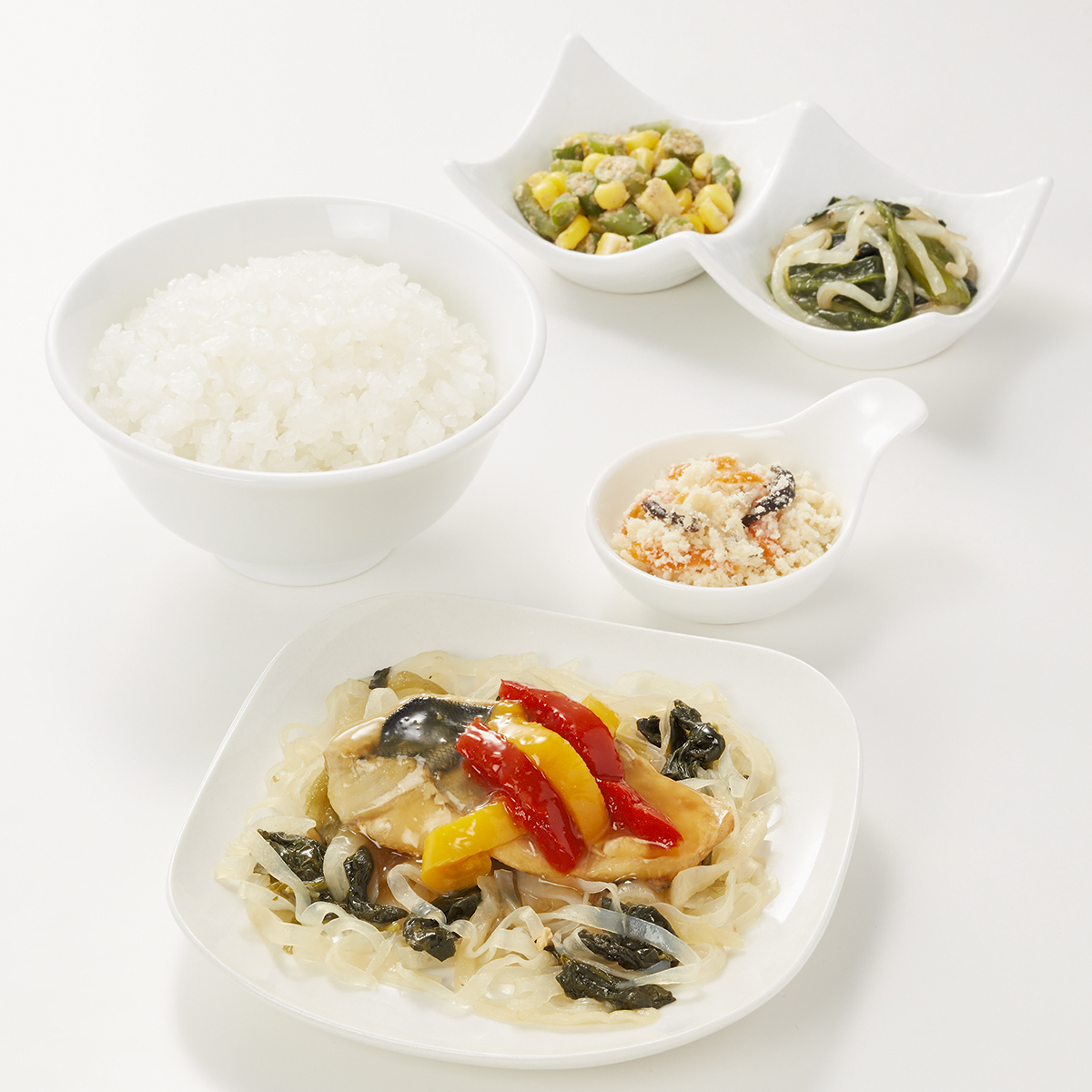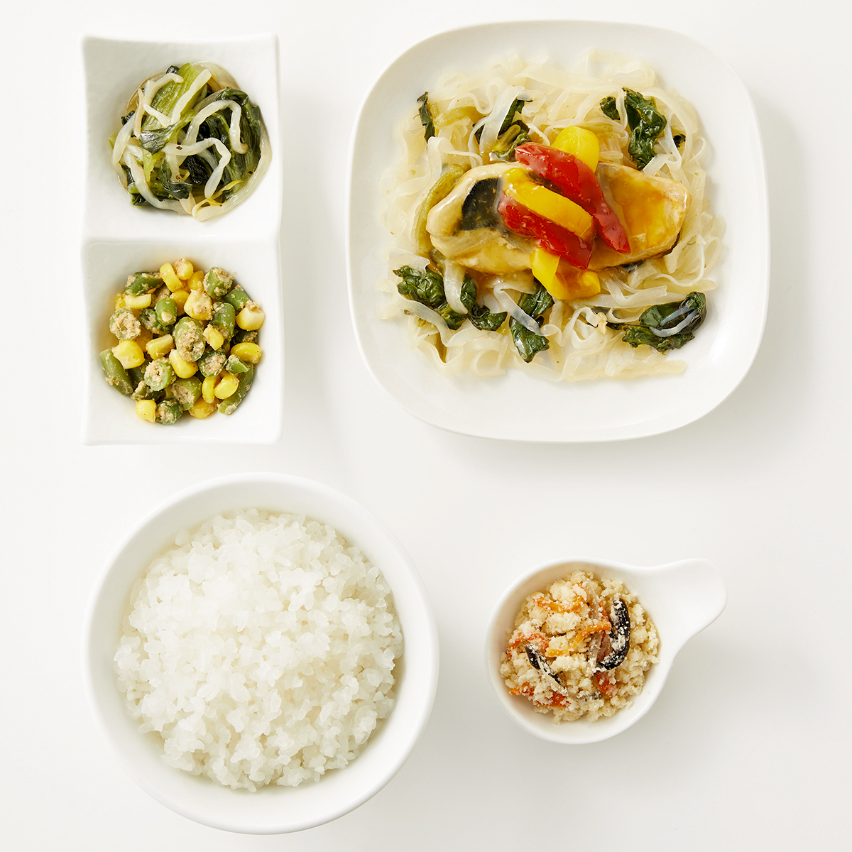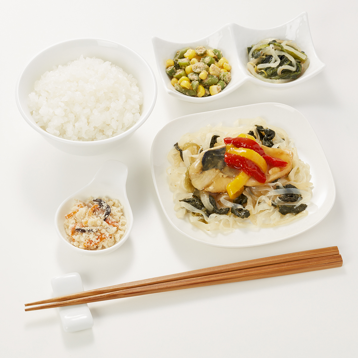 | 原材料名 | 加工米、さば、緑豆もやし、玉ねぎ、チンゲン菜、植物油、卯の花(おから、なたね油、人参、ねぎ、その他)、ほうれん草、コーン、いんげん、黄ピーマン、赤ピーマン、春雨、醤油、みりん、穀物酢、ごま、清酒風調味料、おろししょうが、食塩、砂糖、白だし、かつお節調味料、黒こしょう/安定剤(グァー分解物)、加工デンプン、ソルビット、調味料(アミノ酸等)、酸味料、酒精、酸化防止剤(V.C)、pH調整剤、甘味料(カンゾウ)、(一部に小麦・ごま・さば・大豆を含む) | ||