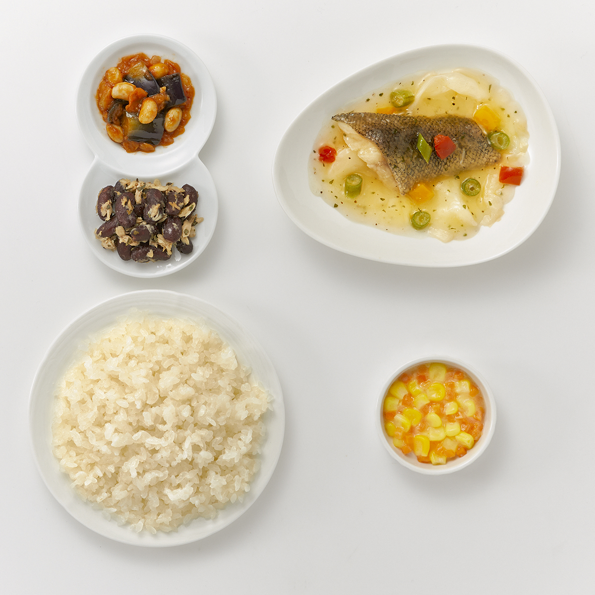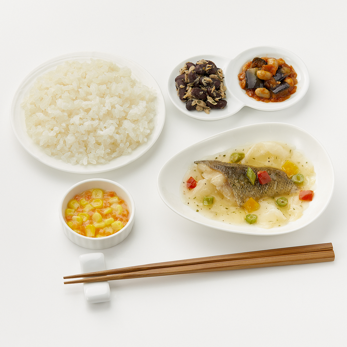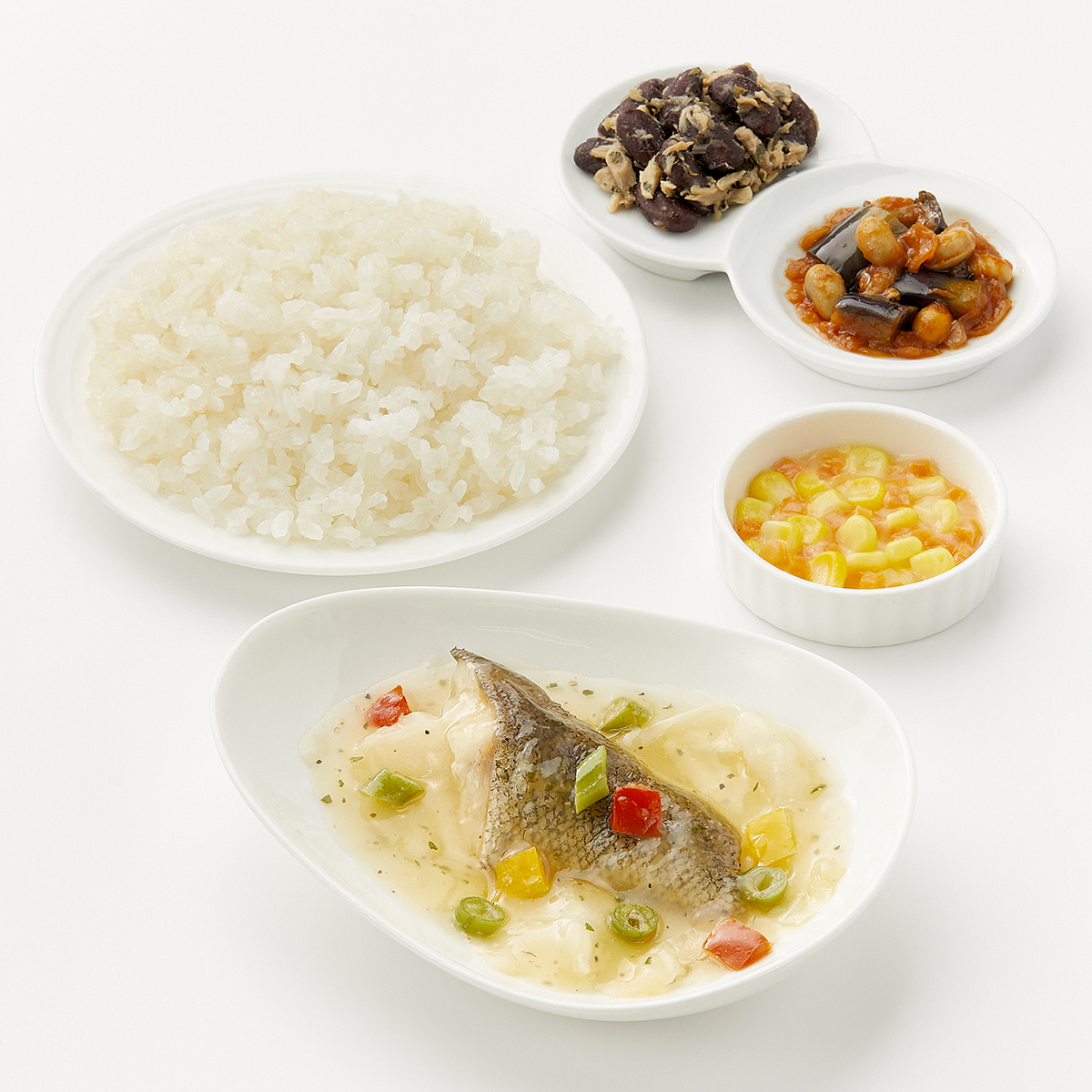 | 原材料名 | 加工米、助宗たら、赤いんげん豆水煮、揚げなす、キャベツ、植物油、大豆水煮、トマトピューレー、ホワイトソース、コーン、清酒風調味料、人参、いんげん、黄ピーマン、赤ピーマン、ツナフレーク、コンソメ、玉ねぎ、砂糖、照焼だれ、おろしにんにく、オリーブ油、バターソース、食塩、あさり風味調味料、黒こしょう、バジル、パセリ/糊料(加工デンプン、グァー分解物、増粘多糖類)、調味料(アミノ酸等)、加工デンプン、着色料(カラメル、カロチノイド、クチナシ)、トレハロース、pH調整剤、塩化Ca、酸味料、乳化剤、リン酸塩(Na)、香料、香辛料抽出物、(一部に小麦・乳成分・ごま・さば・大豆・鶏肉・りんごを含む) | ||