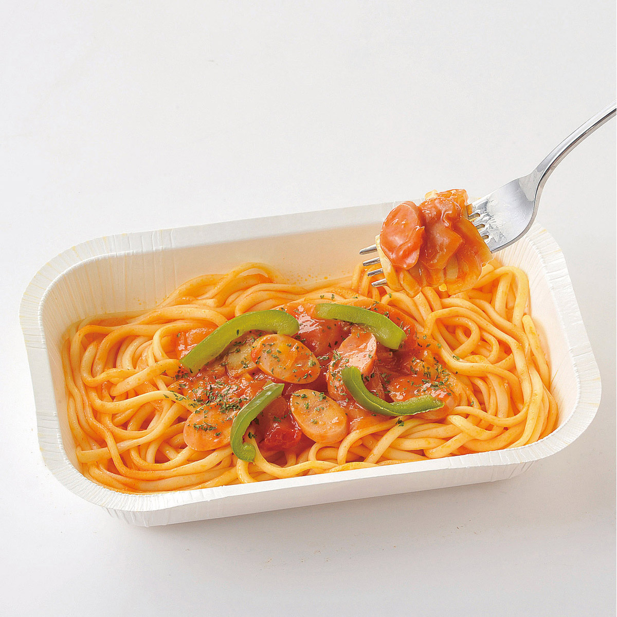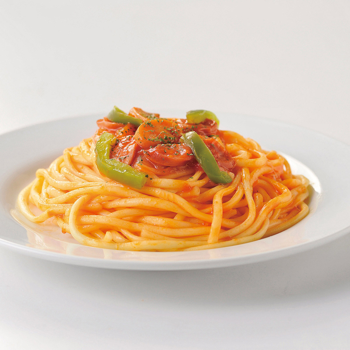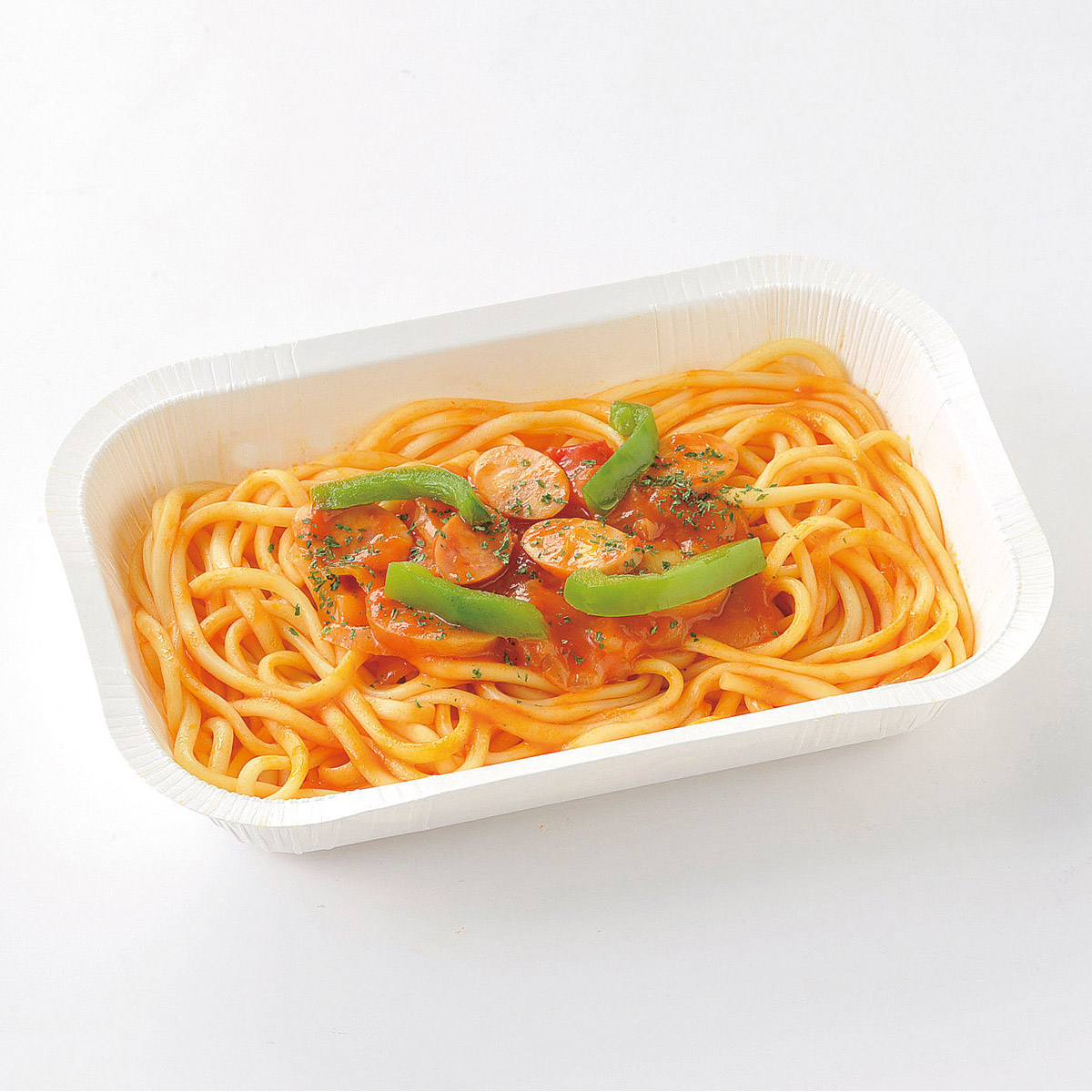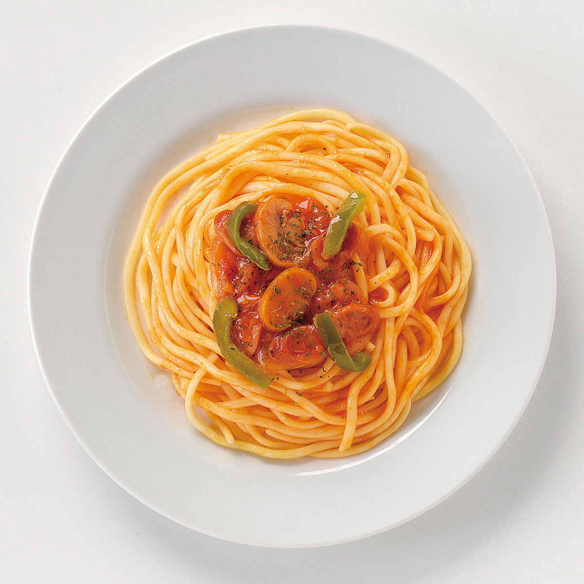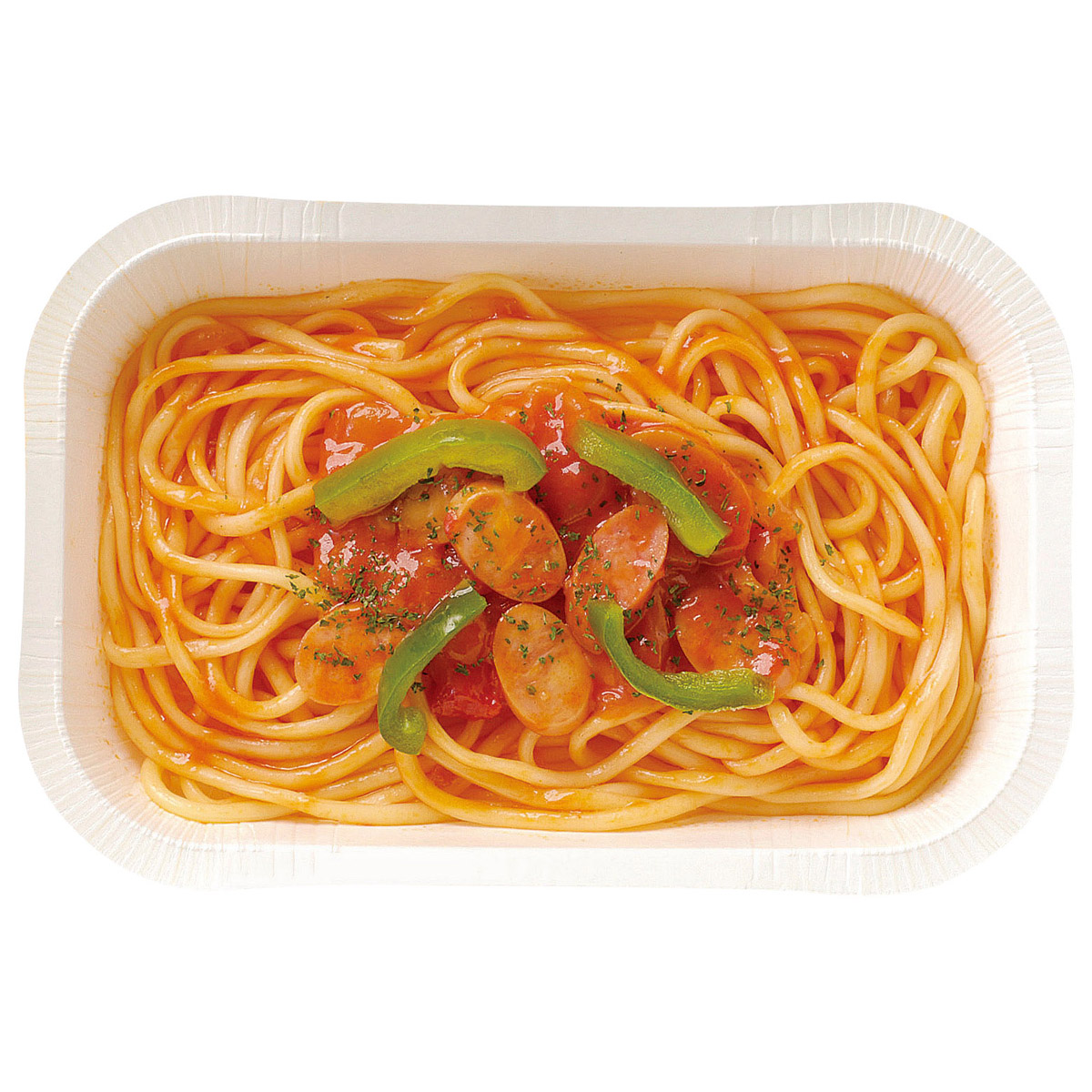 | 原材料名 | めん[小麦粉、でん粉、粉末卵白、粉末卵黄、食塩/増粘剤(加工デンプン)、クチナシ色素]、 野菜(玉ねぎ、緑ピーマン、マッシュルーム)、ケチャップ、トマト・ピューレー漬、なたね油、ソーセージ、調理油、砂糖、濃厚ソース、バター、乳等を主要原料とする食品、パセリ粉、白こしょう/加工デンプン、乳化剤、糊料(増粘多糖類、加工デンプン)、pH調整剤、調味料(アミノ酸)、リン酸塩(Na)、カゼインNa、酸化防止剤(V.C)、クチナシ色素、発色剤(亜硝酸Na)、香料、 (一部に小麦・卵・乳成分・牛肉・大豆・鶏肉・豚肉・りんごを含む) | ||