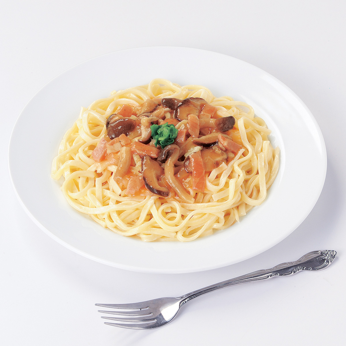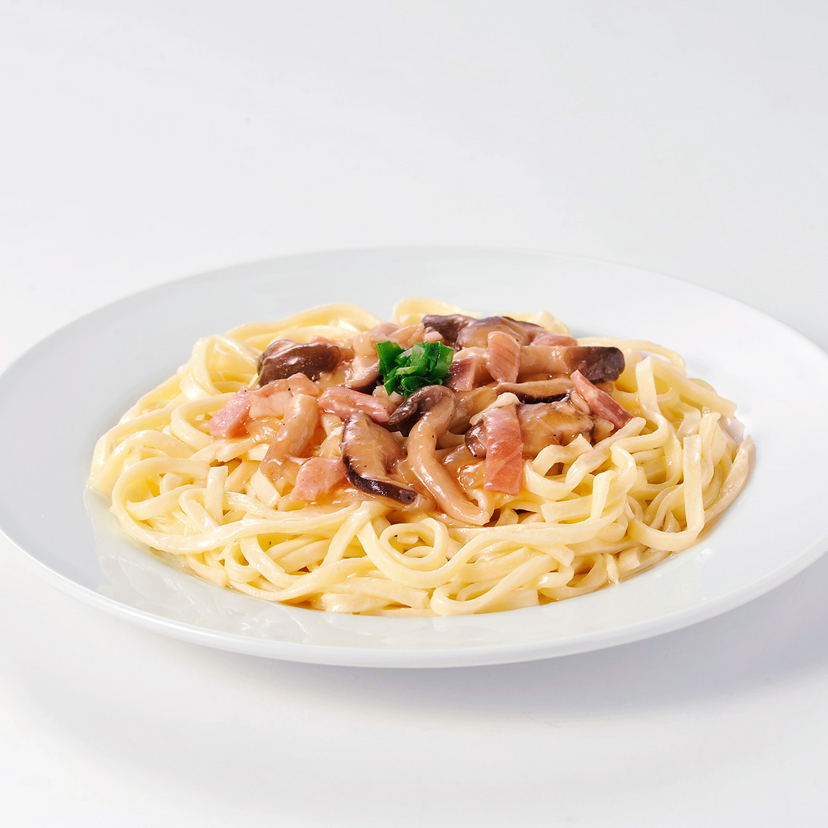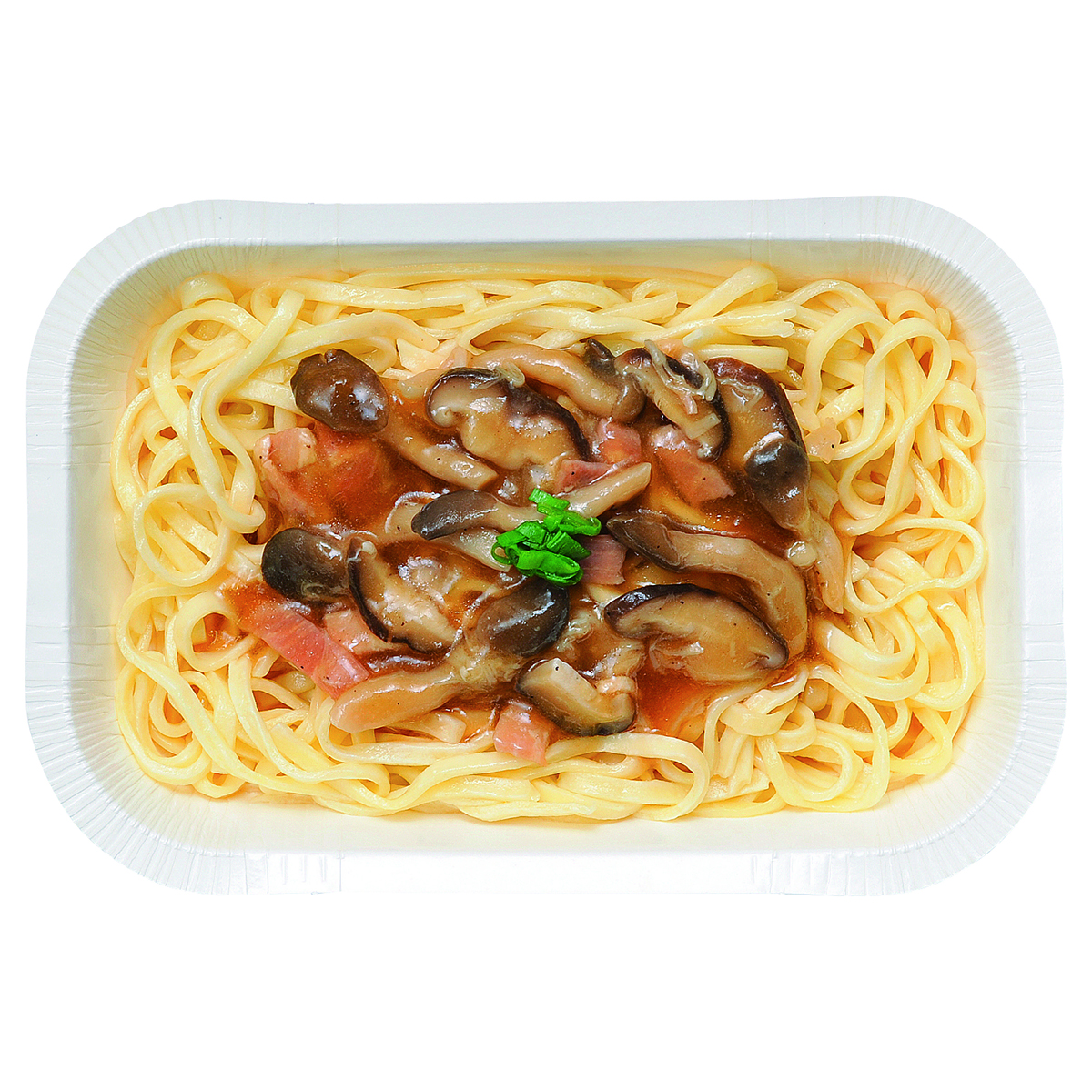 | 原材料名 | めん[小麦粉、でん粉、粉末卵白、粉末卵黄、食塩/増粘剤(加工デンプン)、カロチノイド色素]、 野菜(ひらたけ、しいたけ、えのきたけ、玉ねぎ、ねぎ、にんにく)、なたね油、ベーコン、和風調味液[醤油、糖類(砂糖、果糖ぶどう糖液糖)、その他]、調理油、オリーブオイル、おろしにんにく、濃口醤油、ゼラチン、顆粒和風だし、黒こしょう、食塩/増粘剤(加工デンプン、カラギナン)、乳化剤、調味料(アミノ酸等)、リン酸塩(Na)、酸味料、酸化防止剤(V.C)、マンニット、発色剤(亜硝酸Na)、くん液、コチニール色素、香辛料、 (一部に小麦・卵・乳成分・さば・大豆・豚肉・ゼラチン・魚醤(魚介類)を含む) | ||