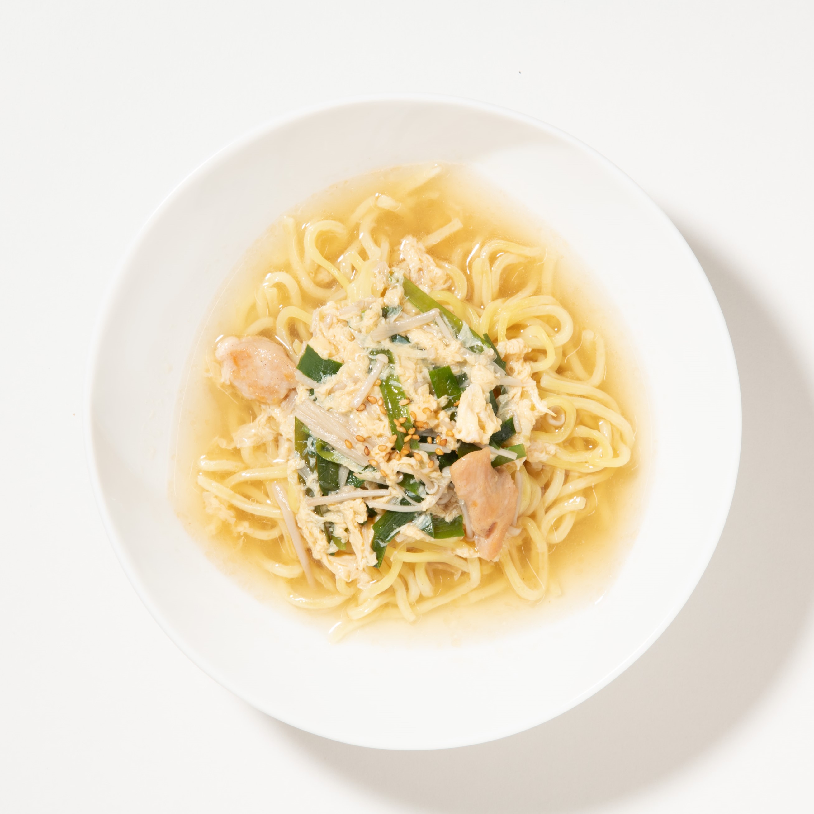 | 原材料名 | 生中華麺(国内製造)、えのきたけ、鶏卵、鶏肉、にら、食用なたね油、食用調合油(ごま油、大豆油)、こいくちしょうゆ(本醸造)、にんにく、チキンスープパウダー、食塩、砂糖、しょうが、いりごま、ホワイトペッパー/酒精、調味料(アミノ酸等)、乳酸Na、増粘剤(加工でん粉)、かんすい、加工でん粉、香料、クチナシ色素、(一部に小麦・卵・ごま・大豆・鶏肉を含む) | ||