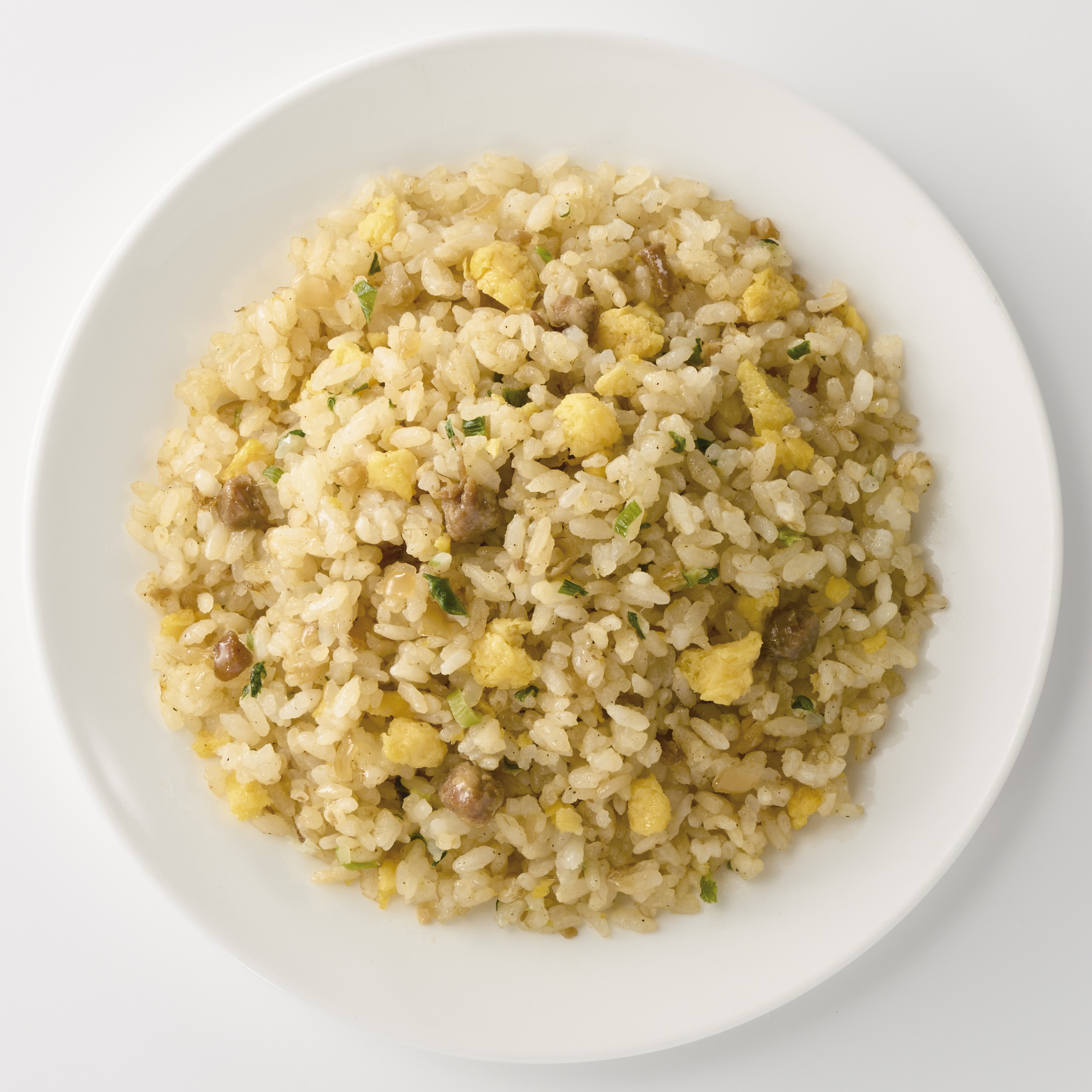 | 原材料名 | 米(国産)、低たんぱく米(国産)、野菜【玉葱(国産)、青ねぎ、にんじん】、煮豚、スクランブルエッグ、液卵、食用なたね油、 しょうゆ、砂糖、ポークエキス、食塩、貝エキス、バター、粉末醬油、酵母エキス、馬鈴しょでん粉、黒こしょう、(一部に小麦・ 卵・乳成分・大豆・豚肉を含む) | ||