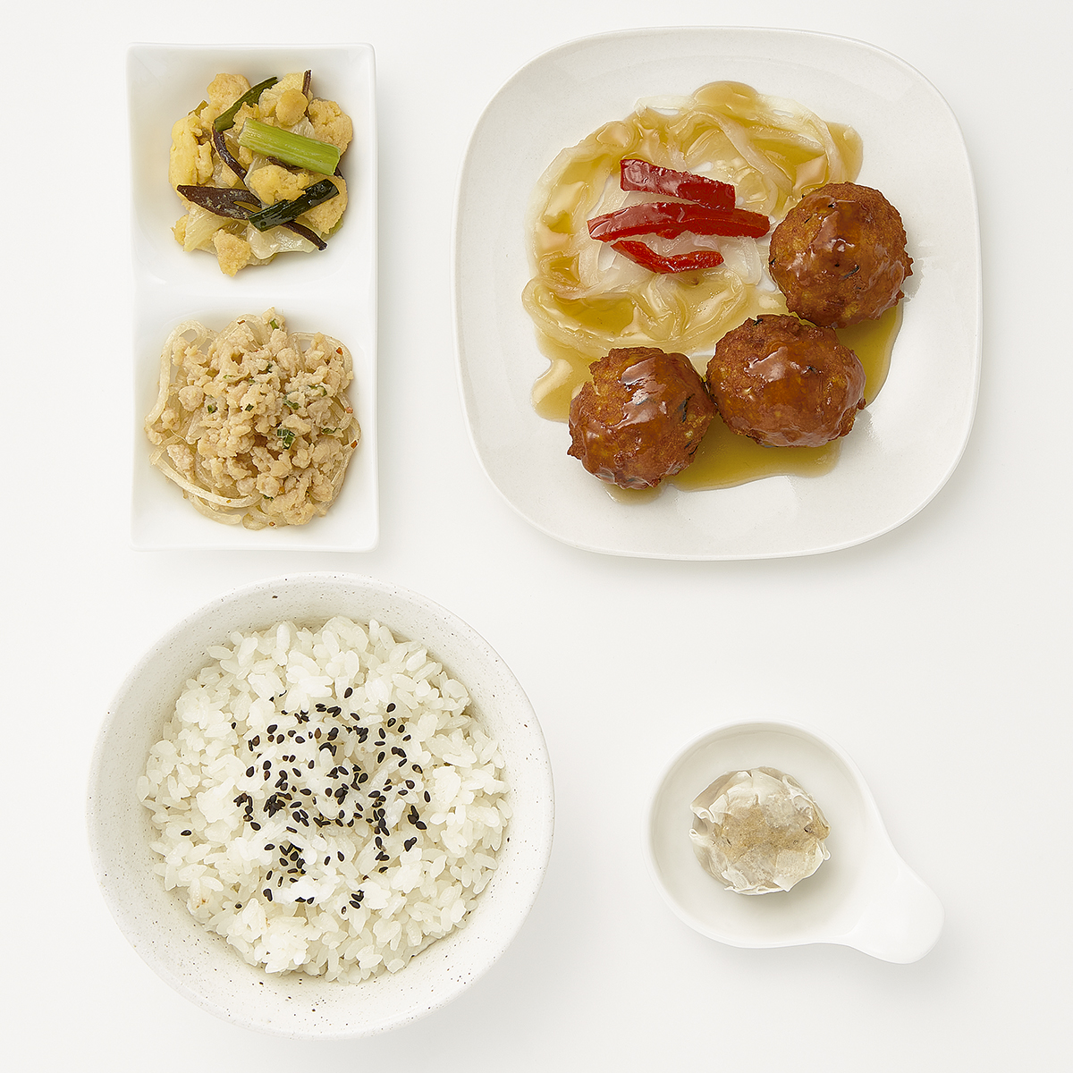 - ひじき入り鶏肉団子の黒酢あん