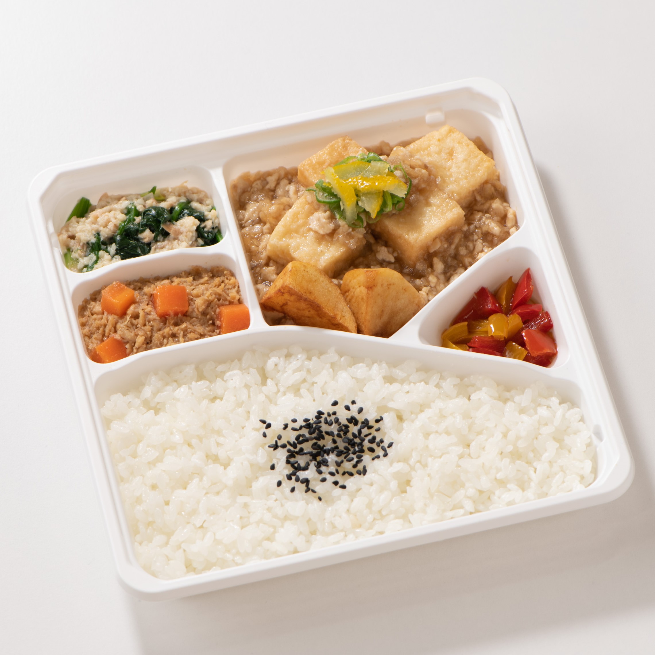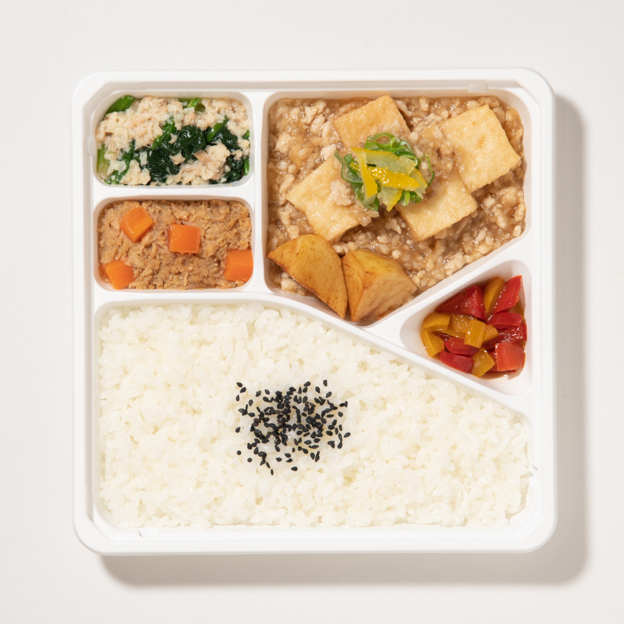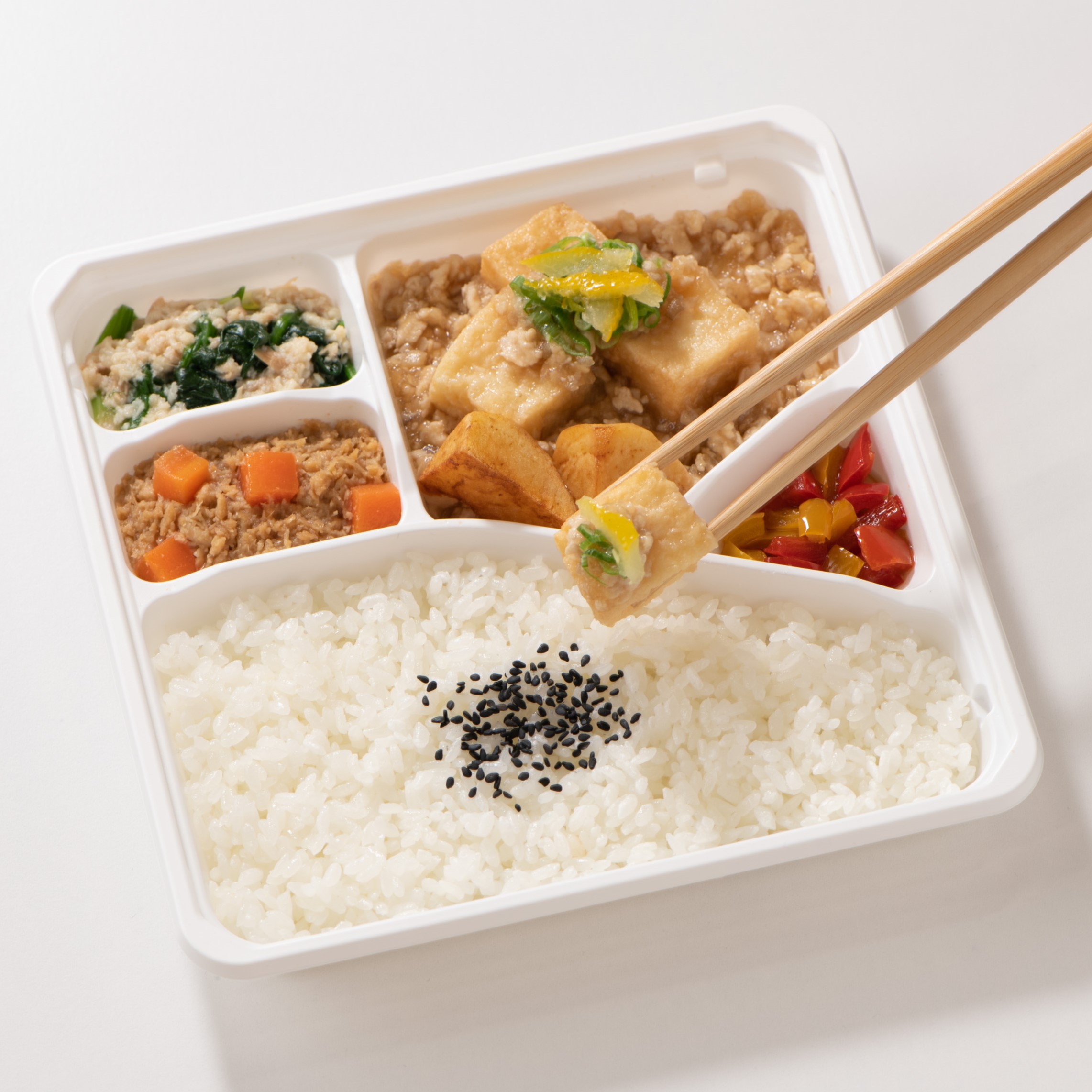 | 原材料名 | 白米(国産)、厚揚げ、鶏肉、じゃがいも、豆腐、にんじん、黄パプリカ、赤パプリカ、ほうれんそう、蒸し大豆、しょうゆ(本醸造)、砂糖、えのきたけ、ぶなしめじ、まぐろ水煮(フレーク)、長ねぎ、食用なたね油、みりん、液体昆布だし、食用調合油(ごま油、大豆油)、柚子、液体鰹だし、清酒、いりごま/増粘剤(加工でん粉、キサンタンガム)、安定剤(加工でん粉)、豆腐用凝固剤、調味料(アミノ酸等)、加工でん粉、酒精、乳化剤、(一部に小麦・ごま・大豆・鶏肉を含む) | ||