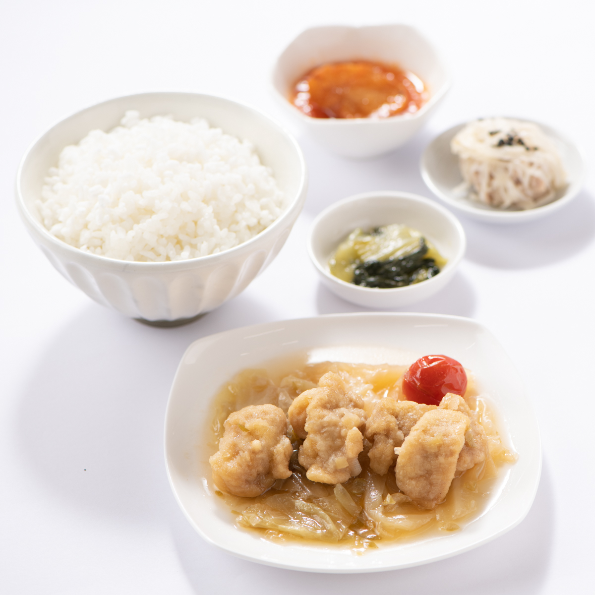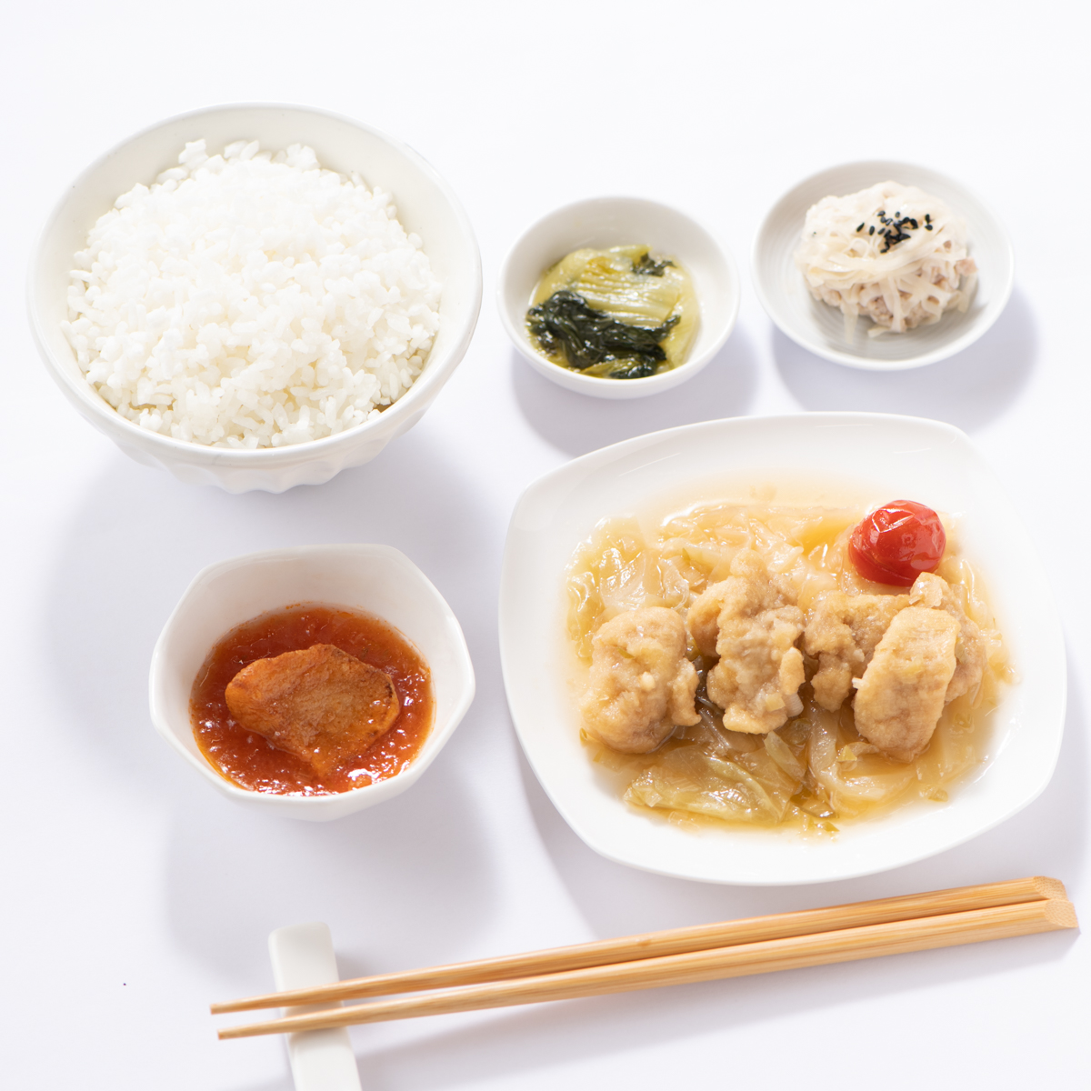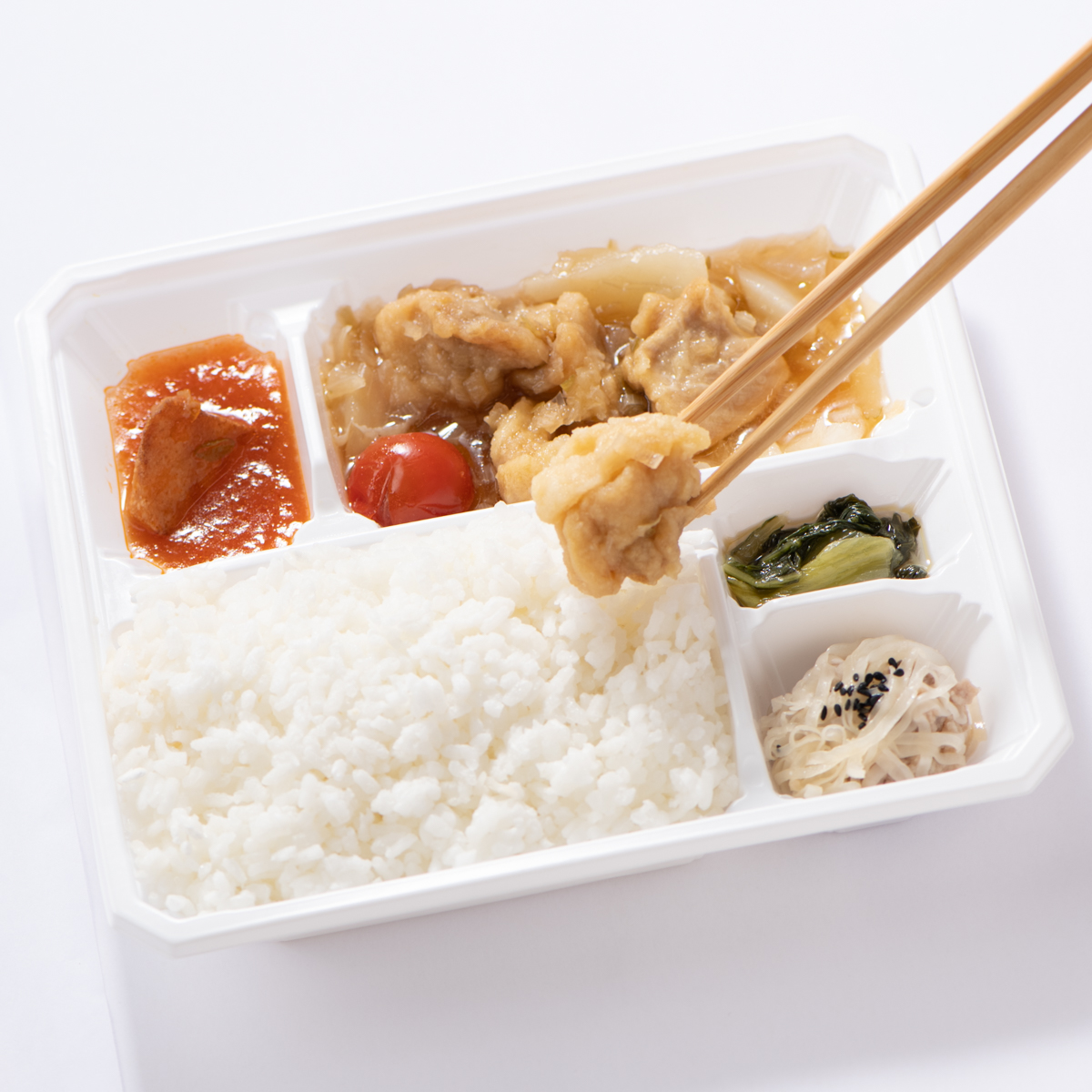 | 原材料名 | 白米(国産)、鶏肉、キャベツ、じゃがいも、チンゲンサイ、長ねぎ、豚肉、ミニトマト、りんご酢、トマトケチャップ、砂糖、食用調合油(ごま油、大豆油)、たまねぎ、しょうゆ(本醸造)、焼売の皮、しょうが、食用なたね油、食塩、にんにく、いりごま/増粘剤(加工でん粉、増粘多糖類)、加工でん粉、調味料(アミノ酸等)、酒精、乳酸Na、(一部に小麦・ごま・大豆・鶏肉・豚肉・りんごを含む) | ||
